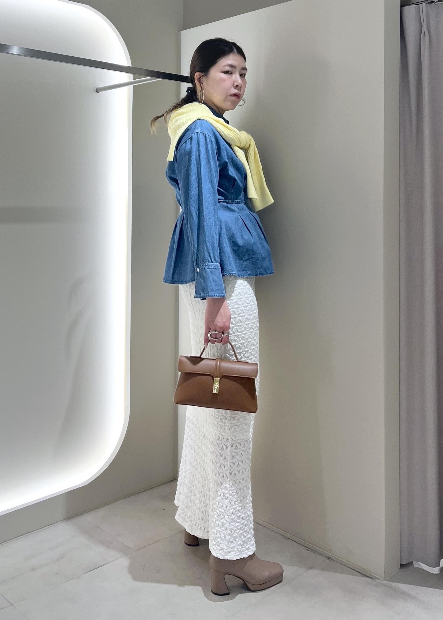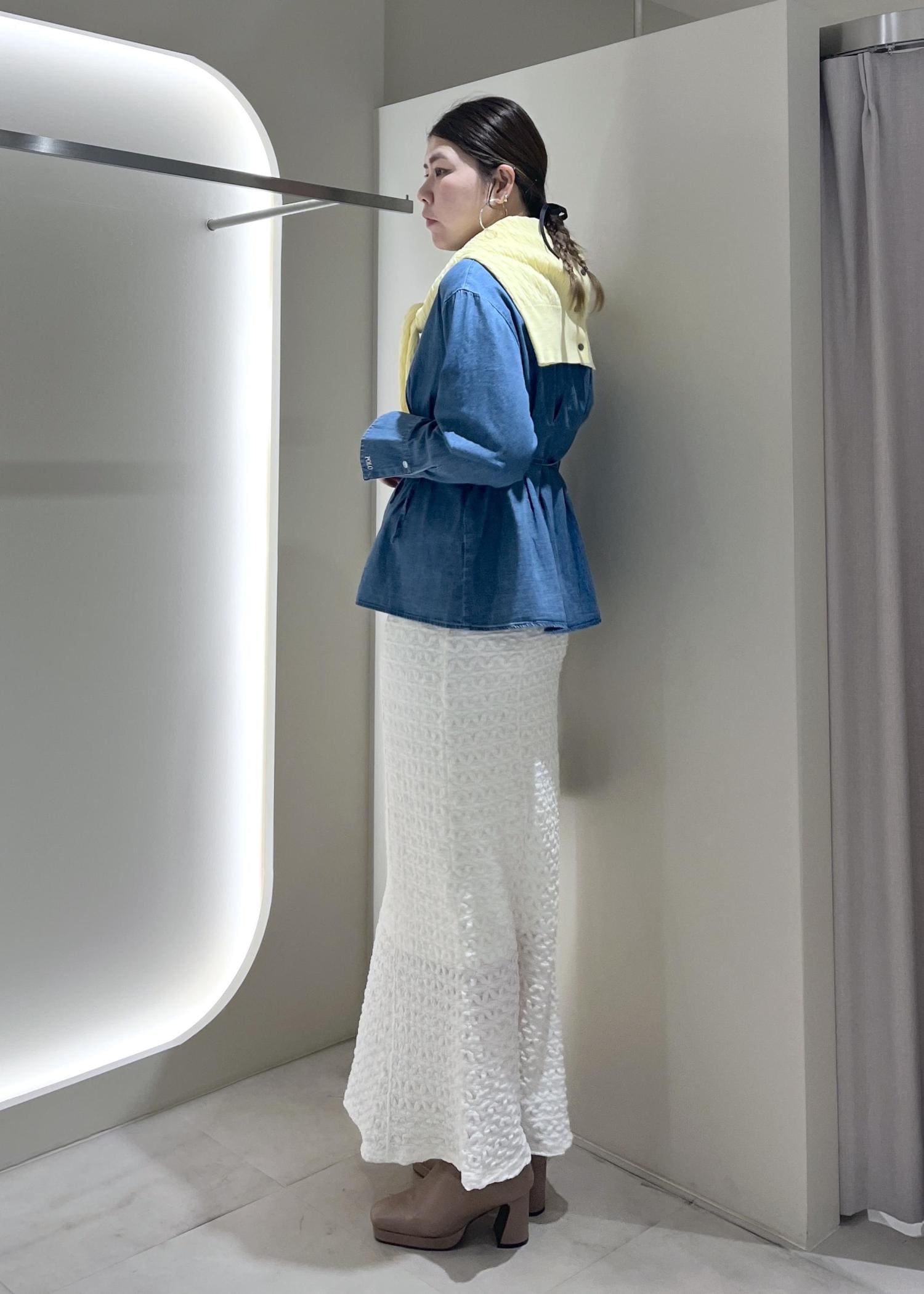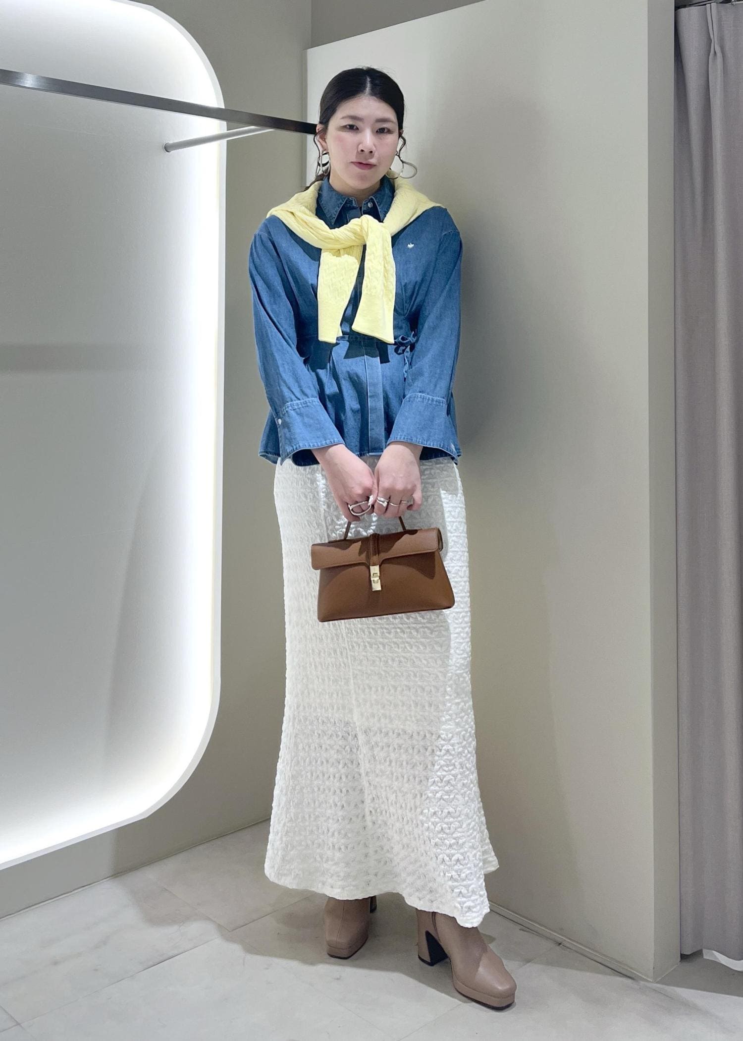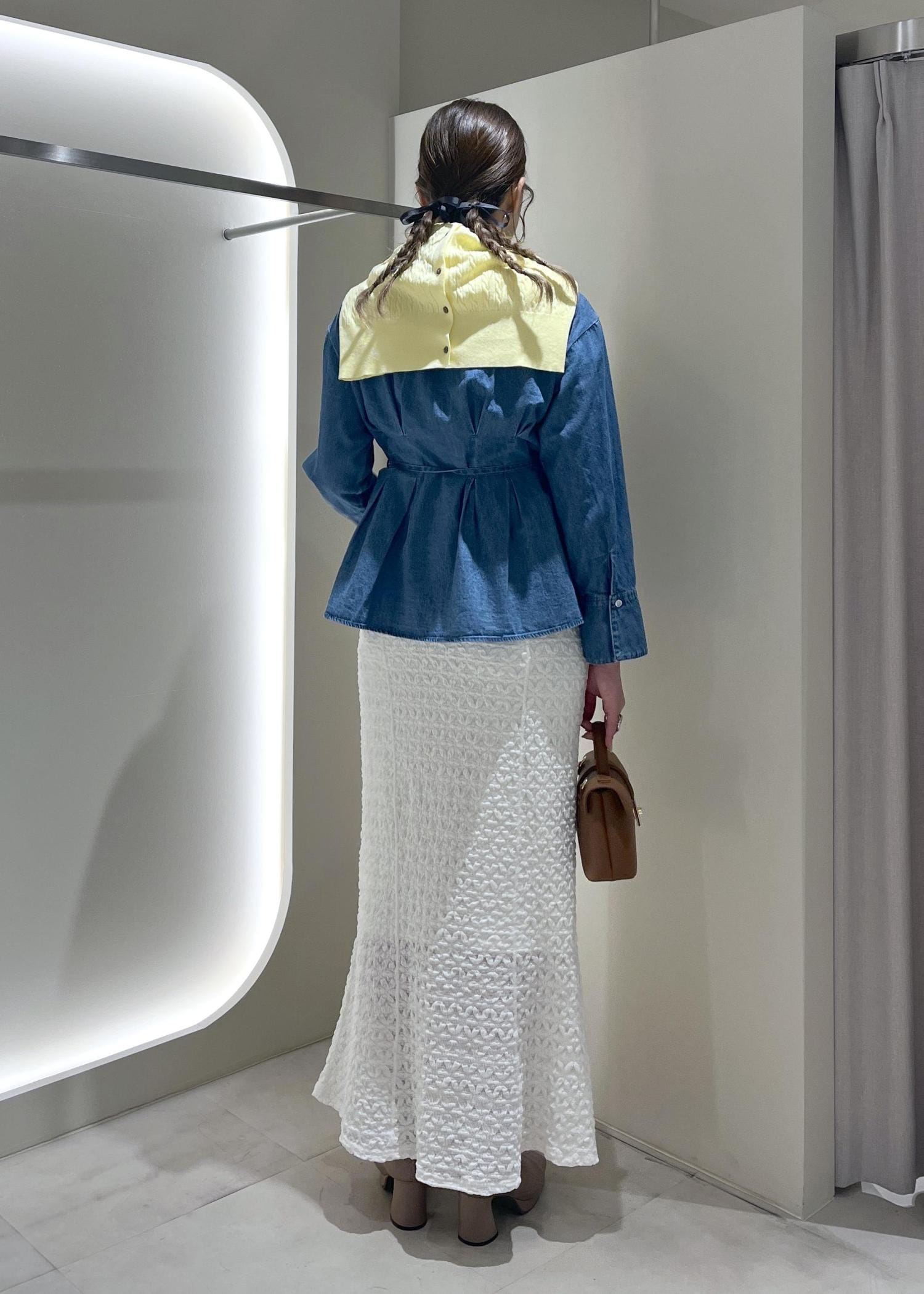 ジャガードのワンピースは長さが欲しかったので袖を抜いてスカート風に着用しています。