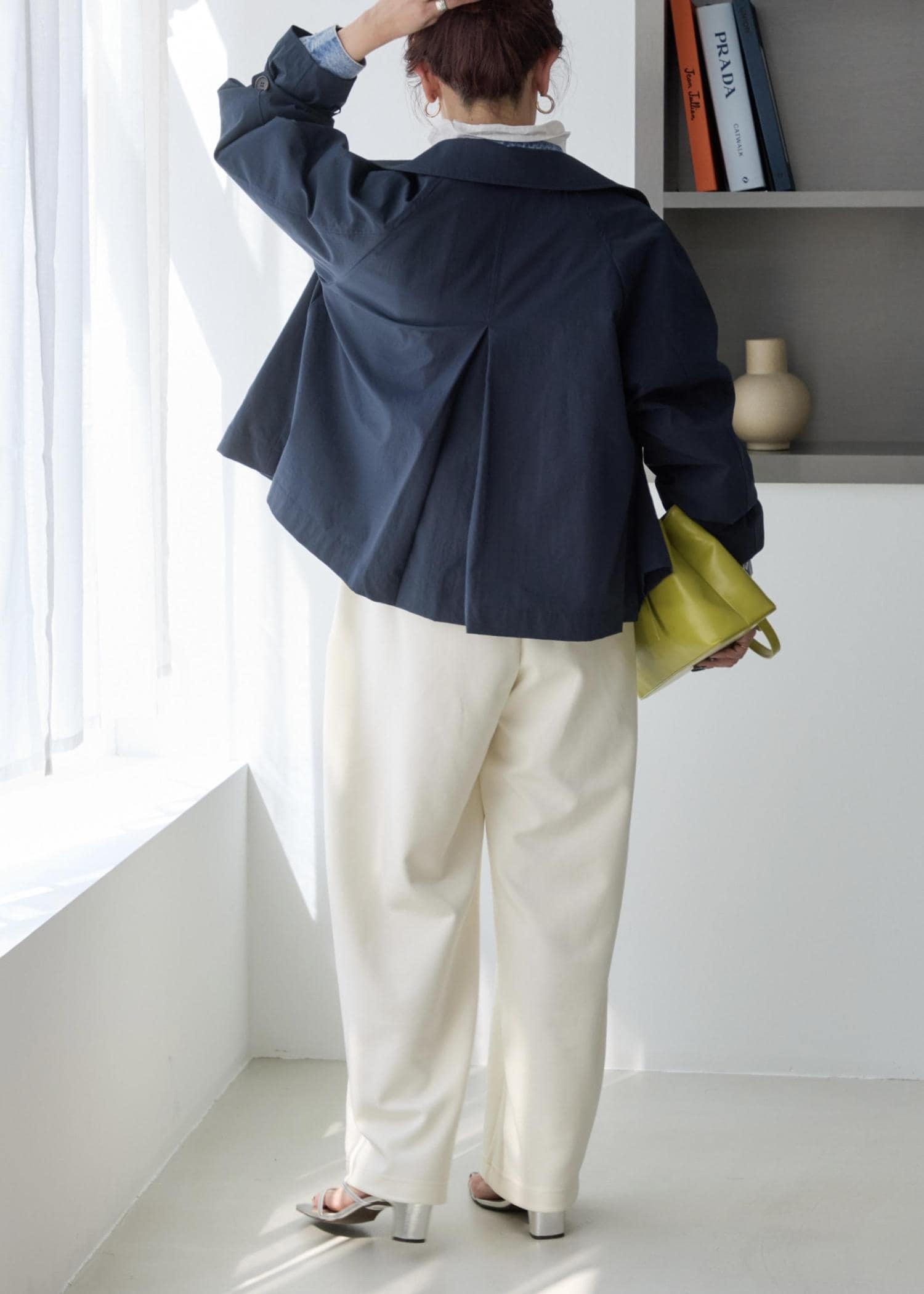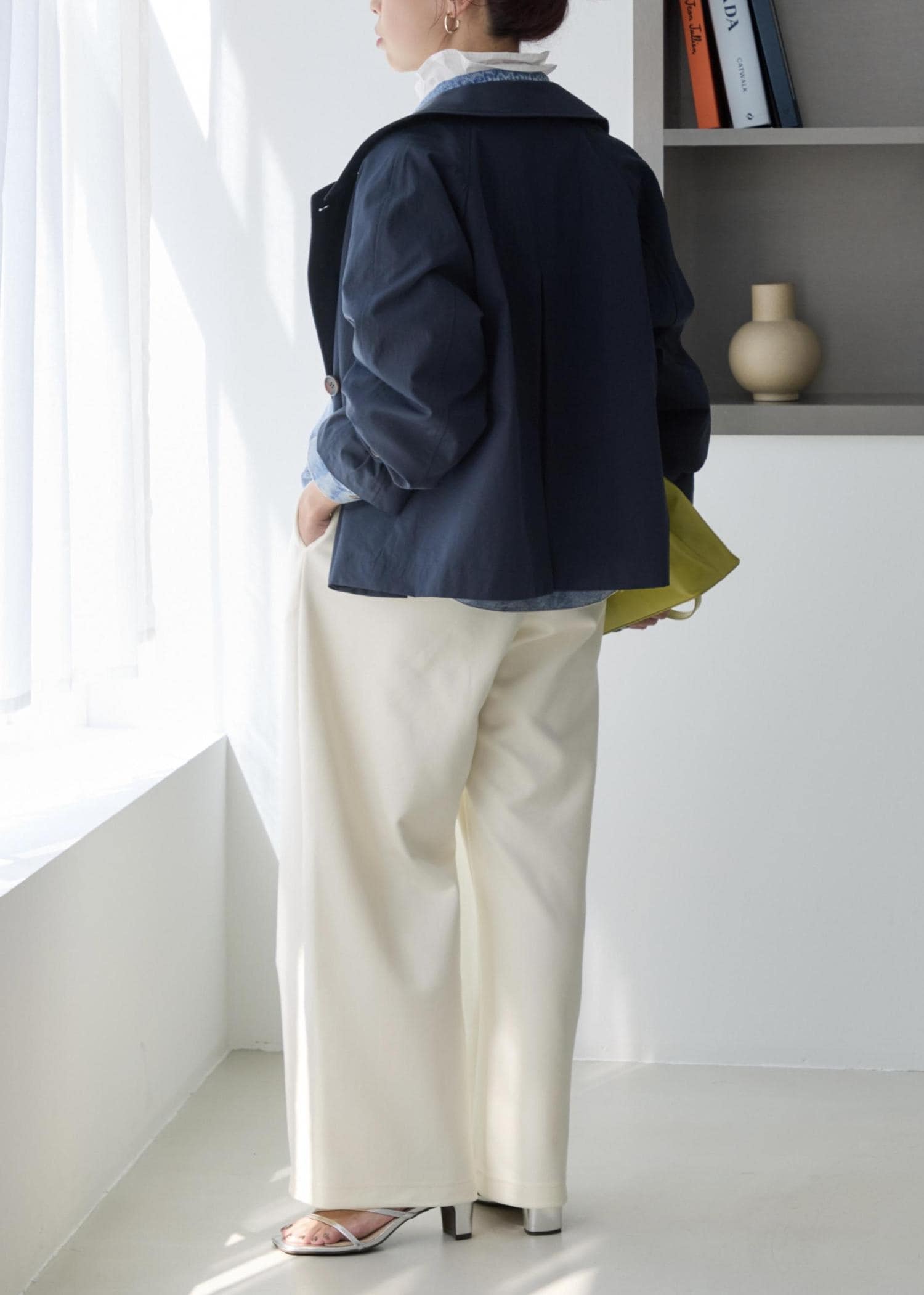 とにかく軽い素材感で、柔らかく着心地も良いため、きちんと感は残しつつ、ほどよくラフに羽織れる印象。