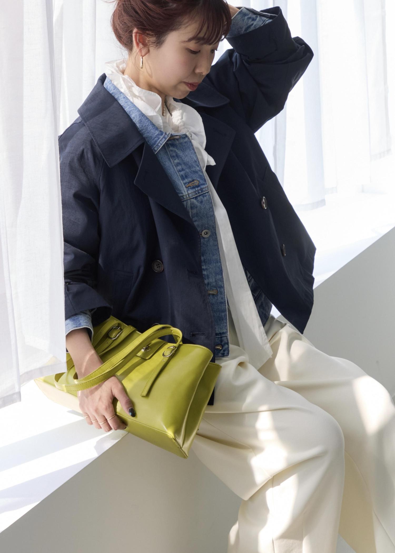 バッグ自体がかなり軽く、少しツヤッとした素材感なのも幅広いコーディネートに相性が良く◎