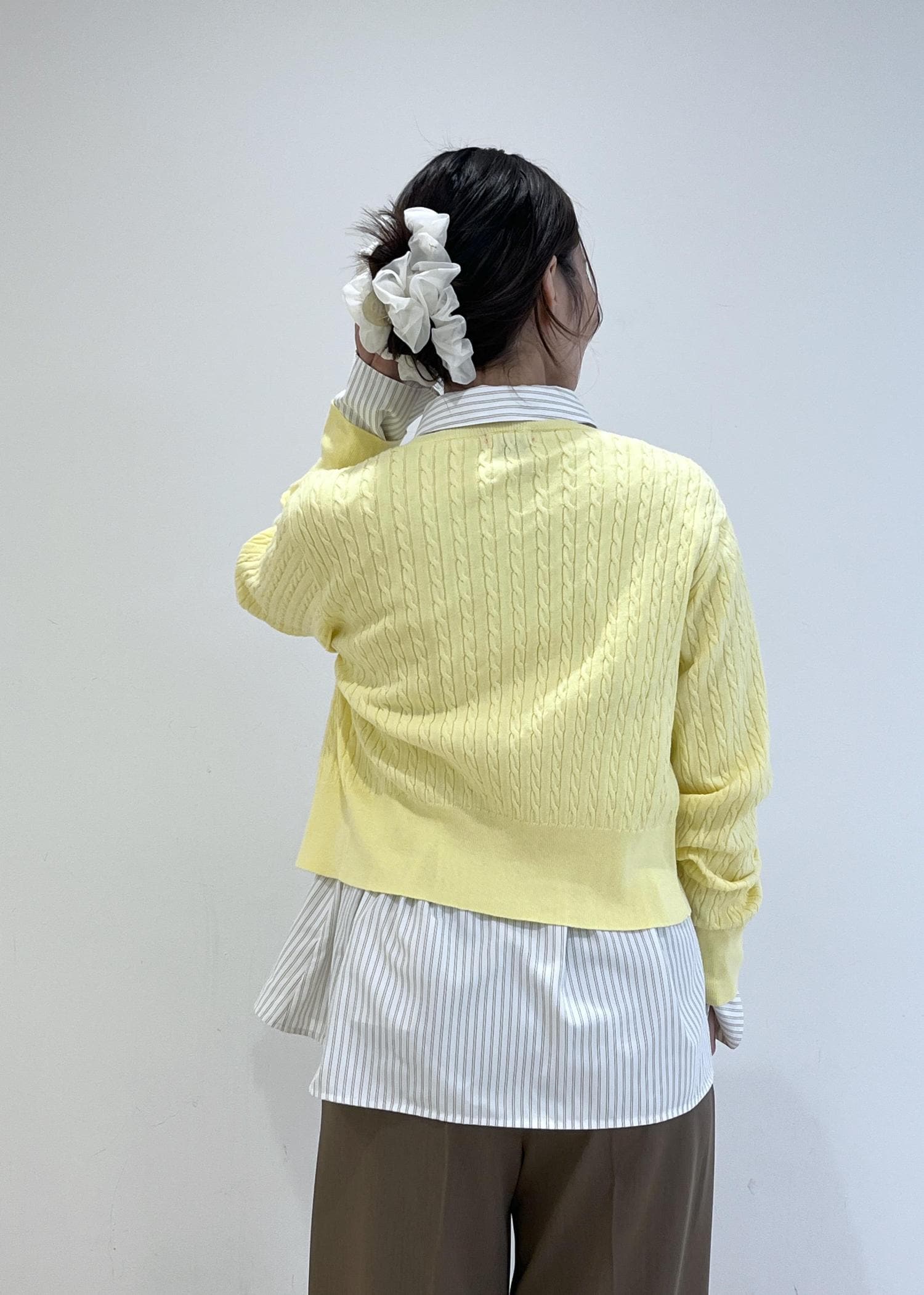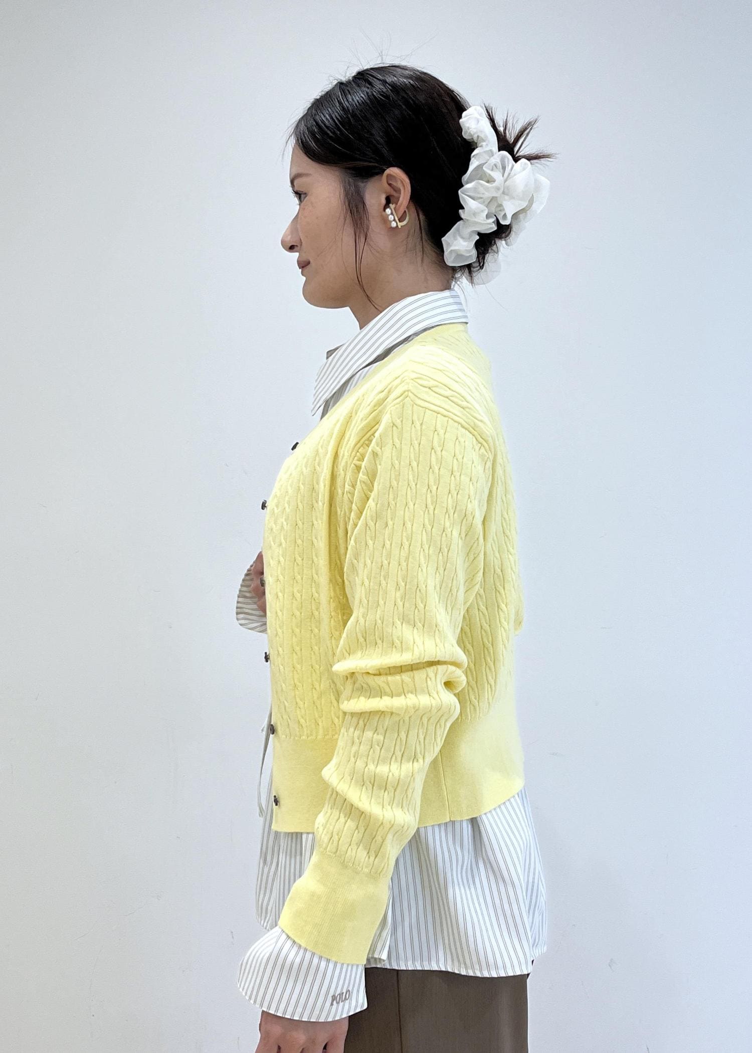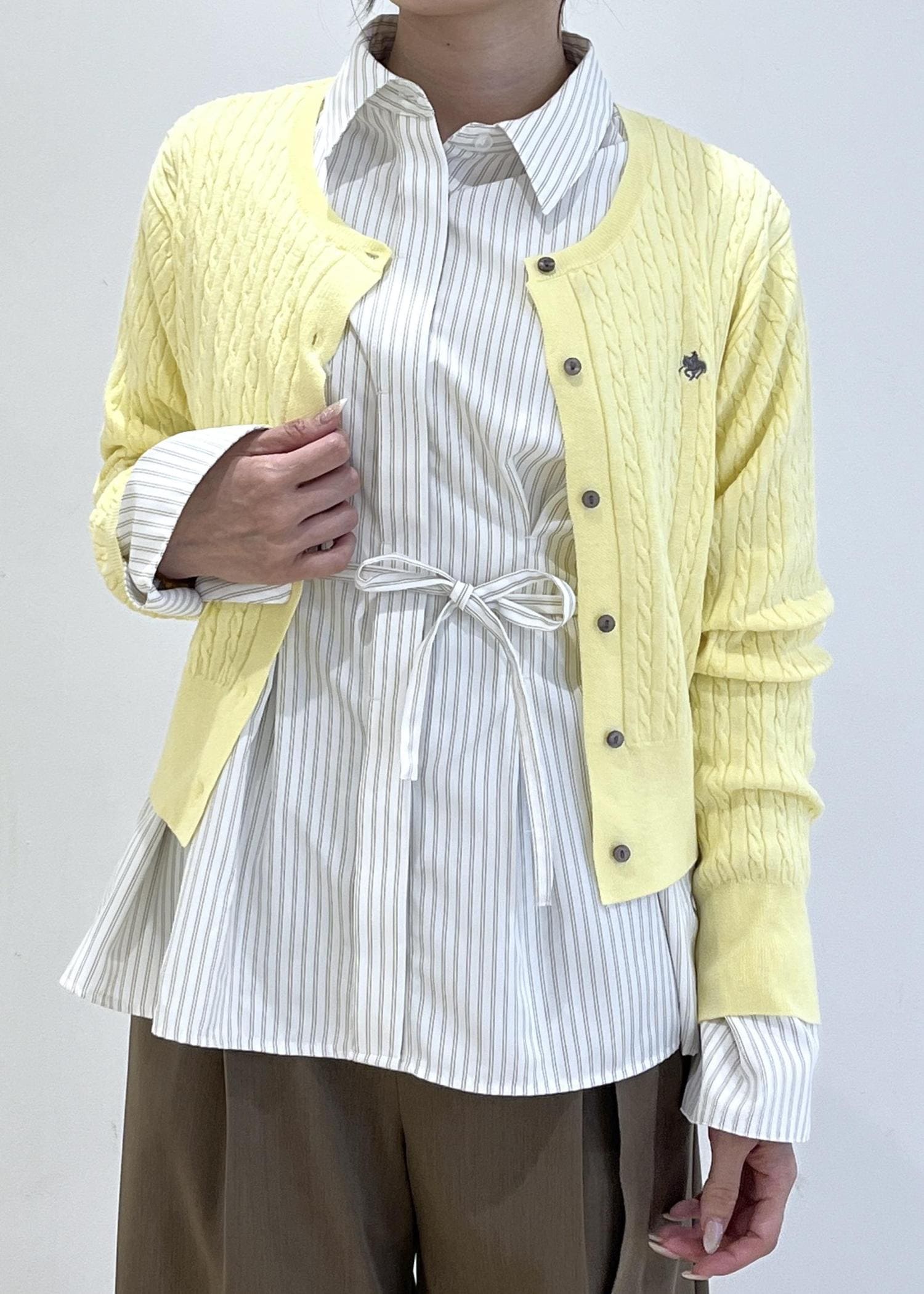 VIS【POLO BCS】VIS別注ミニケーブルノーカラーカーディガンイエロー / F¥6,930レビュー158㎝でFサイズ着用。