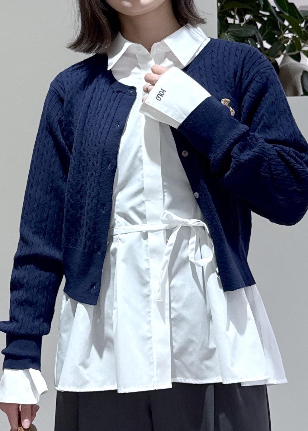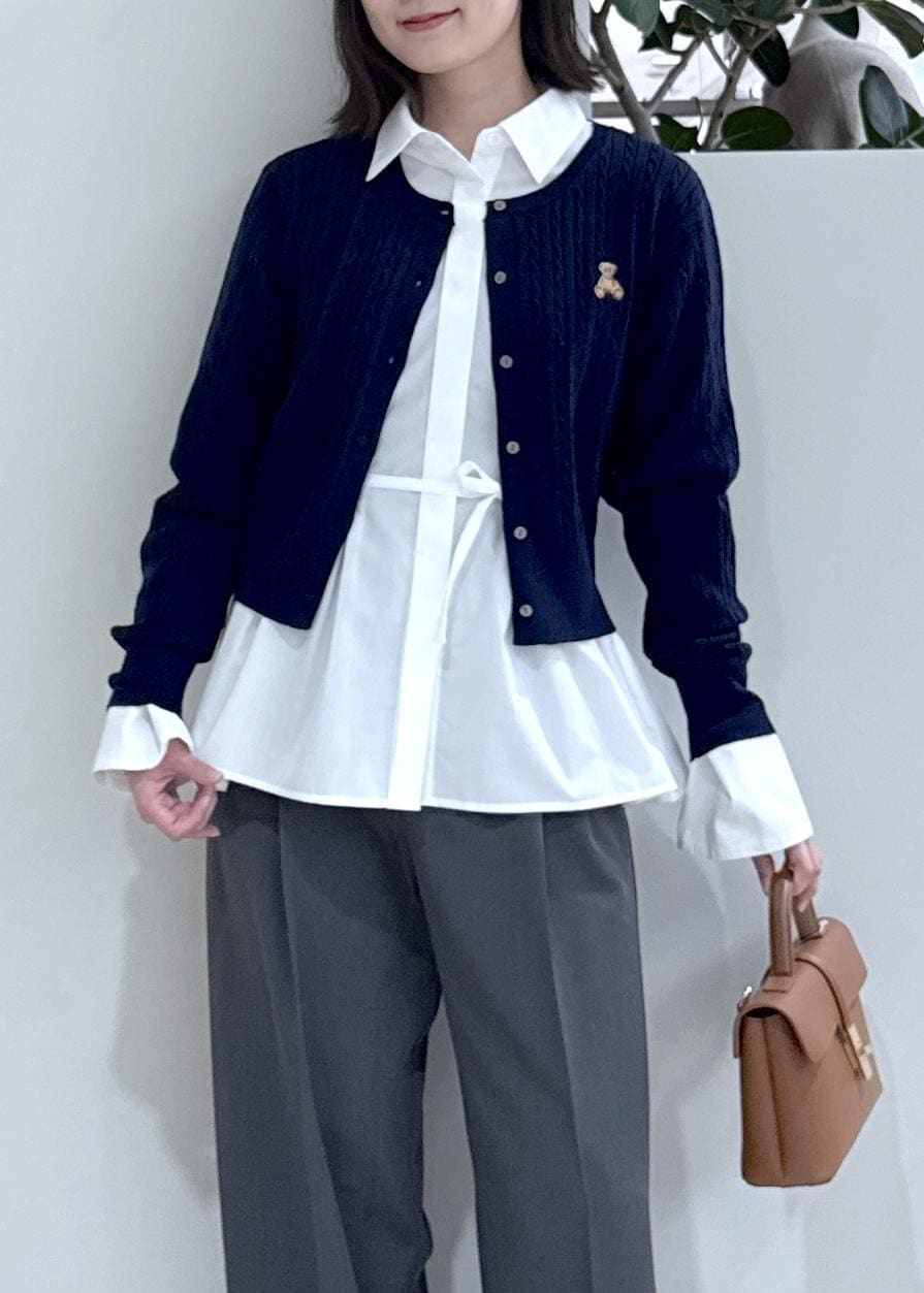 VIS【POLO BCS】VIS別注ミニケーブルノーカラーカーディガンネイビー / F¥6,930レビューミニケーブル編みのコンパクトなサイズ感です。