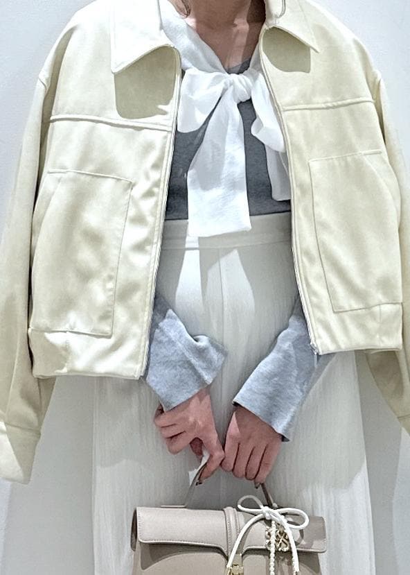 VISアウトポケット合皮ブルゾンクリーム / F¥10,989レビューシーズンを問わず着回せる、柔らかく女性らしい合皮ブルゾン。