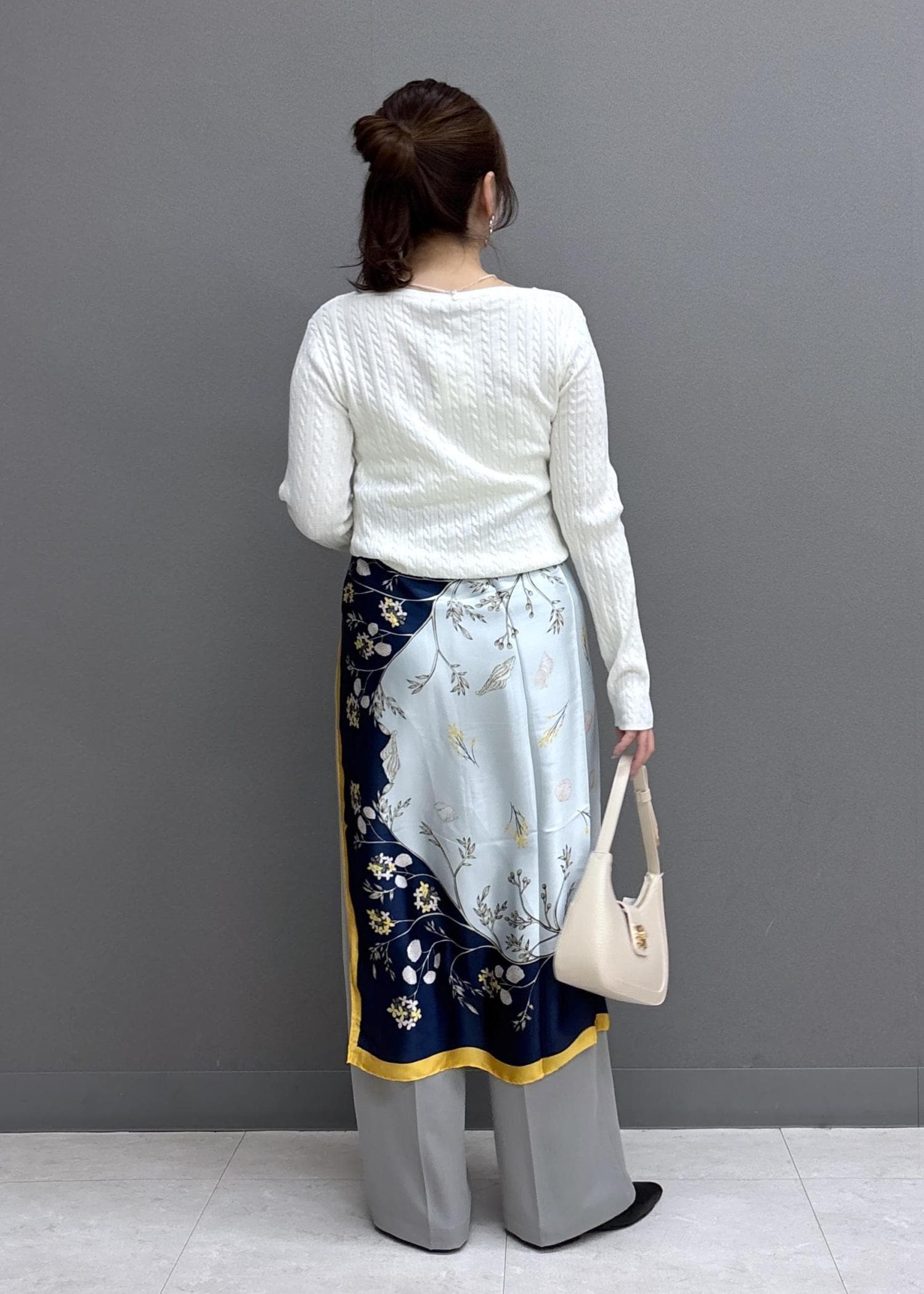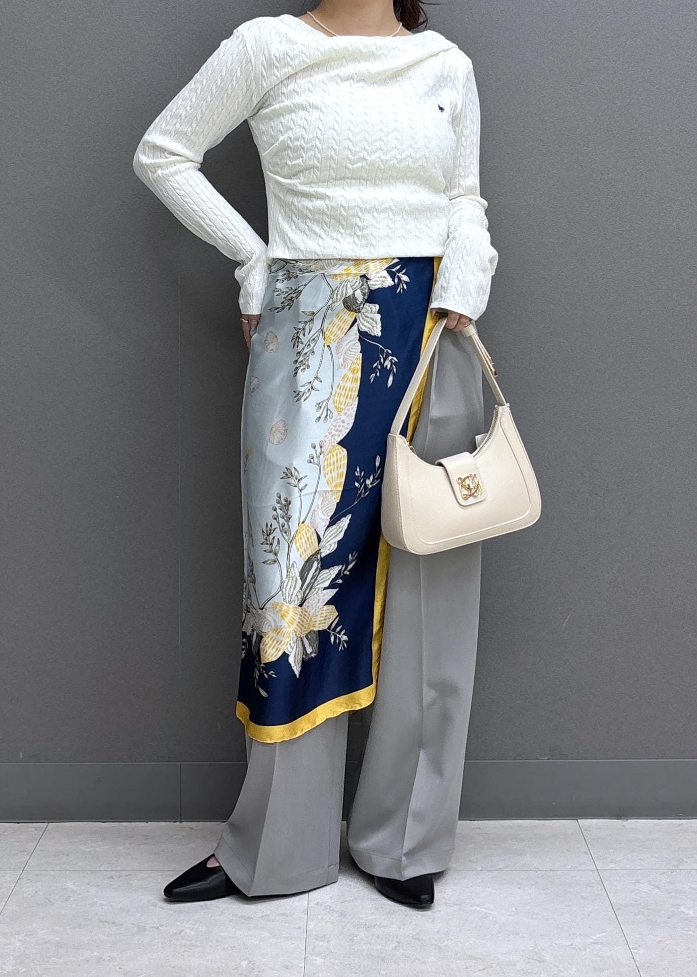 女性らしさも忘れないドレープニットを主役に、、