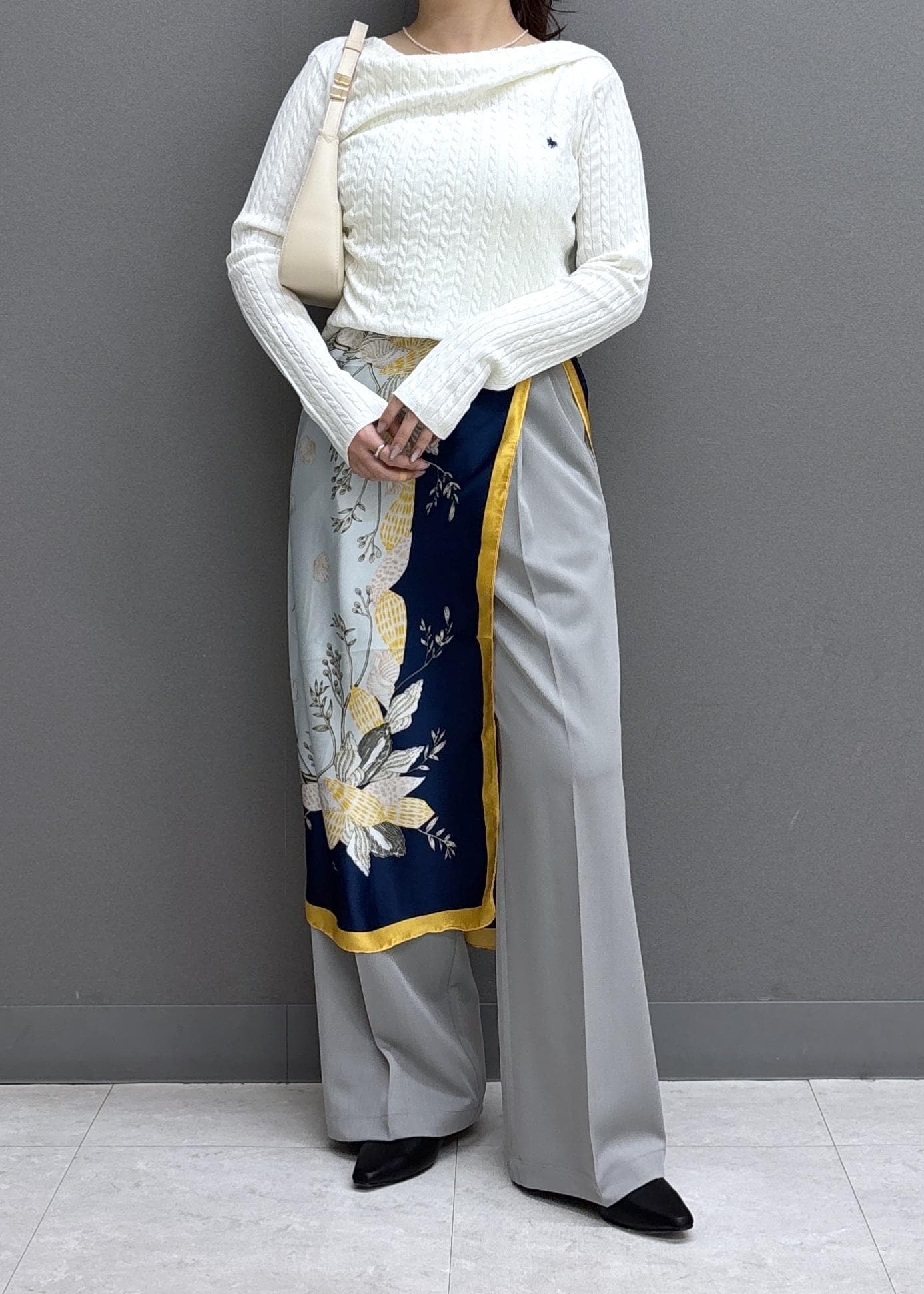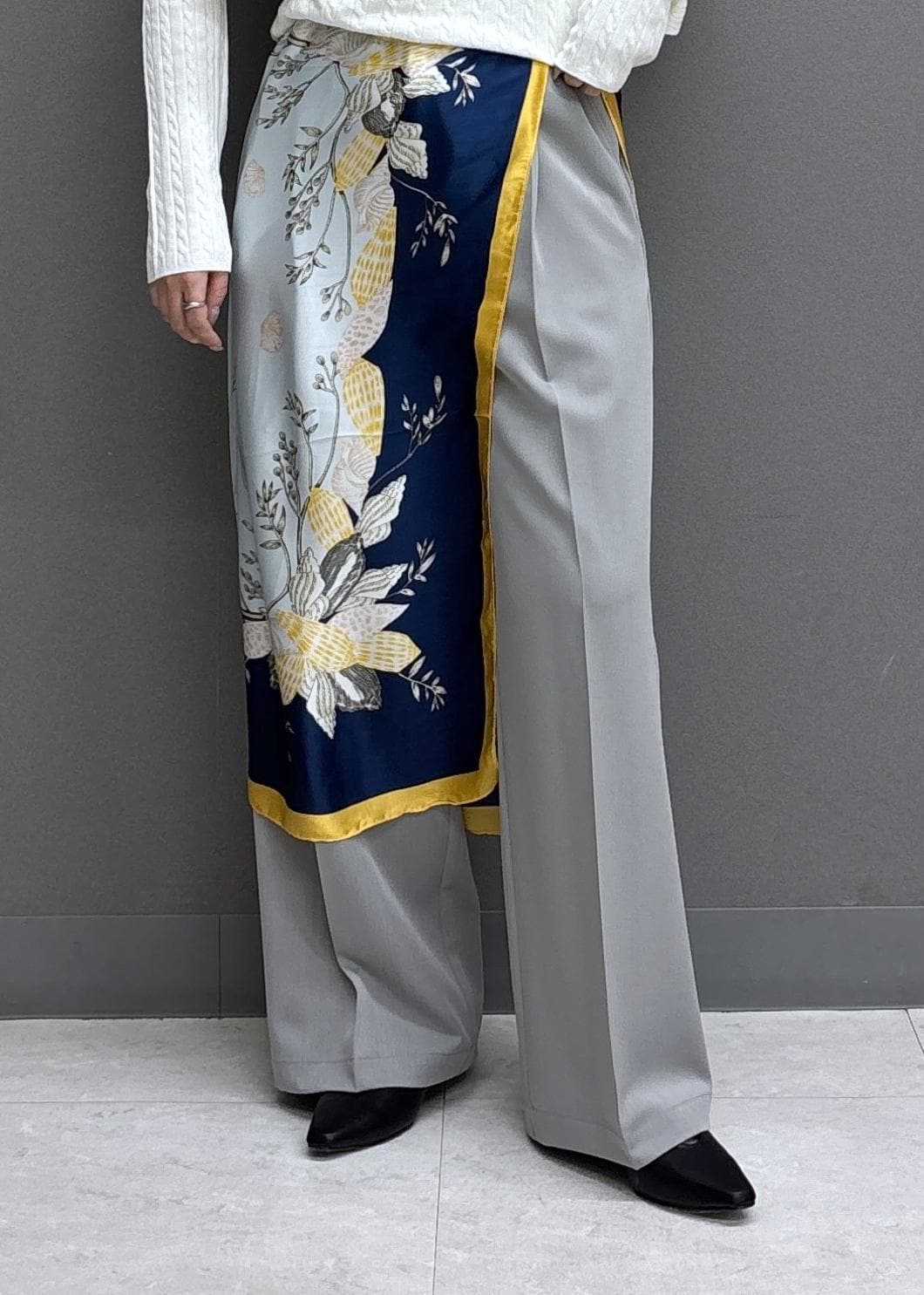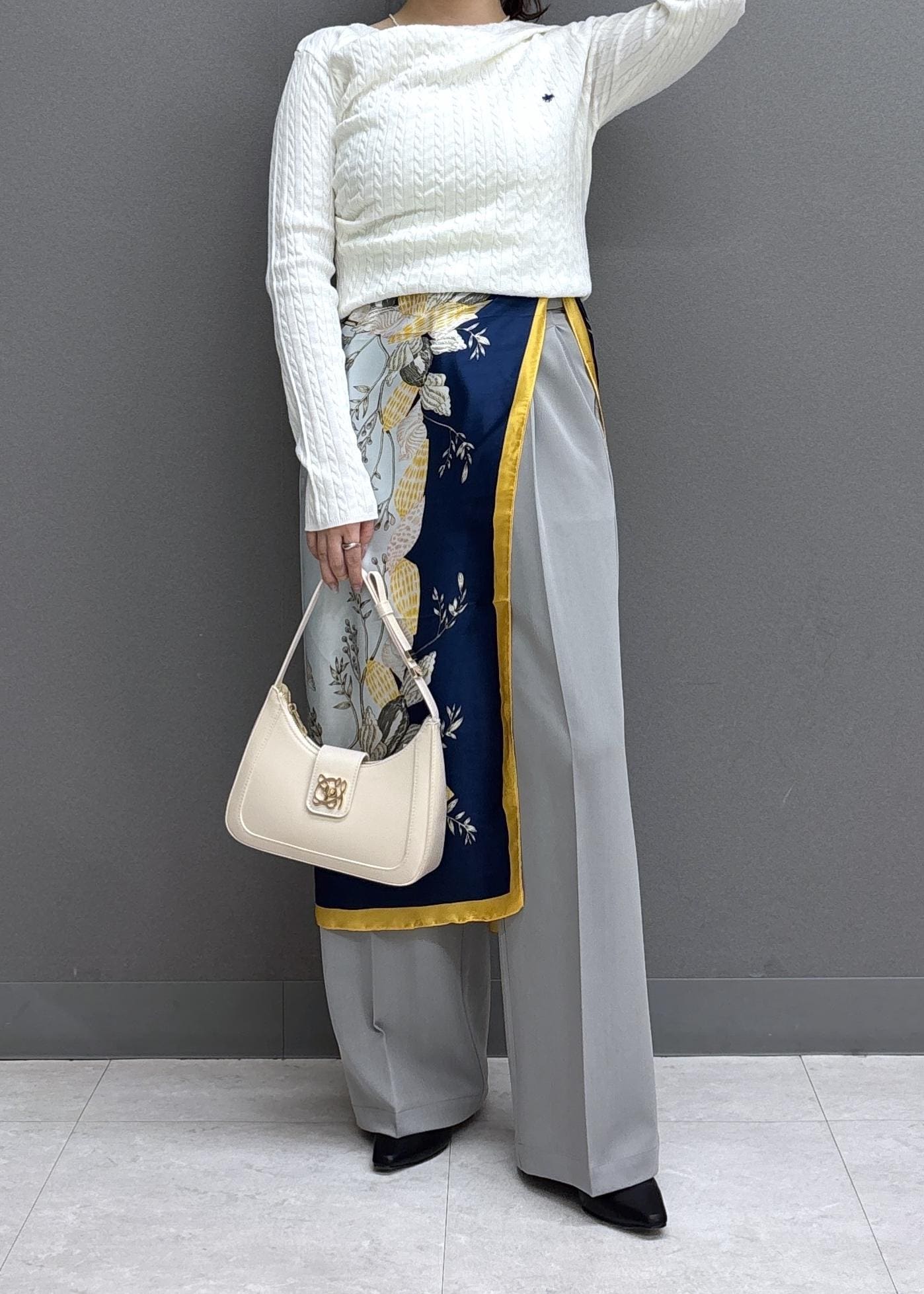 存在感のあるスカーフを取り入れると