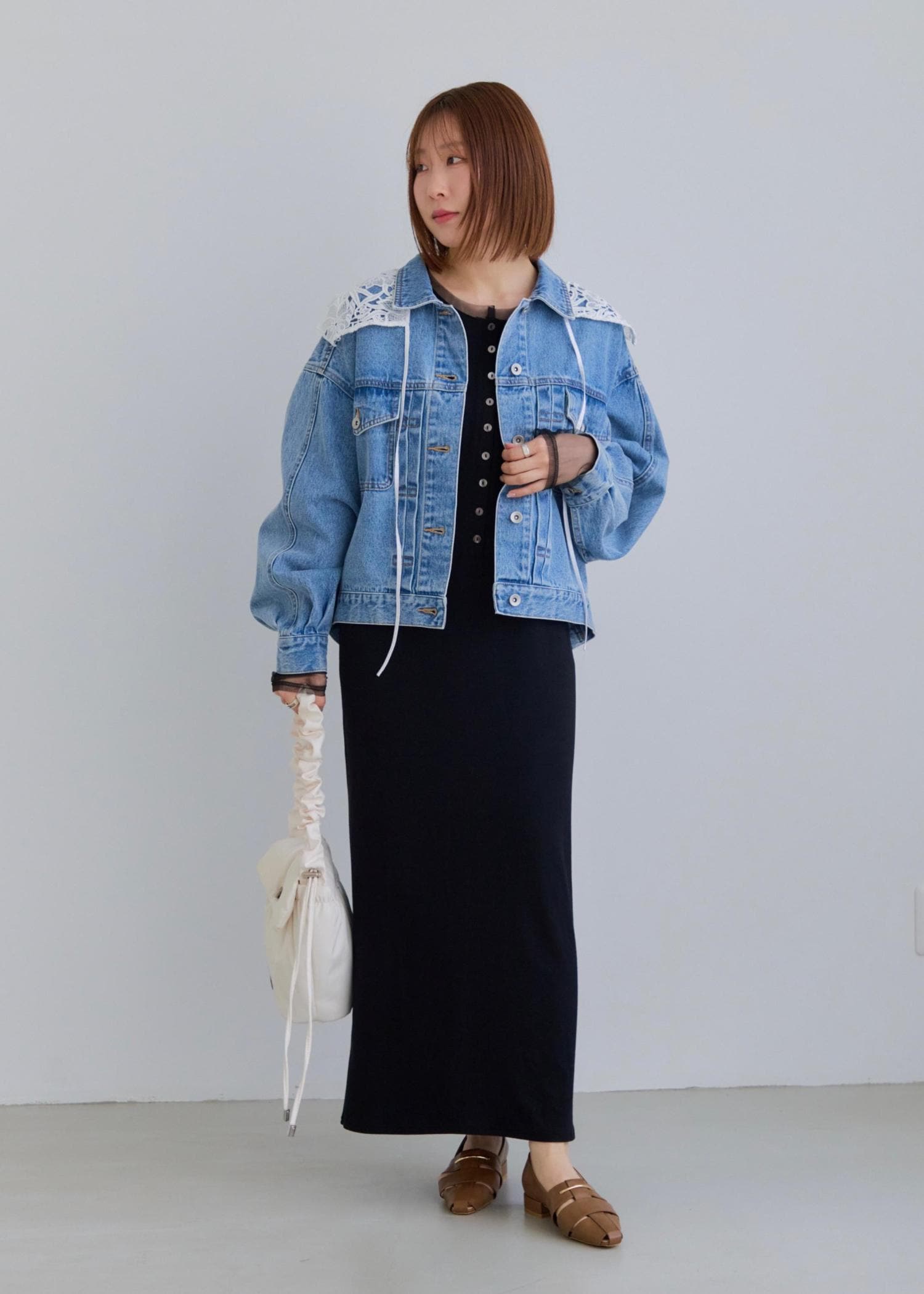 フロントのリボン結びでフィット感を変えられるので、レイヤードもしやすいです◎