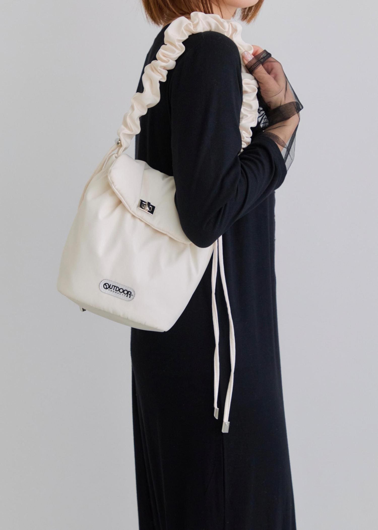 軽量で持ちやすいのと、ショルダーがドロスト仕様なのでお好みの長さに調節してお使いいただけます。