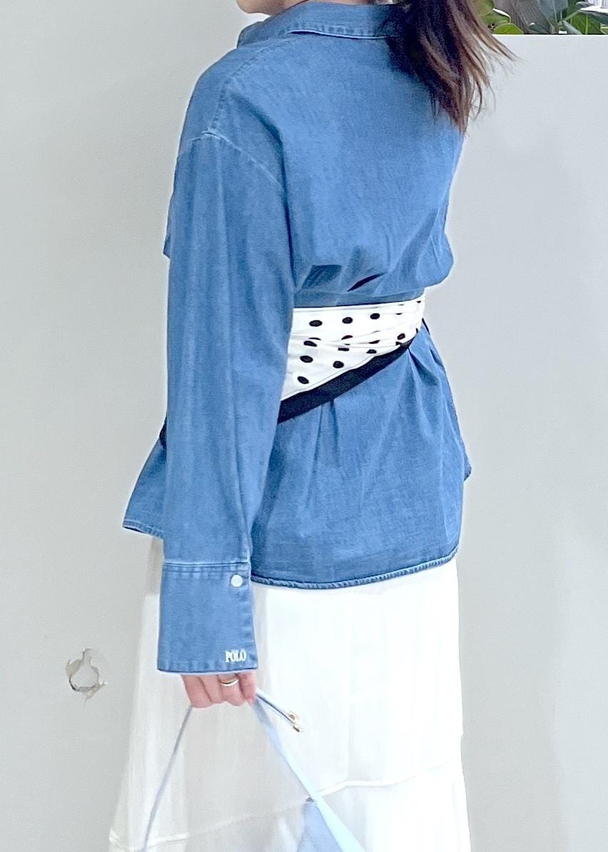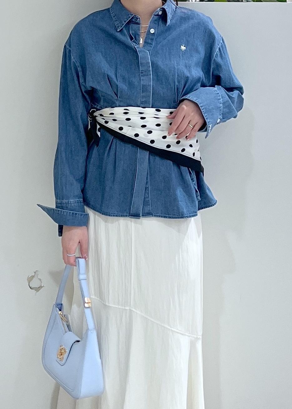 VIS【POLO BCS】VIS別注ベルト付きウエストタックシャツブラウスサックス / F¥6,930レビュー春に活躍出来そうなデニムシャツです。硬すぎず、柔らかい生地のデニムなので着心地が良いです。