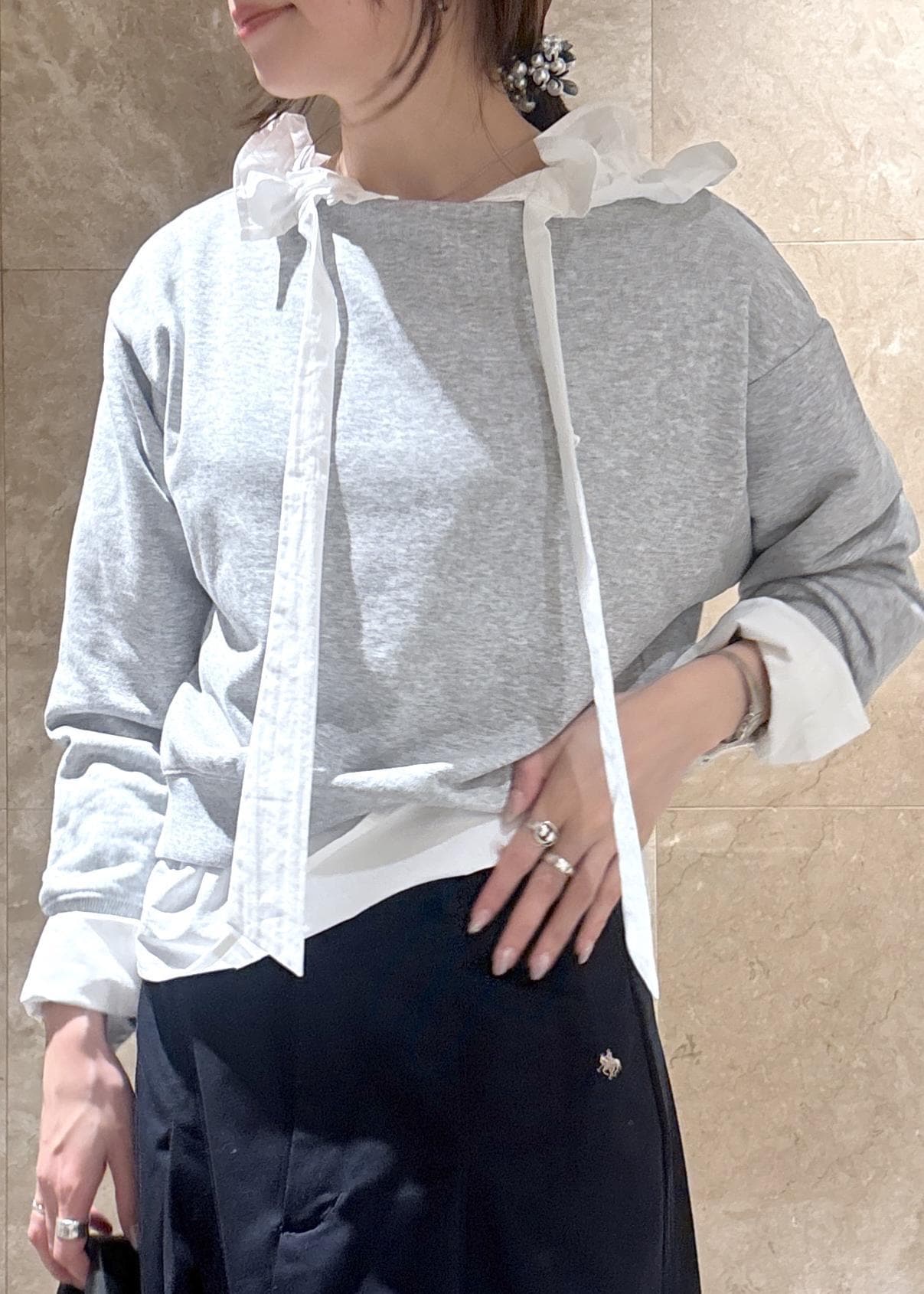 VIS【POLO BCS】VIS別注オフショルスウェットトップスライトグレー / F¥5,940レビュー首周りはボートネックラインで、ワンショルダーにもできるデザイン。