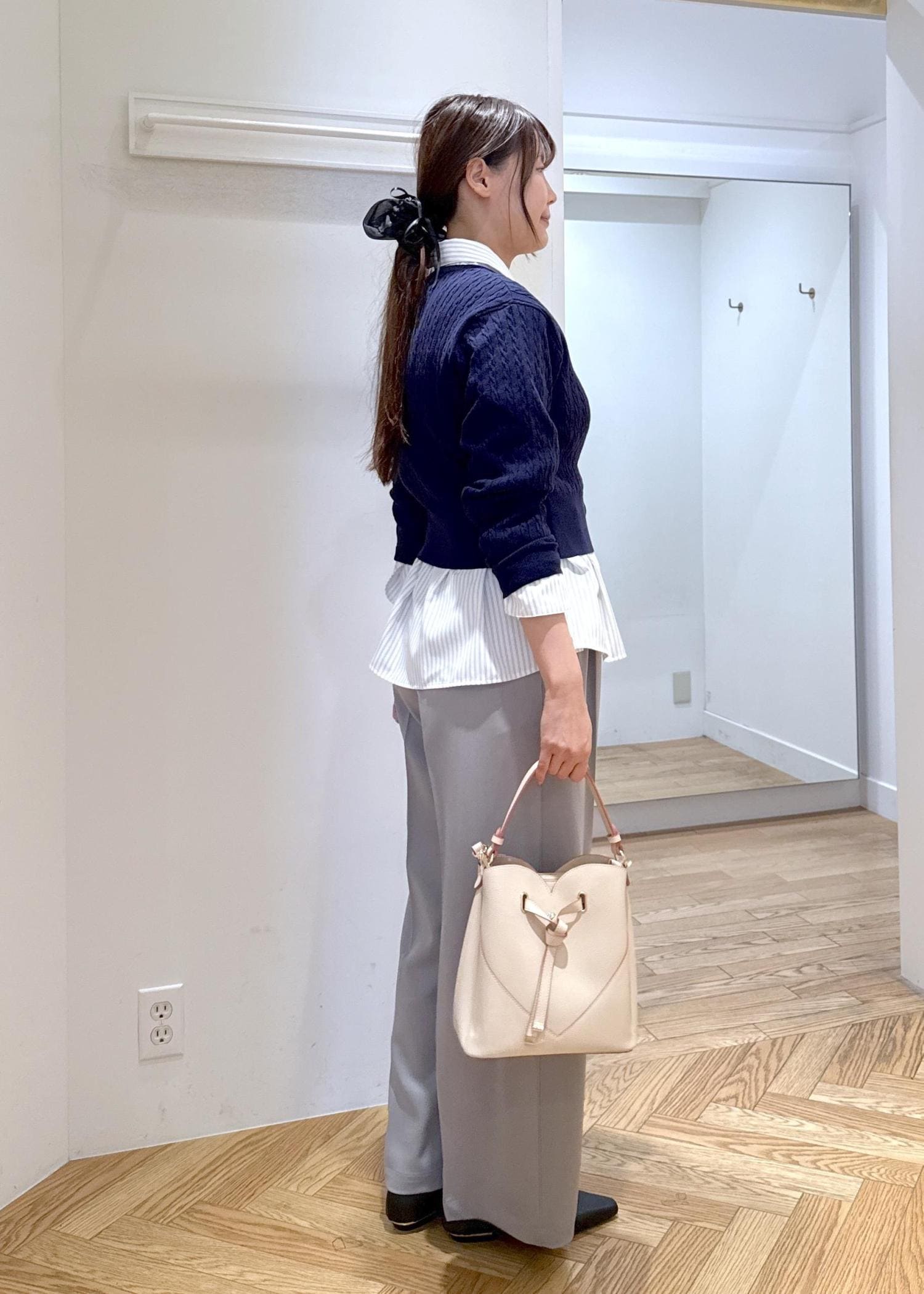 カーディガンを合わせて着用するのもおすすめです。 -