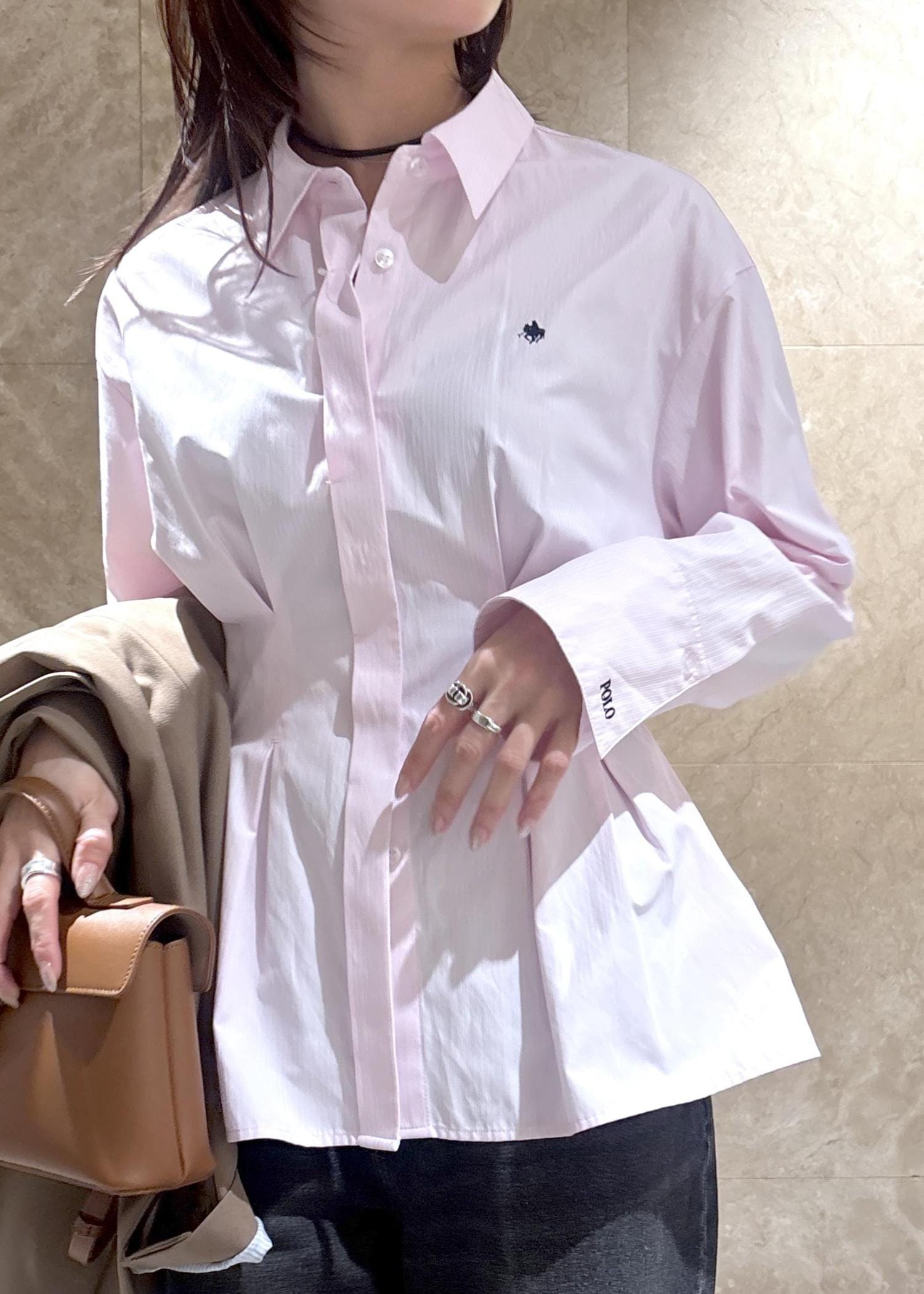 VIS【POLO BCS】VIS別注ベルト付きウエストタックシャツブラウスピンク系 / F¥6,930レビュー全体的にはゆったりしたシャツですが、ウエストタックとウエストリボンでスタイルアップできるシャツです。