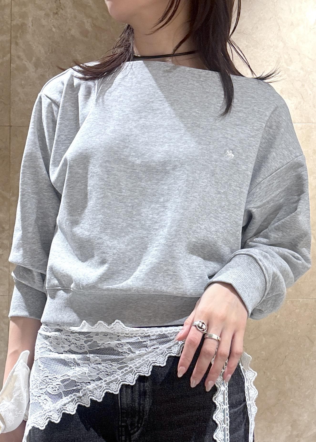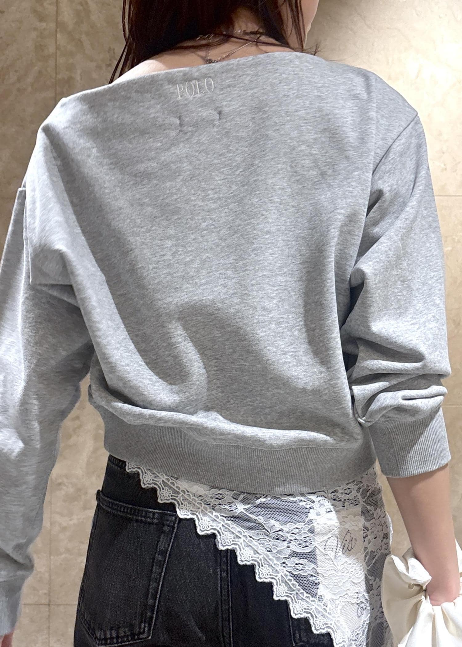 VIS【POLO BCS】VIS別注オフショルスウェットトップスライトグレー / F¥5,940レビュー首周りはボートネックラインで、ワンショルダーにもできるデザイン。