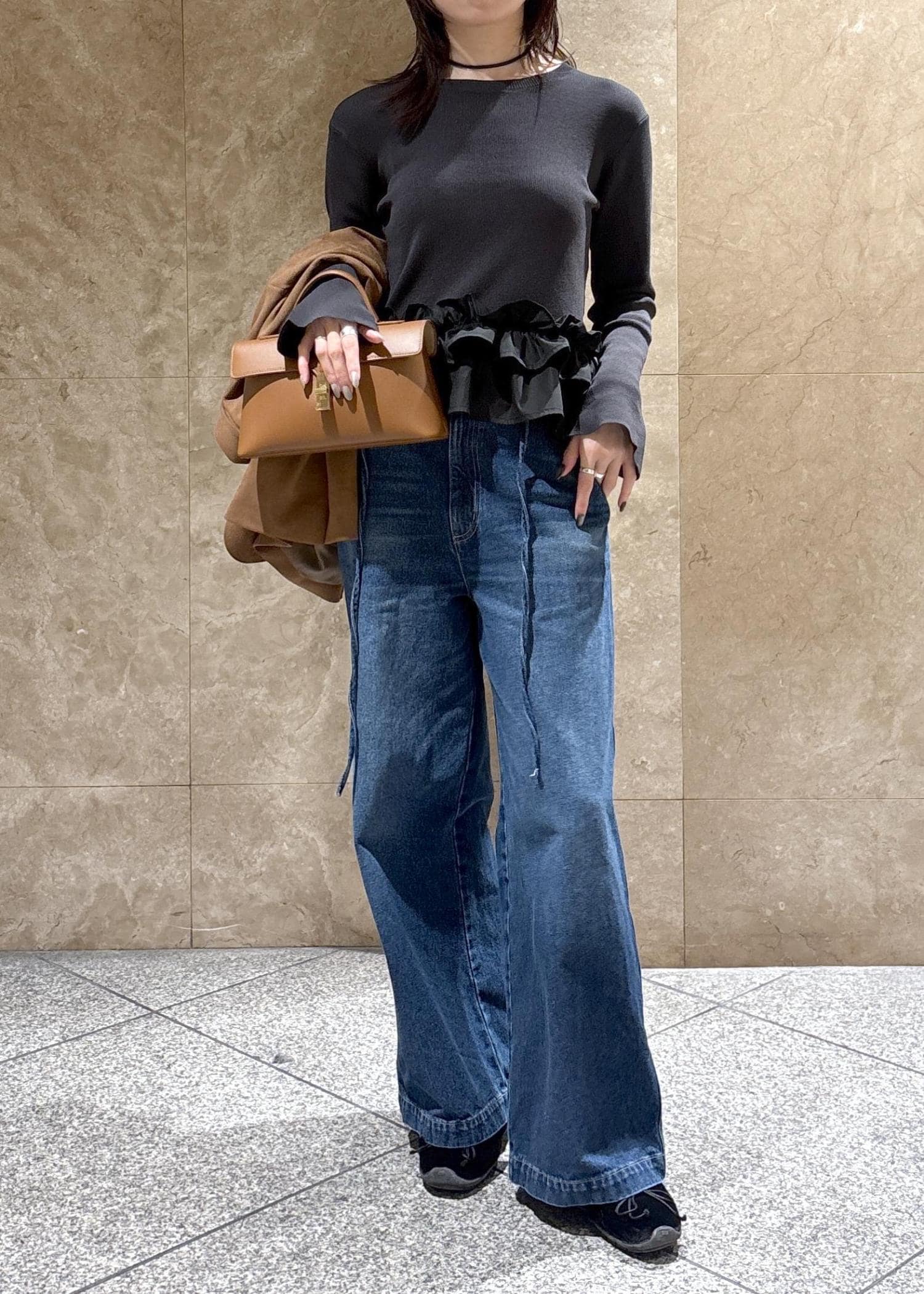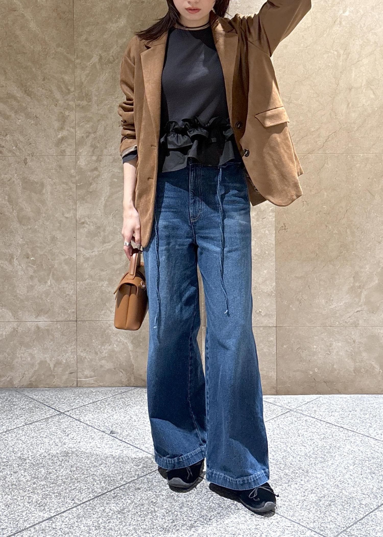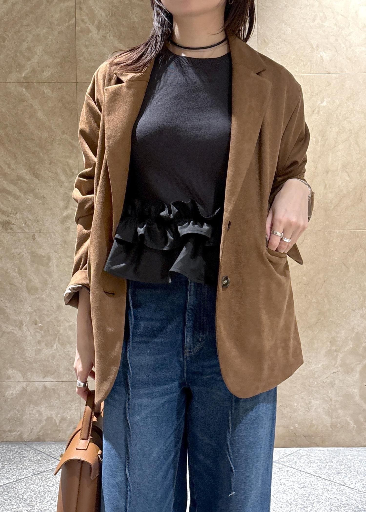 骨格ナチュラルだからか、インナーはハリのあるゆったりしたシャツよりかは、スッキリしたアイテムの方が相性◎でした。 -