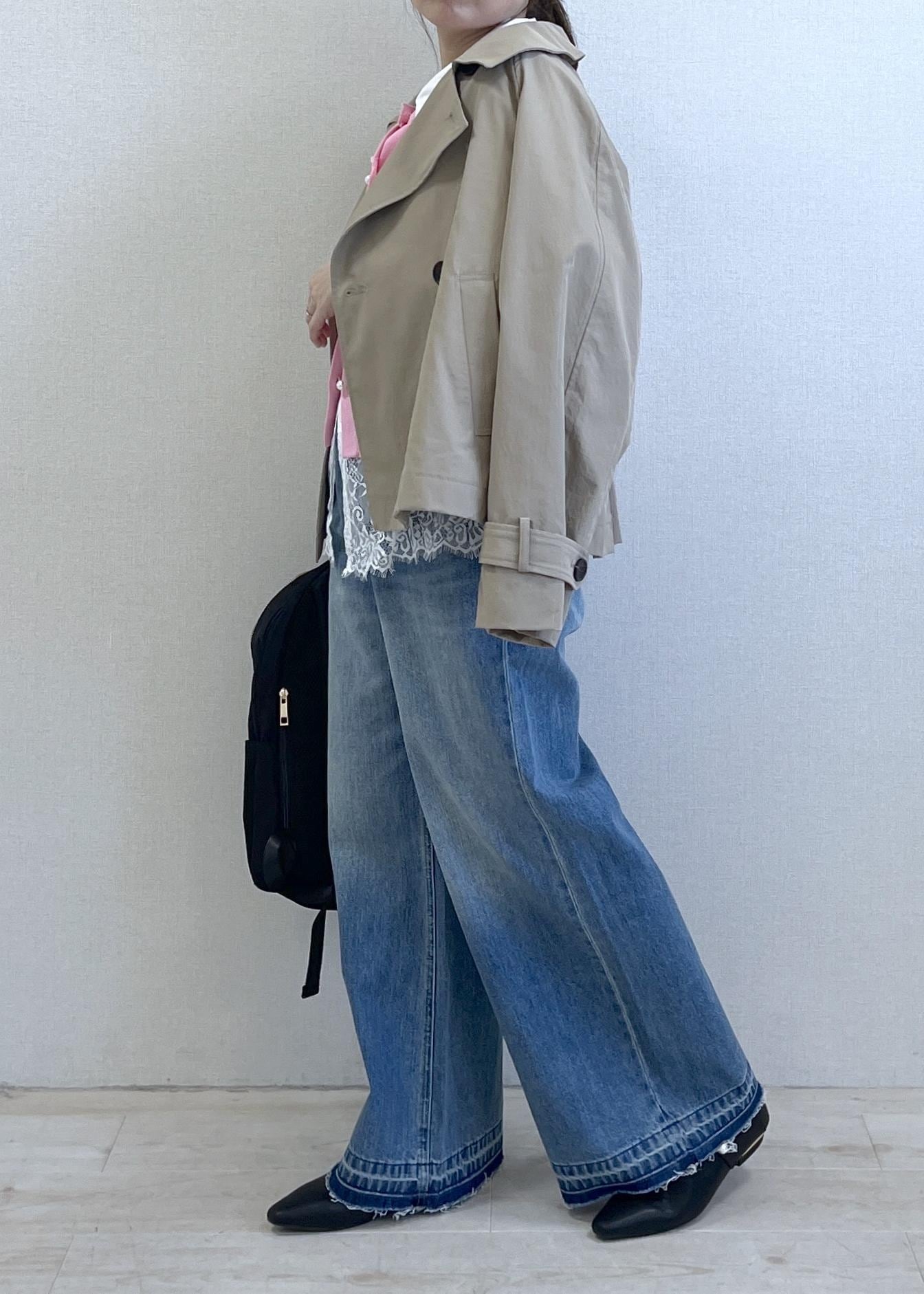 ワイドデニムを合わせた春のカジュアルコーデ。