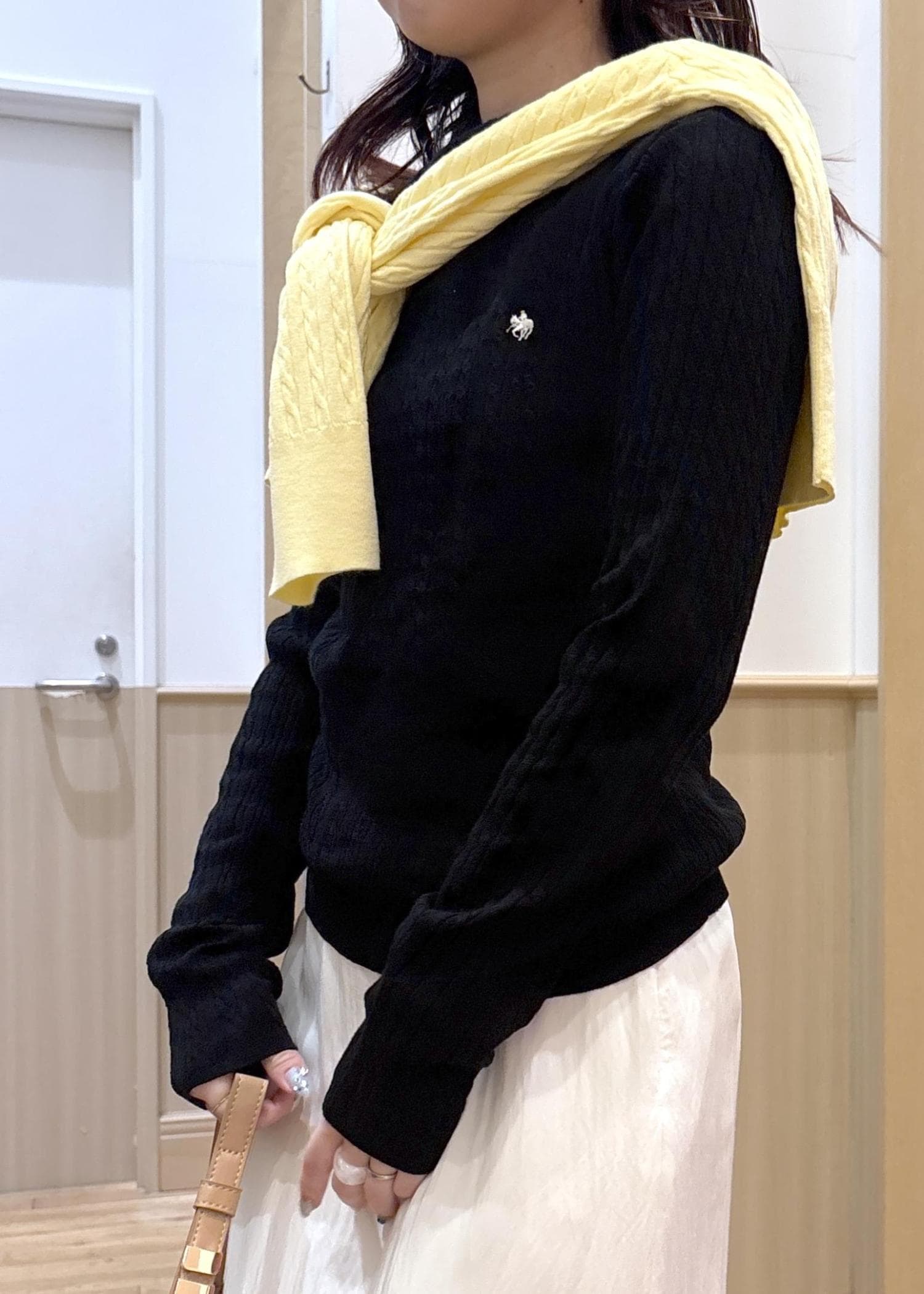 2BUY10%OFFVIS【POLO BCS】VIS別注ケーブルドレープトップスブラック / F¥6,930レビュードレープデザインが可愛いニットです。