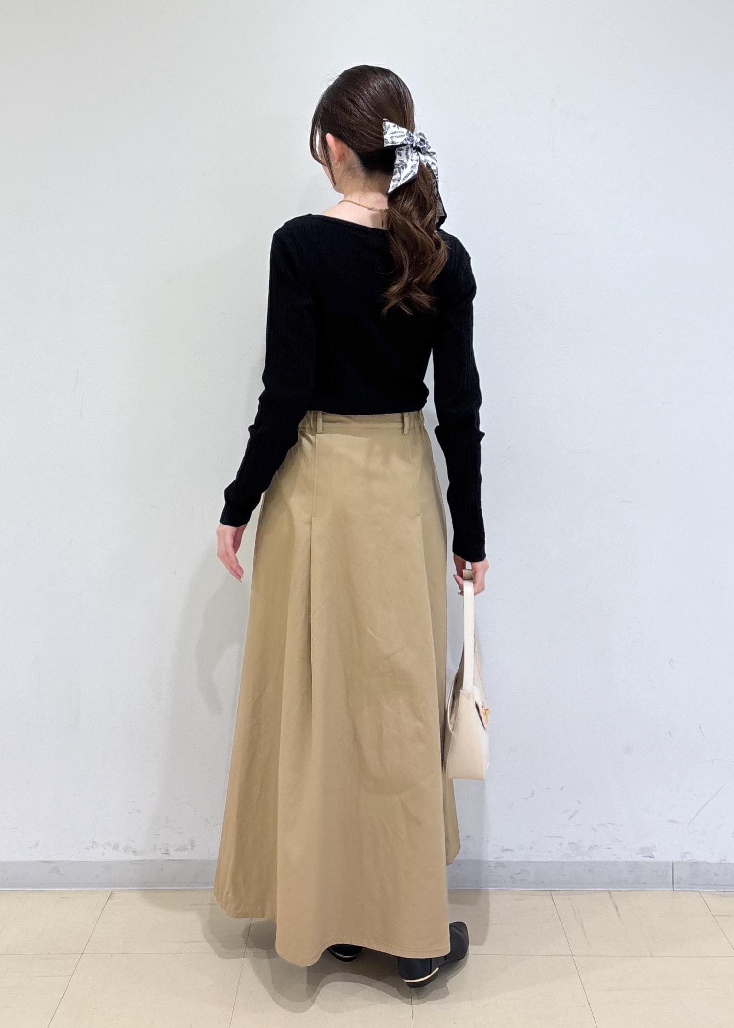 トップスがスッキリしているのでフレアスカートとのバランスが良いです。