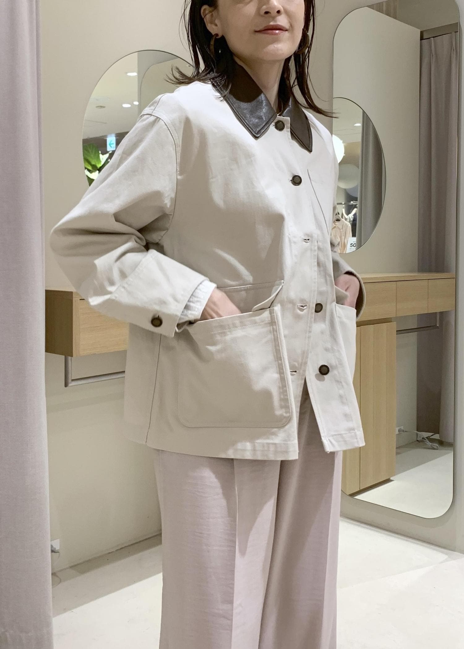 襟の異素材使いがメリハリを持たせてくれて、ポイントになりますよ。