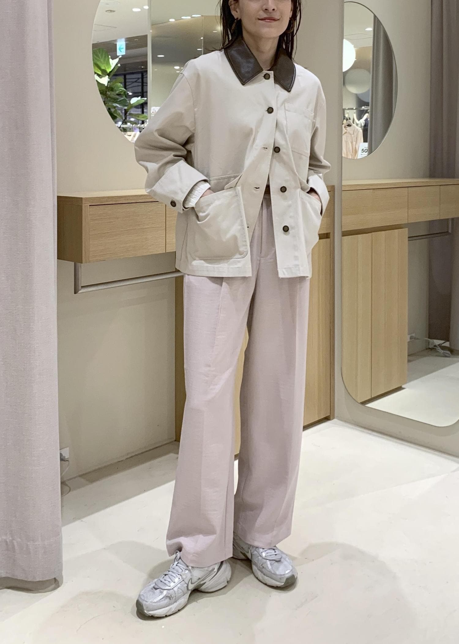 まだ春は肌寒いので、カーディガンやインナーダウンなど中に着込めるゆとりはあります。 -