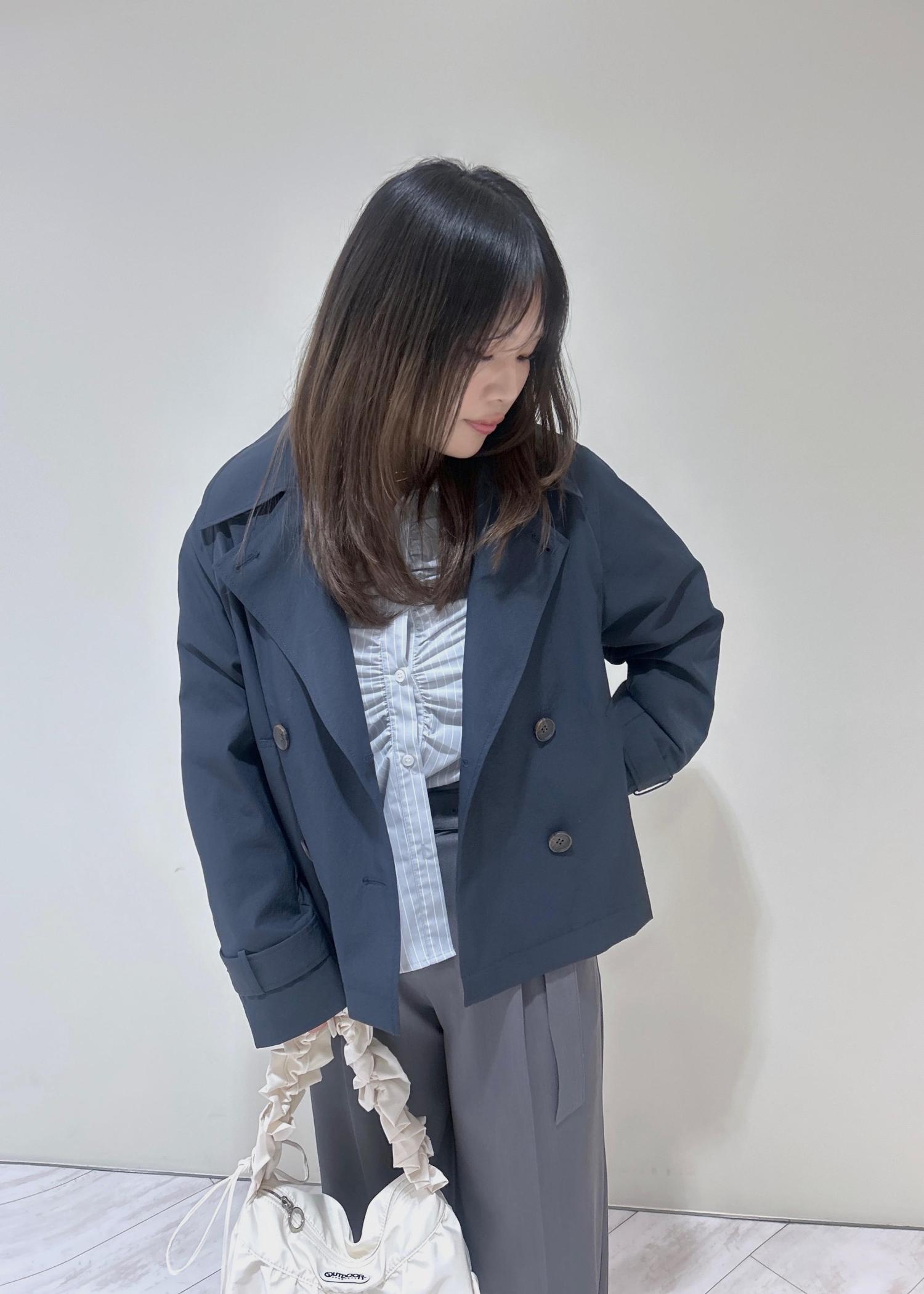 NEW!VISショートトレンチコート/UVケア・撥水・花粉ガードネイビー / F¥13,090レビュー156cmで腰下あたりの丈感で、長すぎず短すぎないのでトップスを選ぶことなく使いやすい丈感です!