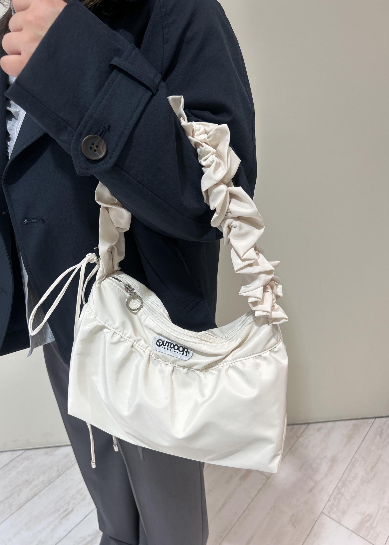 予約VIS【OUTDOOR PRODUCTS】VIS別注フリルショルダーバッグキナリ / F¥7,480レビューペットボトル、長財布、折りたたみ傘から何でも入る大容量バッグです!