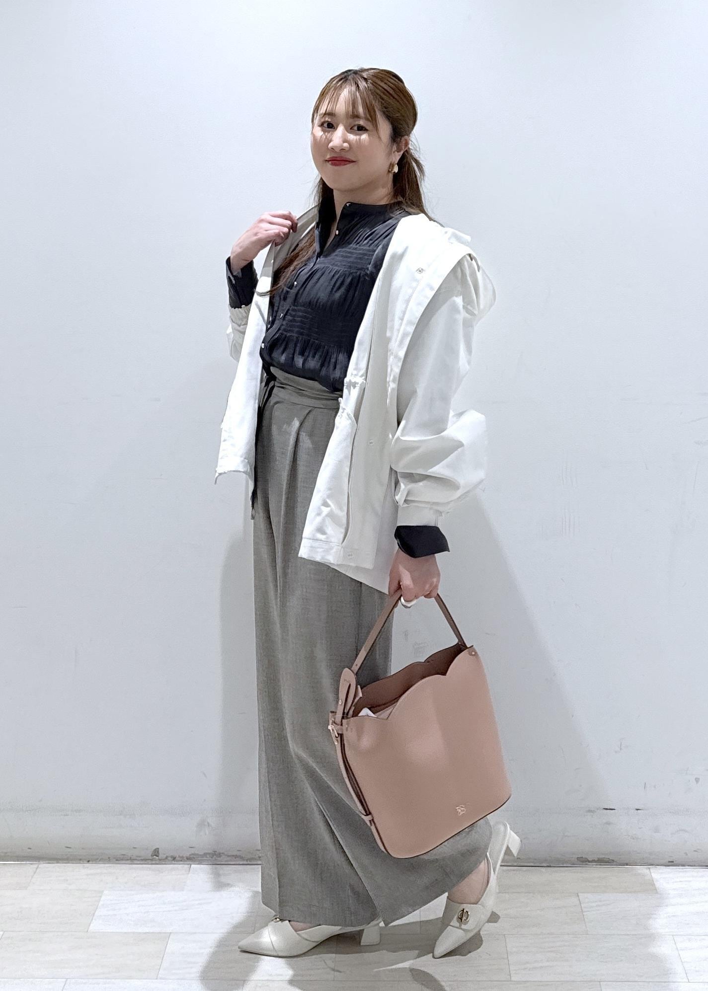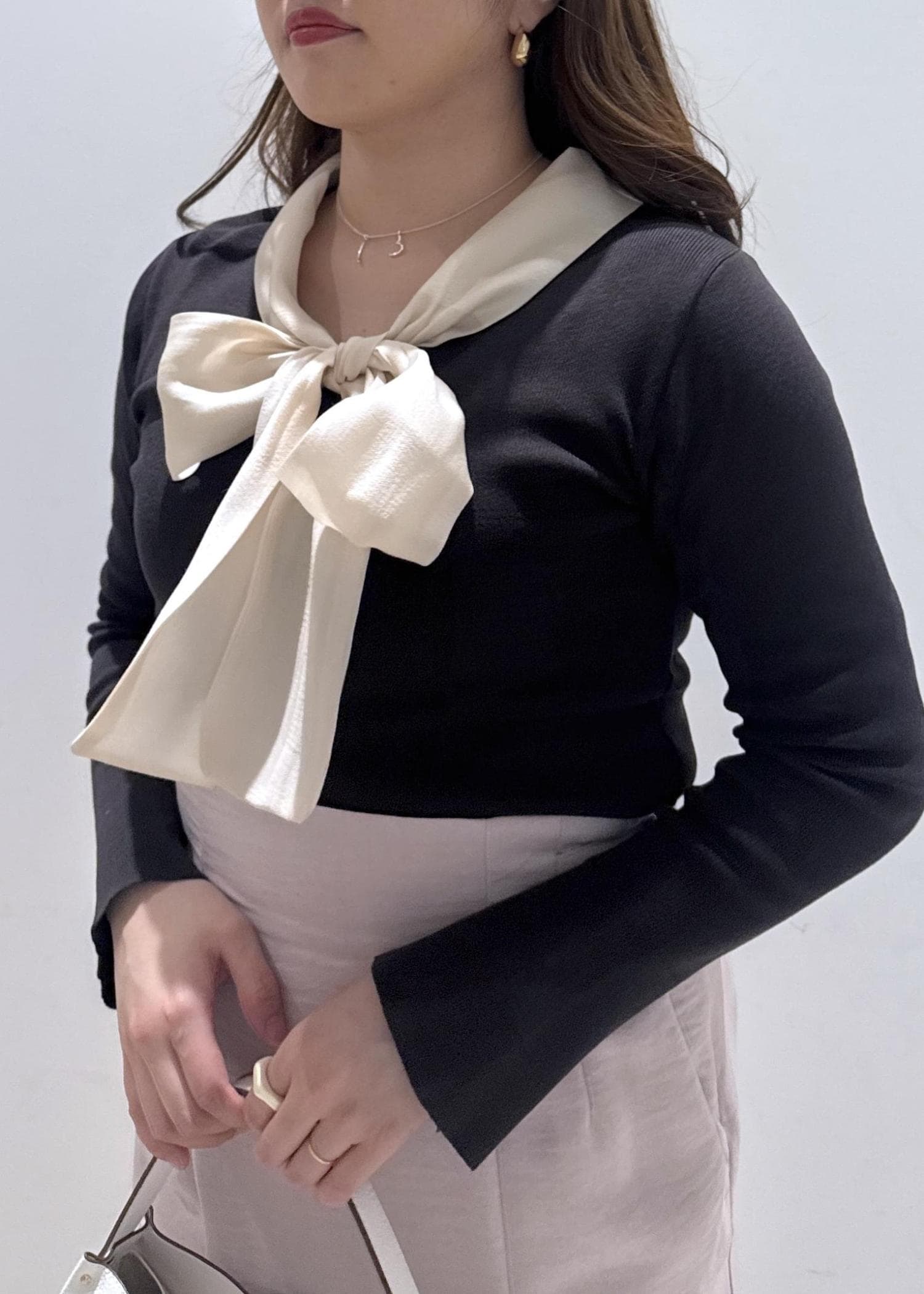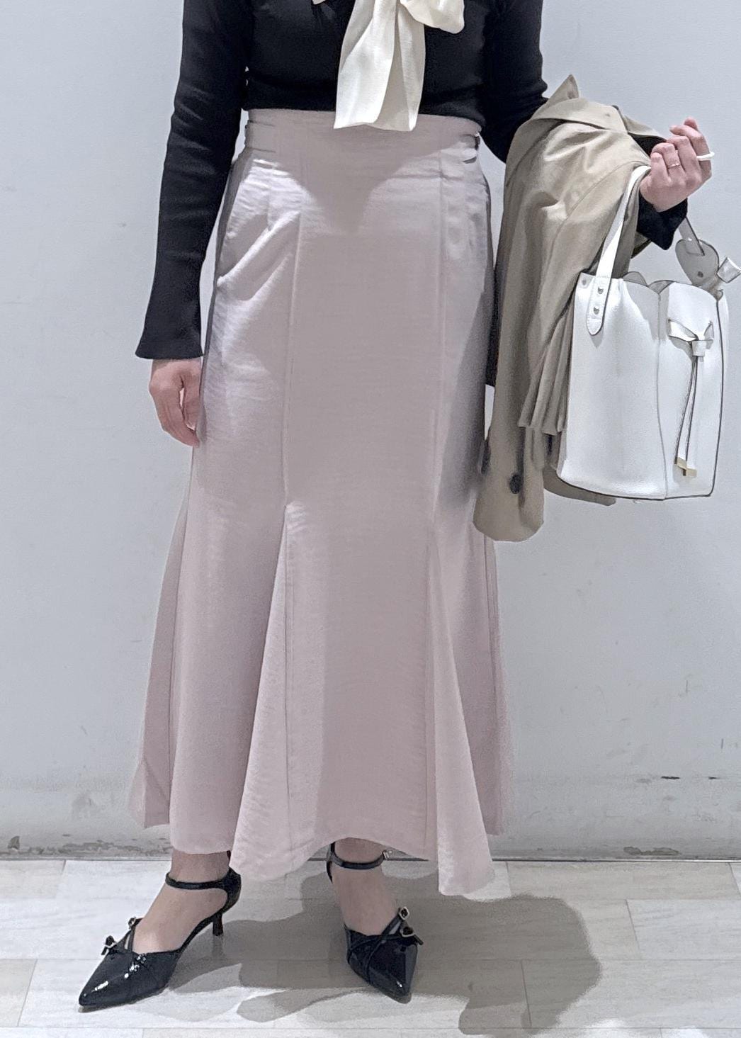 今回は新作で入荷しました、ボウタイ付きのリボンニットのトップスに、スカートと合わせて綺麗めなコーディネートにしてみました♪