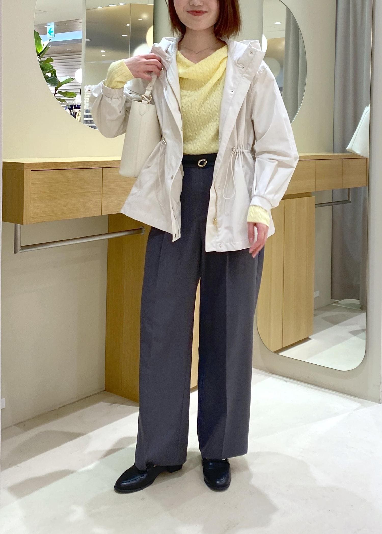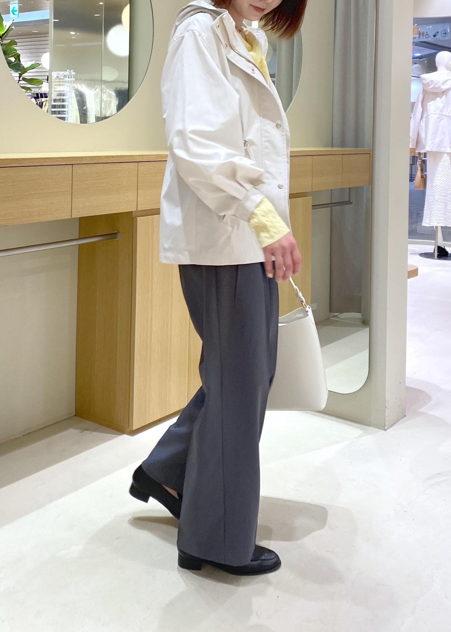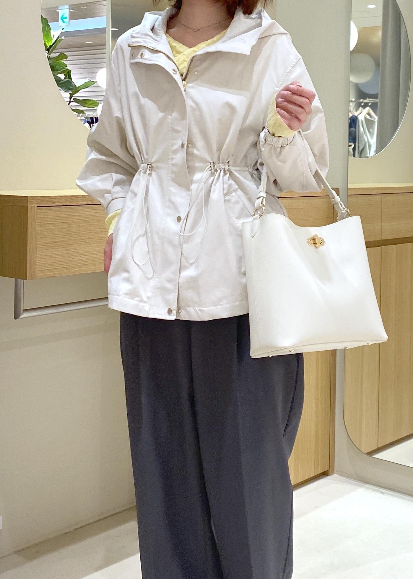 イエローで春らしさをプラスし、マウンテンパーカーでウエストマークしスッキリとした印象に◎