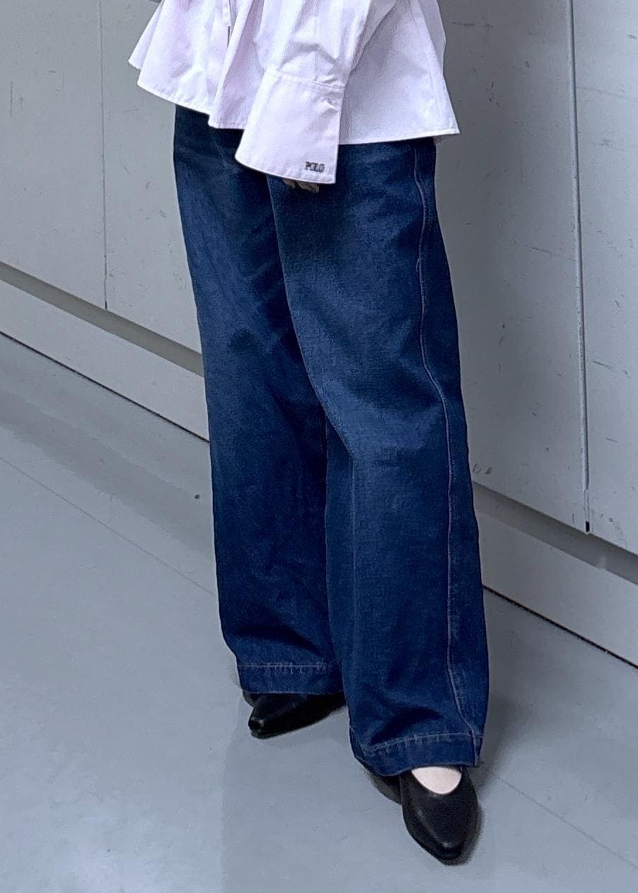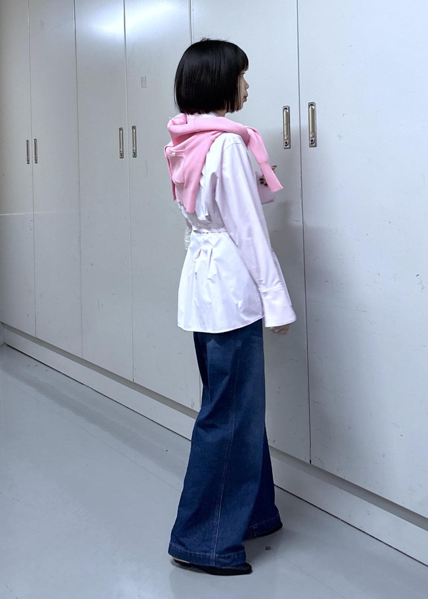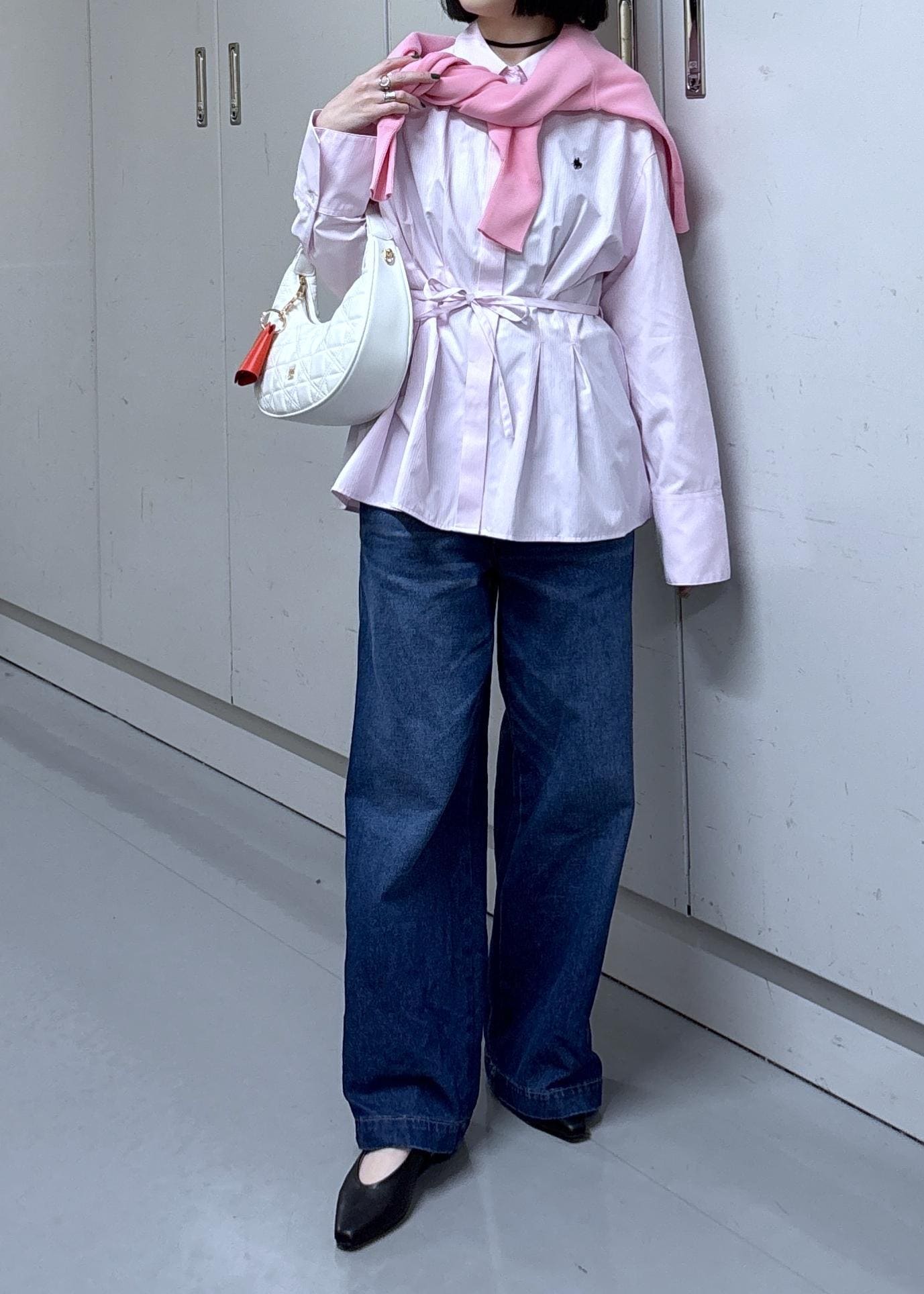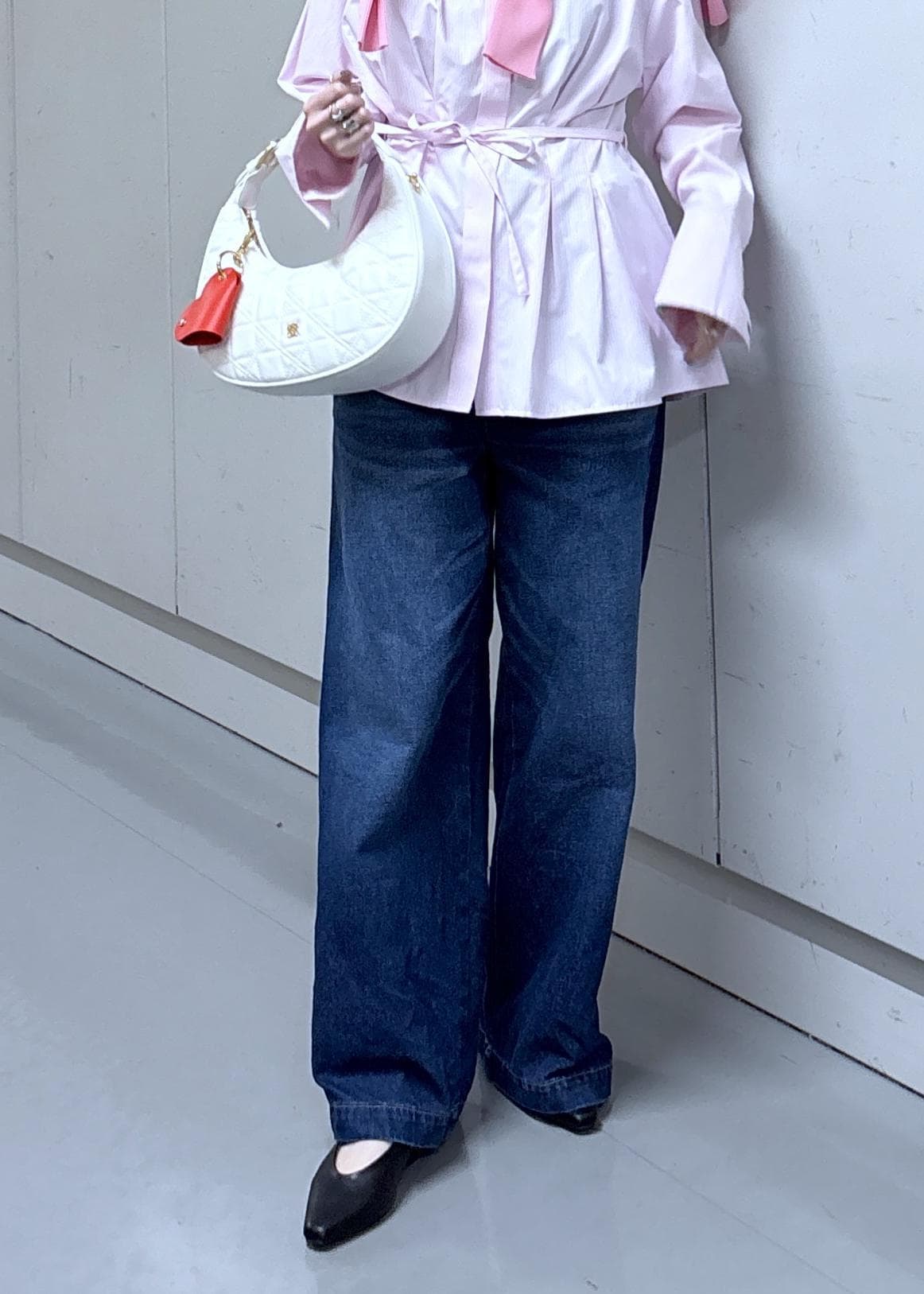 ウエストがスッキリ見えするので、ワイドシルエットのデニムがバランスよく合います◎