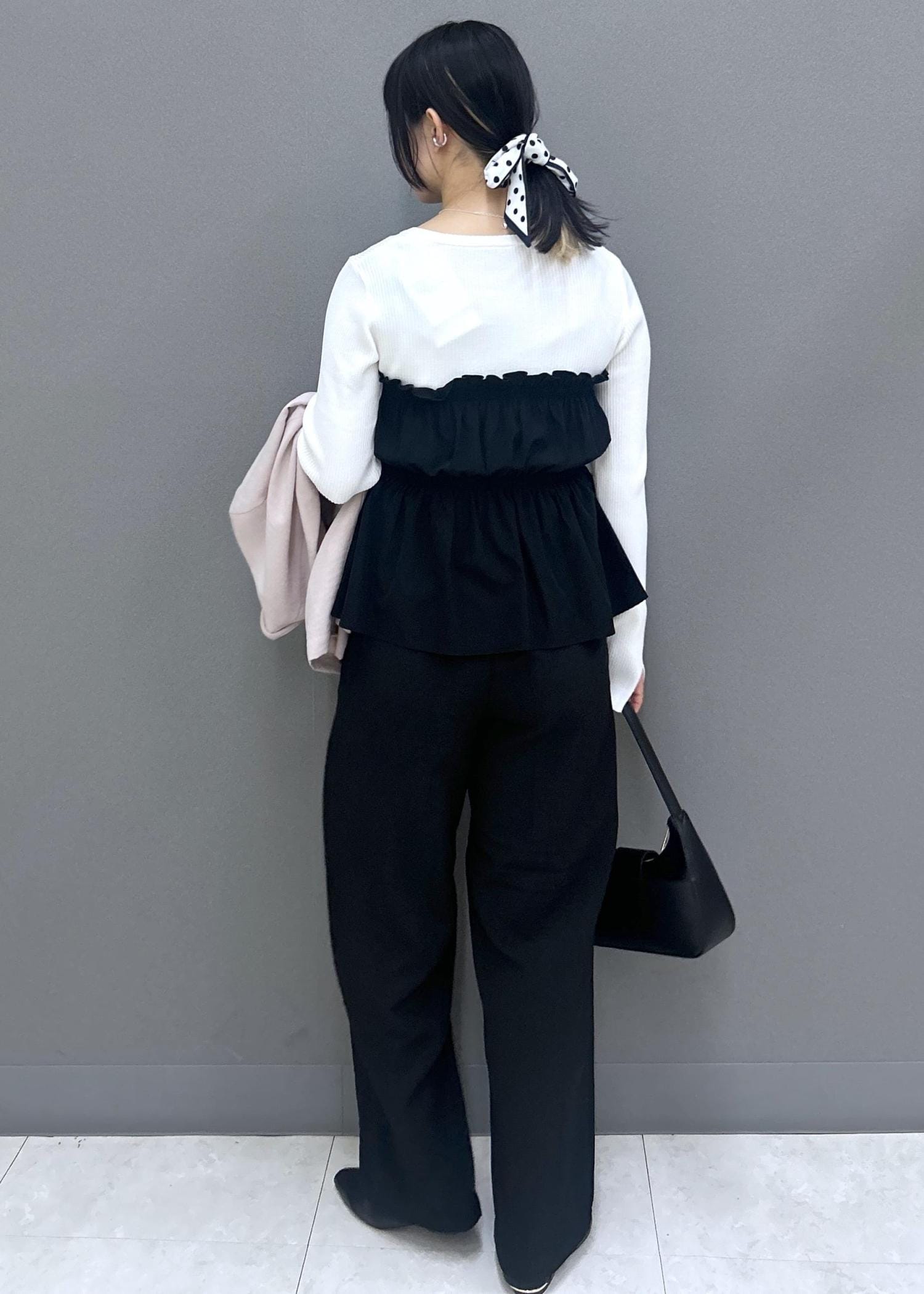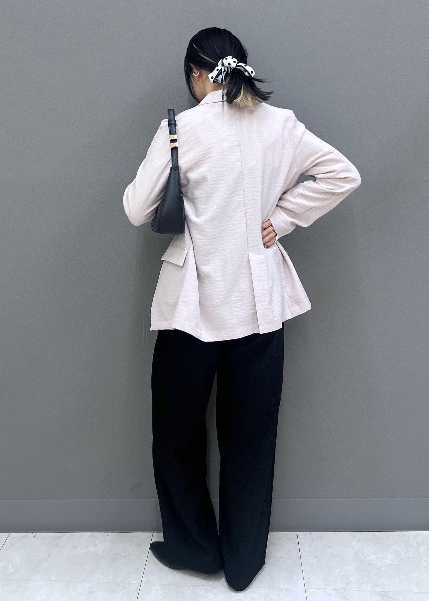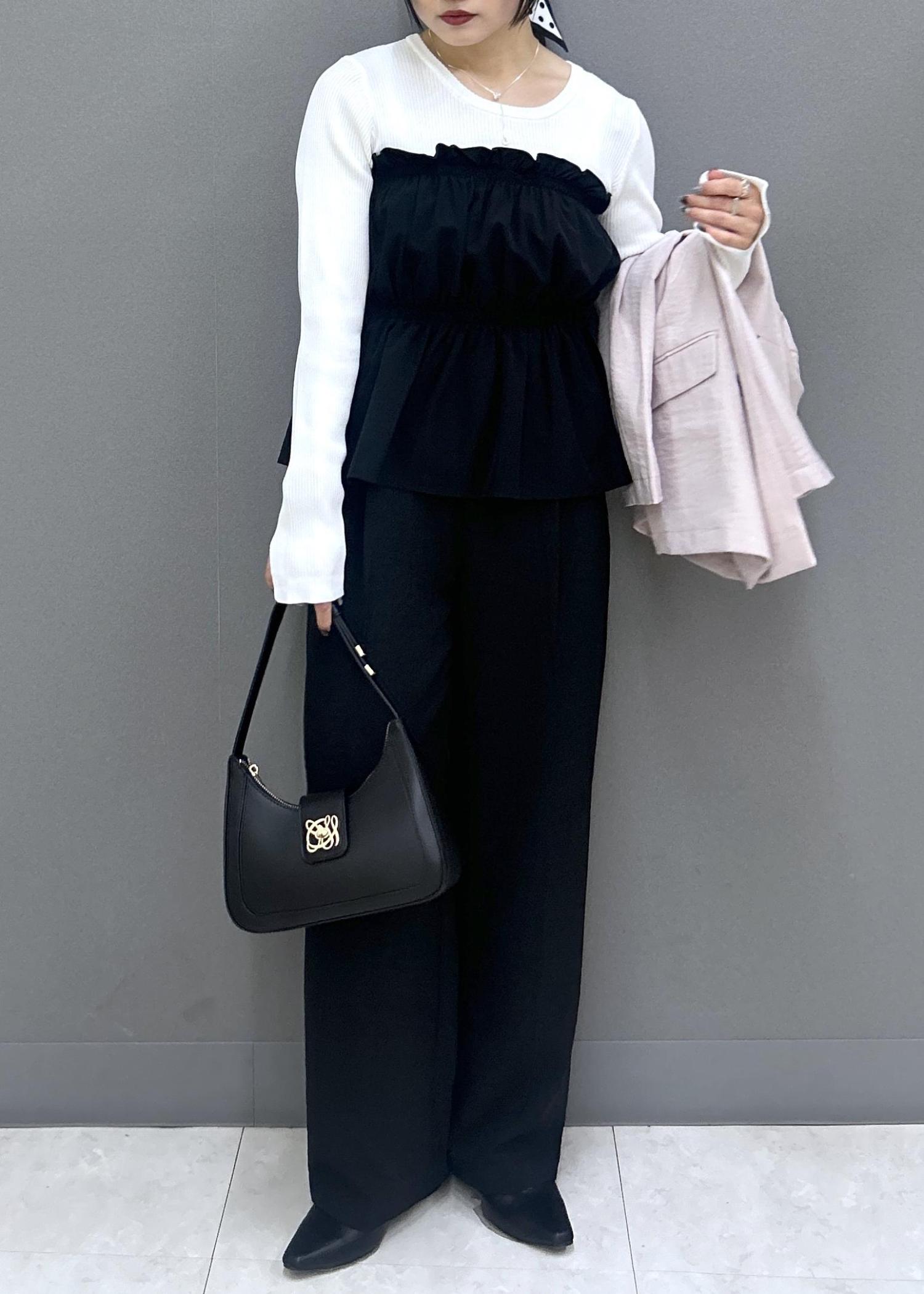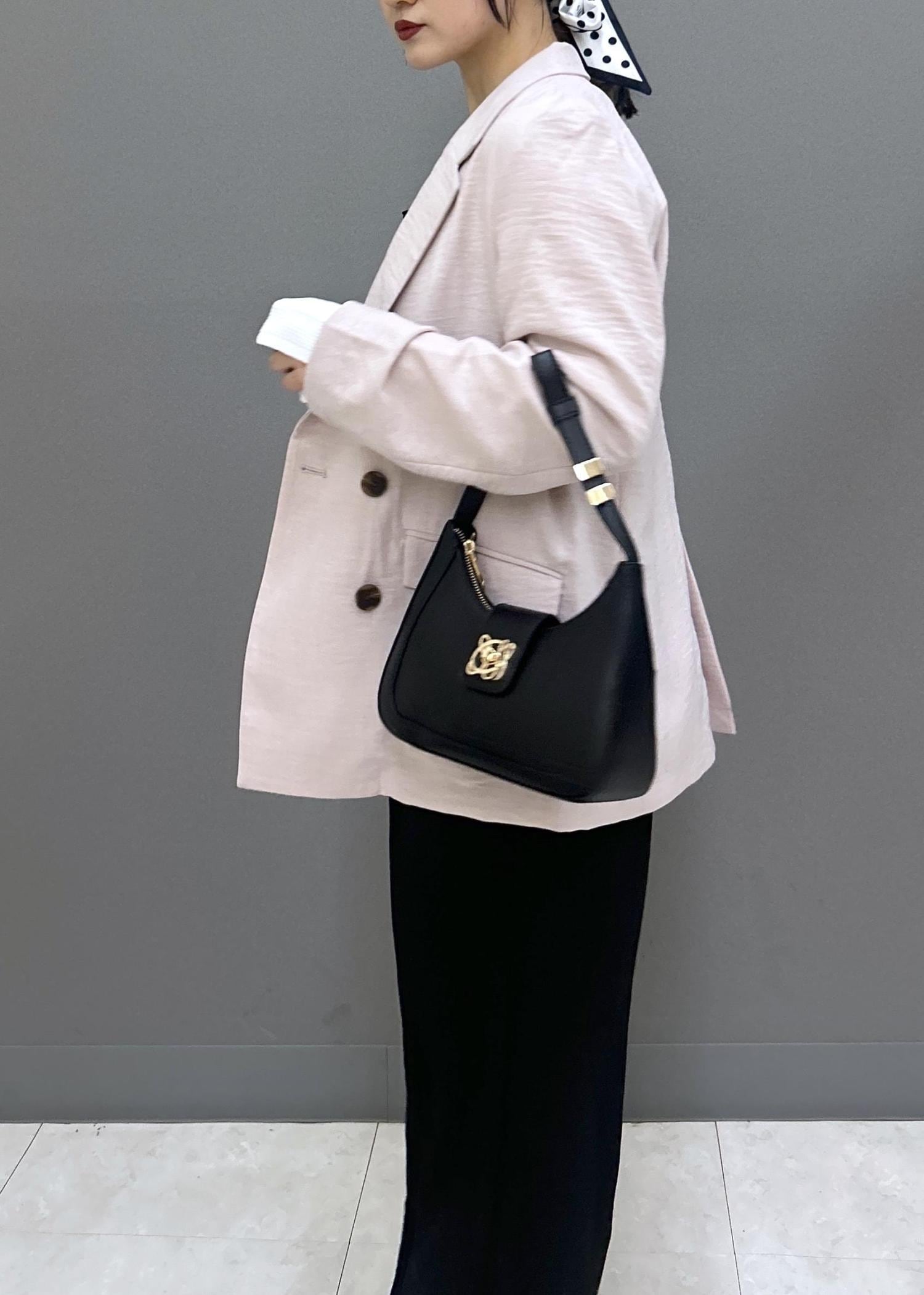 ピンクは柔らかく優しいカラーで、ブラックとあわせると春らしい華やかさをプラスしてくれます◎