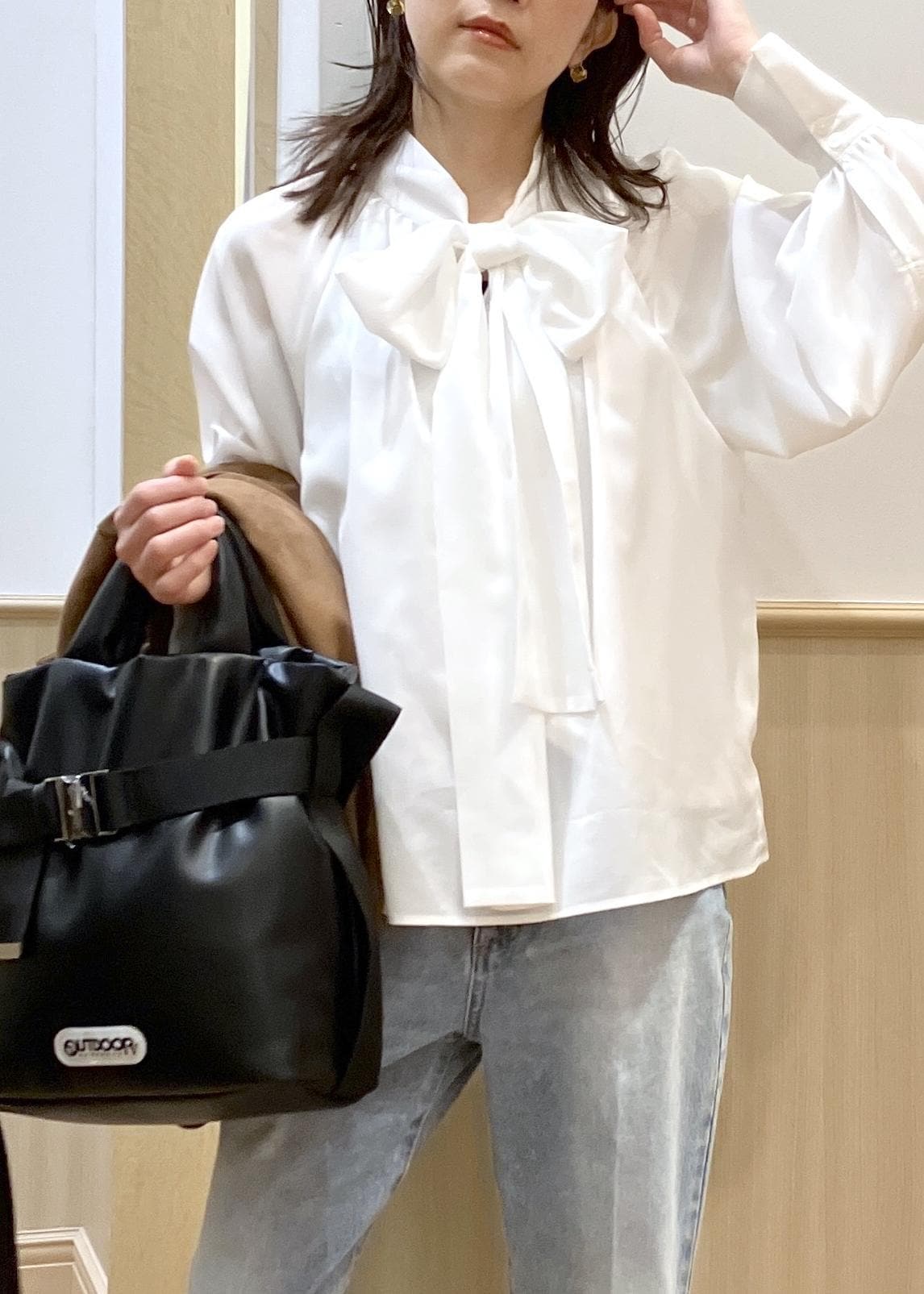 VIS前後2WAYボリュームボウタイブラウス/イージーケアオフホワイト / F¥5,929レビューふんわりと柔らかい素材感なので着心地◎ゆとりのあるスリーブデザインでややゆったりしたシルエットです。透け感が気になりにくいように裏地が身頃部分には縫い付けてあります。ボリューム感があるリボンは華やかさもあってジャケットとの組み合わせもバランス良いです。