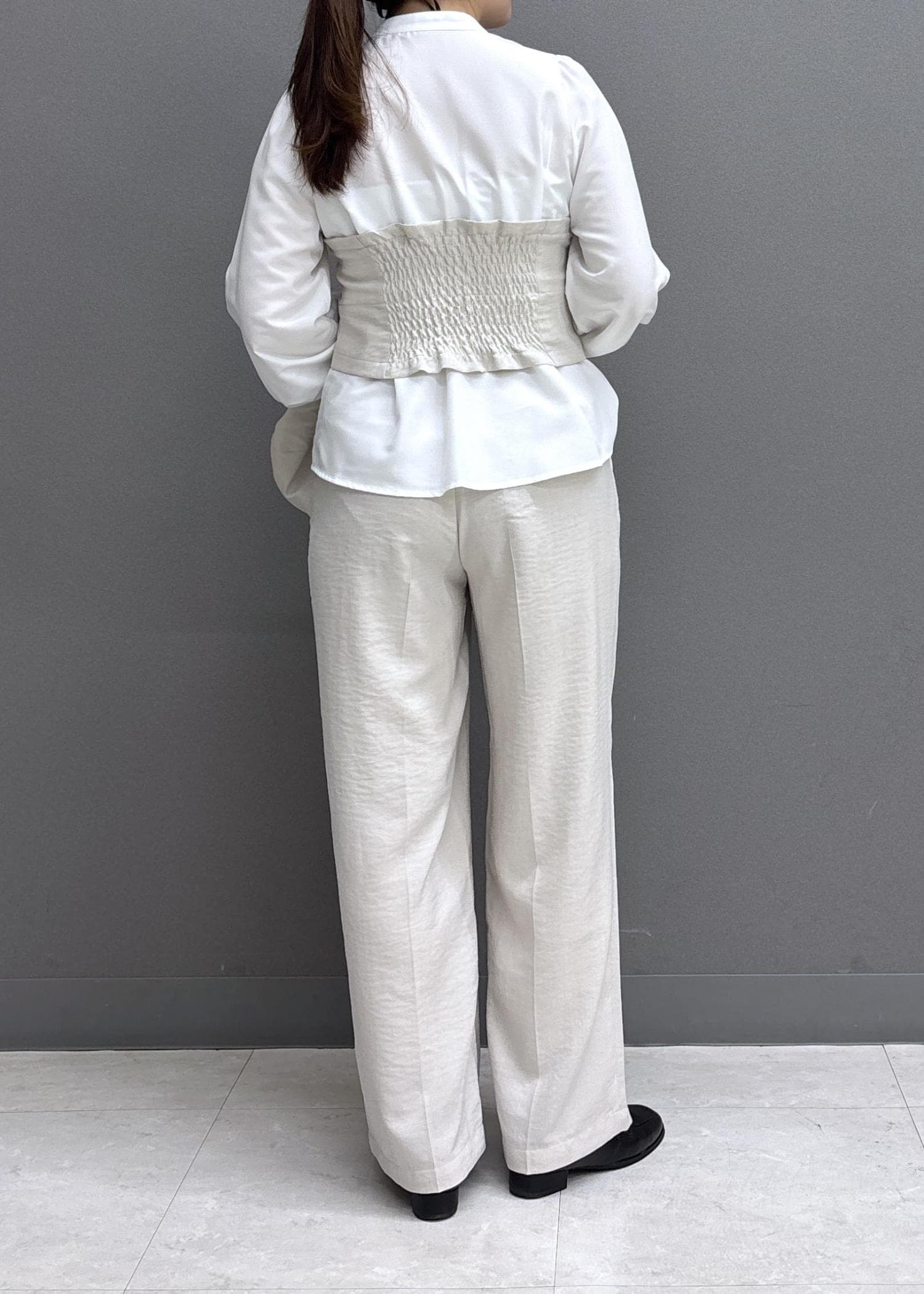 ヒップまわりから太ももにかけて、程よくゆとりがあるので、体型を拾いにくいのも嬉しいポイントです◎ -