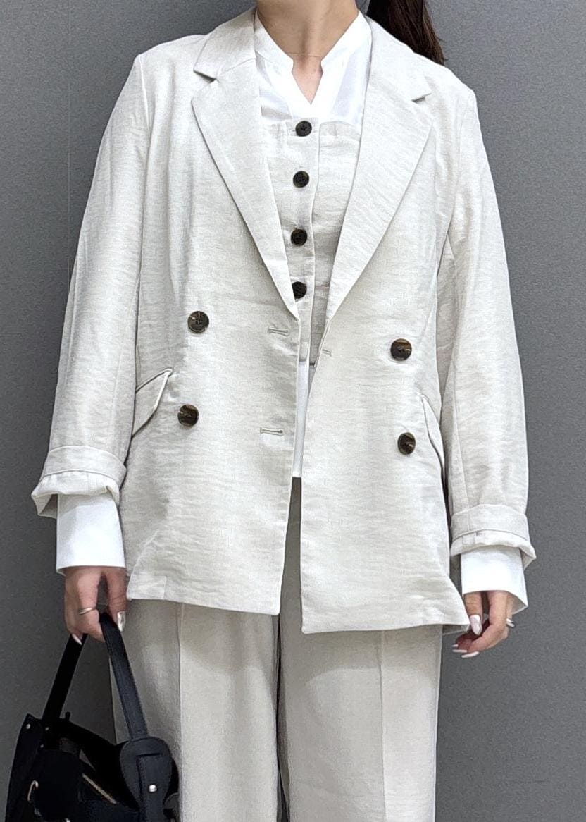 NEW!VIS美easyリネンライクテーラードジャケット/イージーケア・接触冷感・セットアップ対応キナリ / M¥7,909レビュー160㎝ / Mサイズ着用。