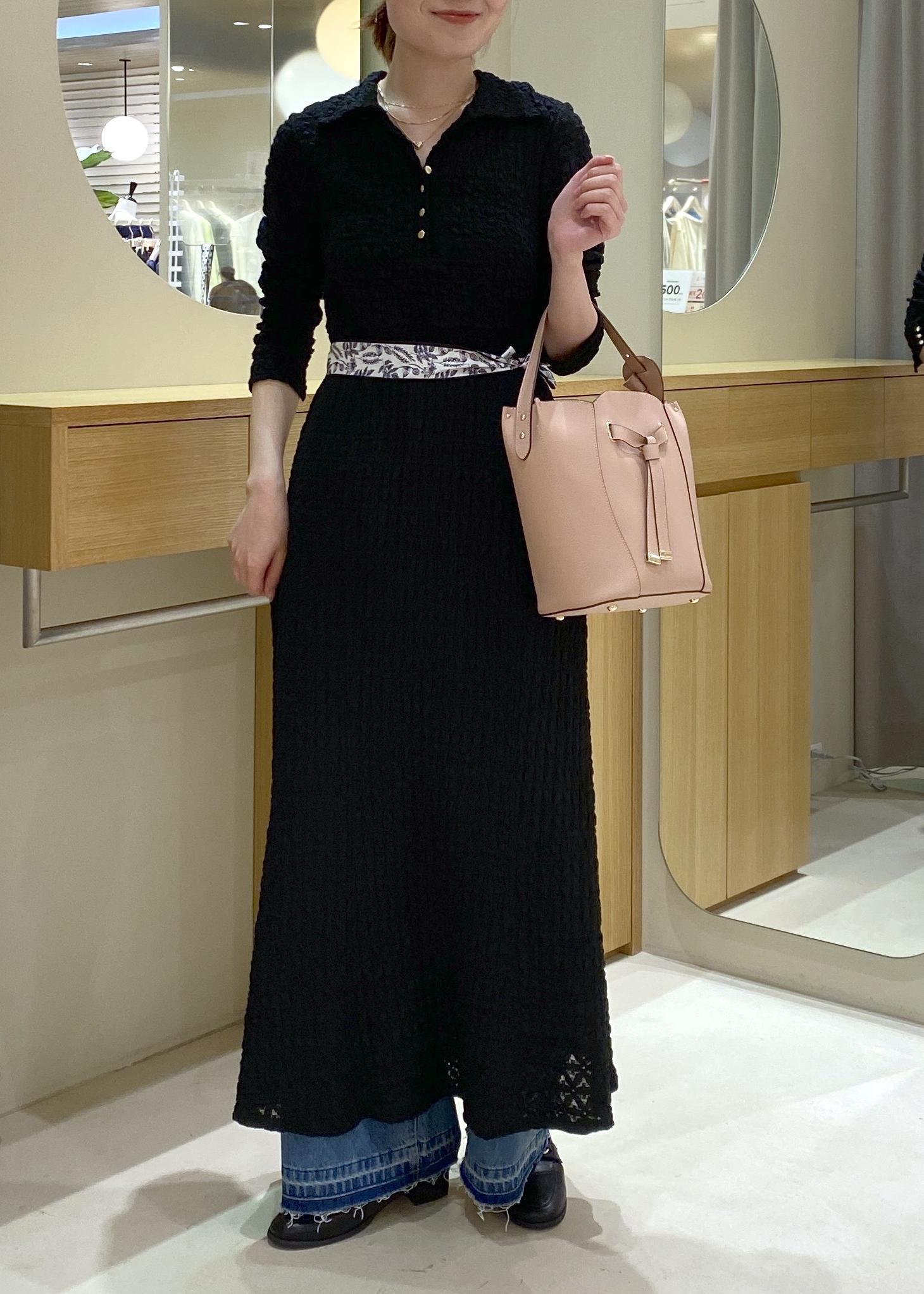 VIS膨れジャガードカットソーワンピースブラック / F¥8,899レビュー襟付きのジャガードワンピースです!
