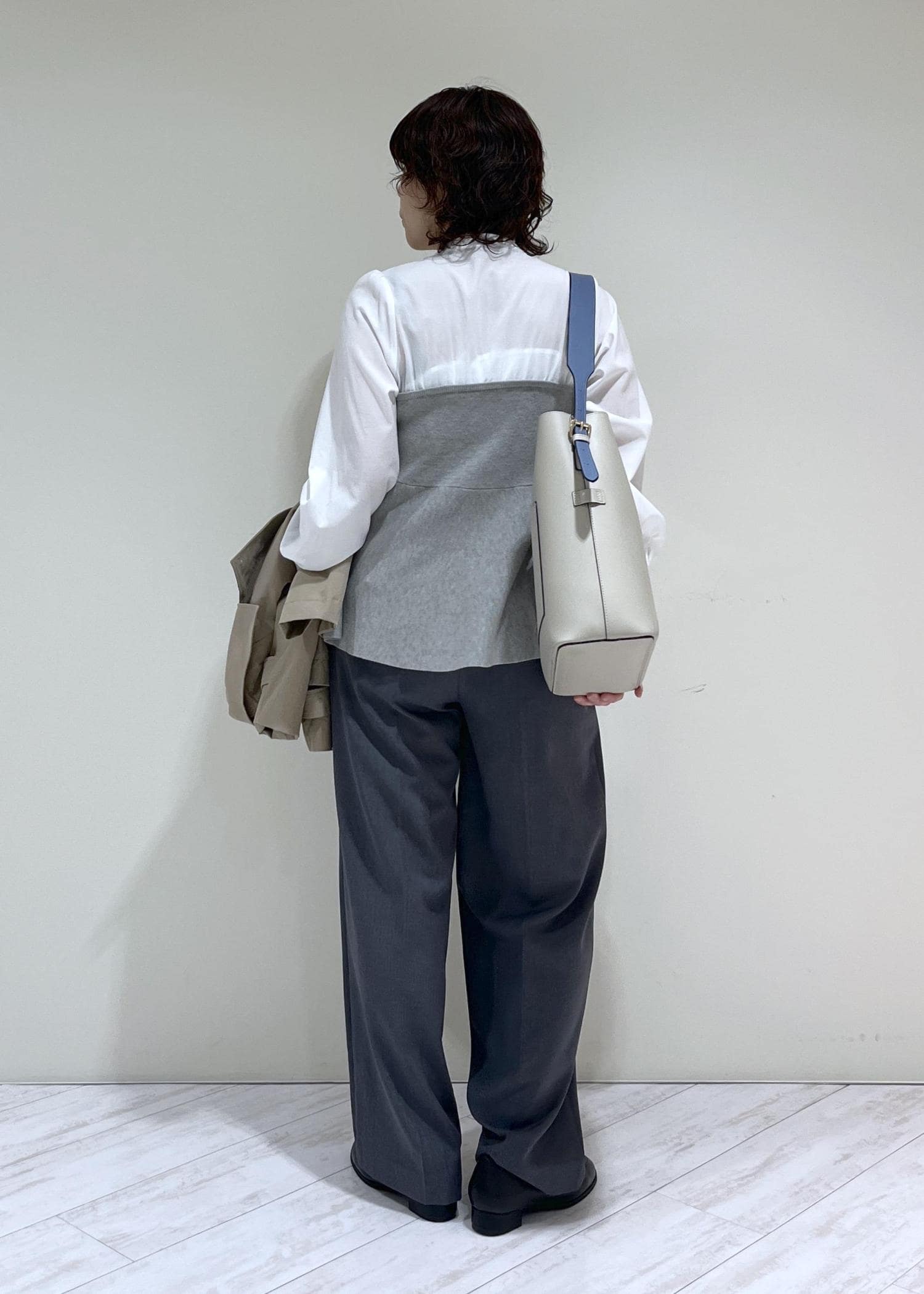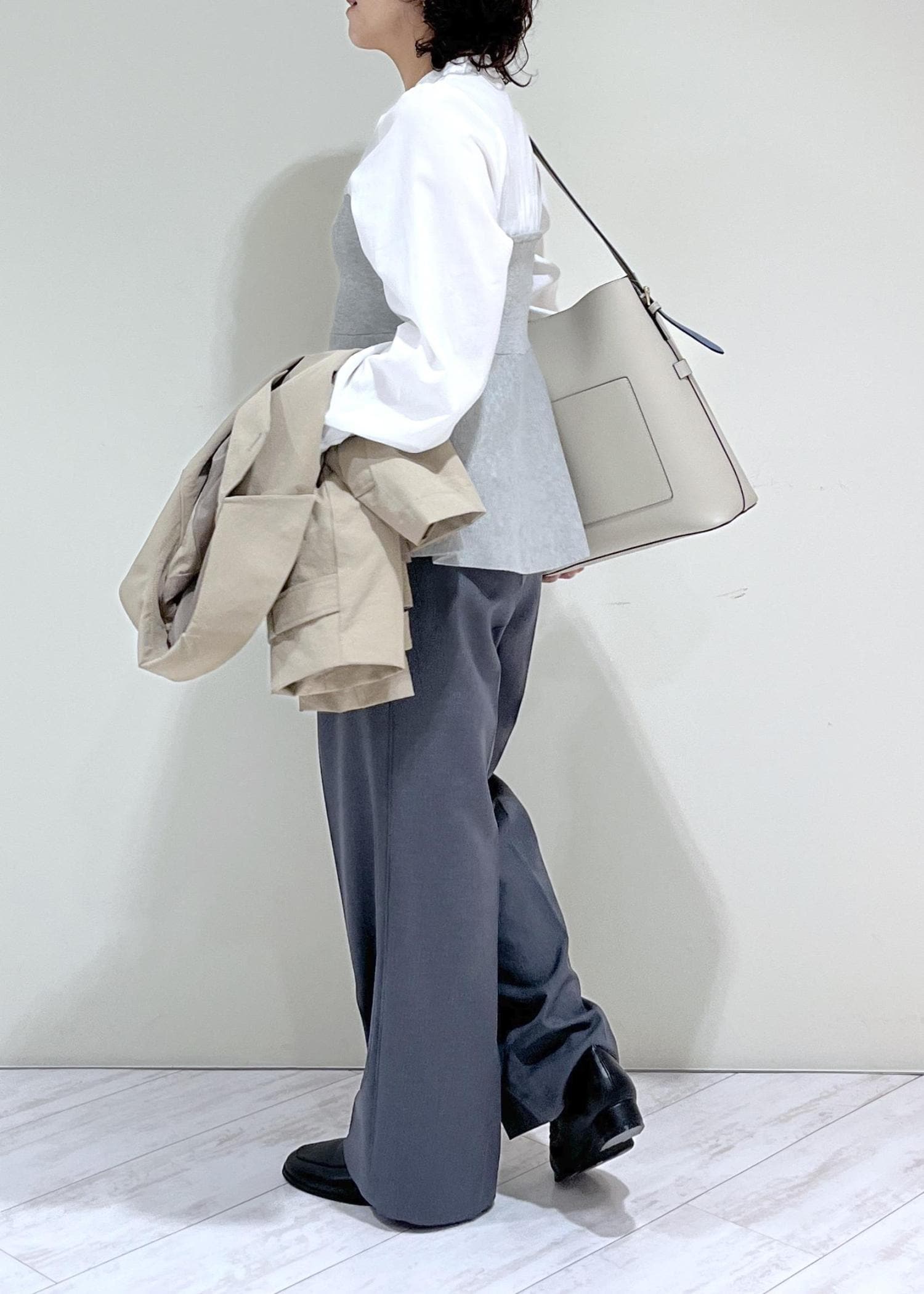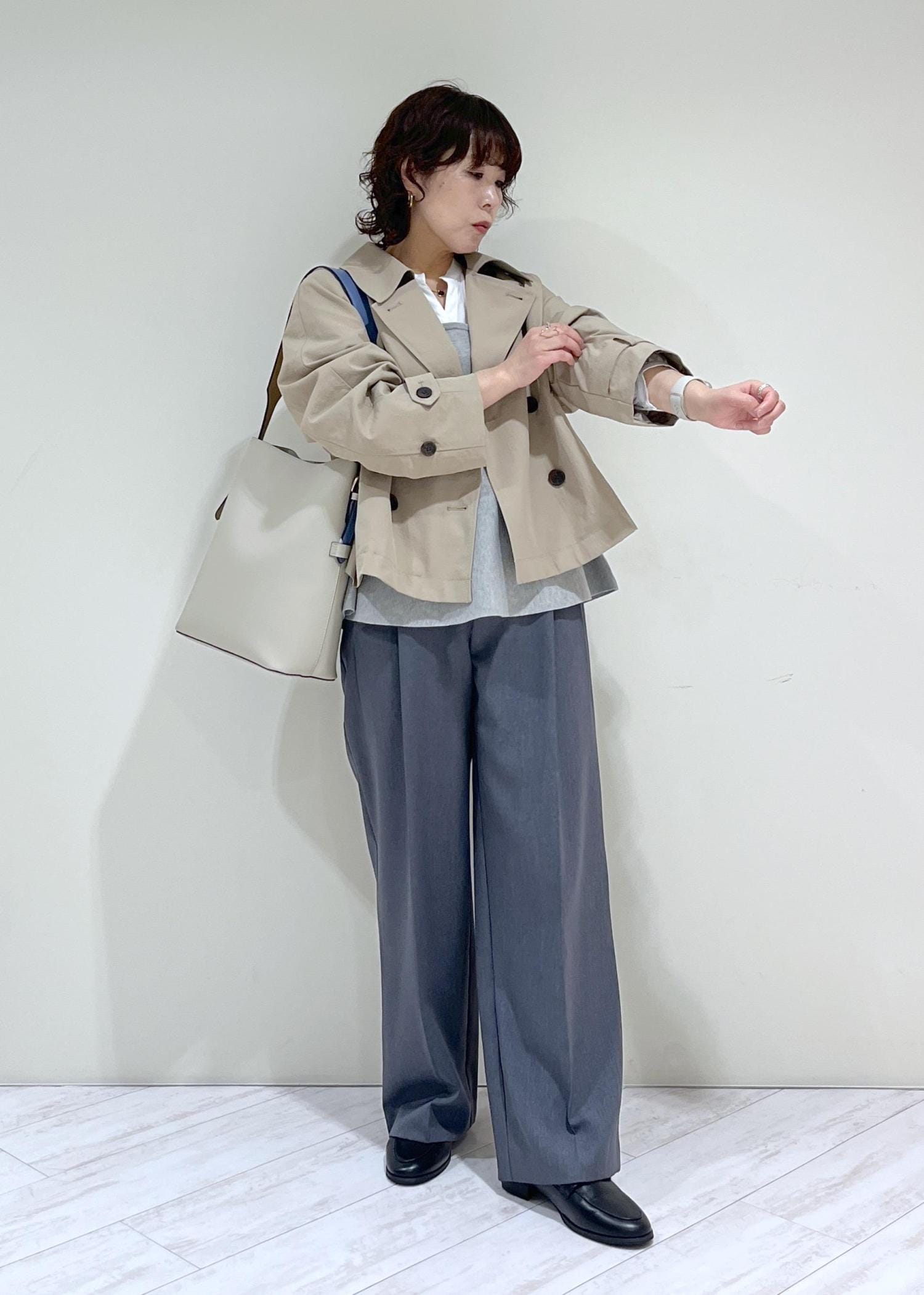 ショートトレンチを合わせて春の通勤スタイルの完成です!