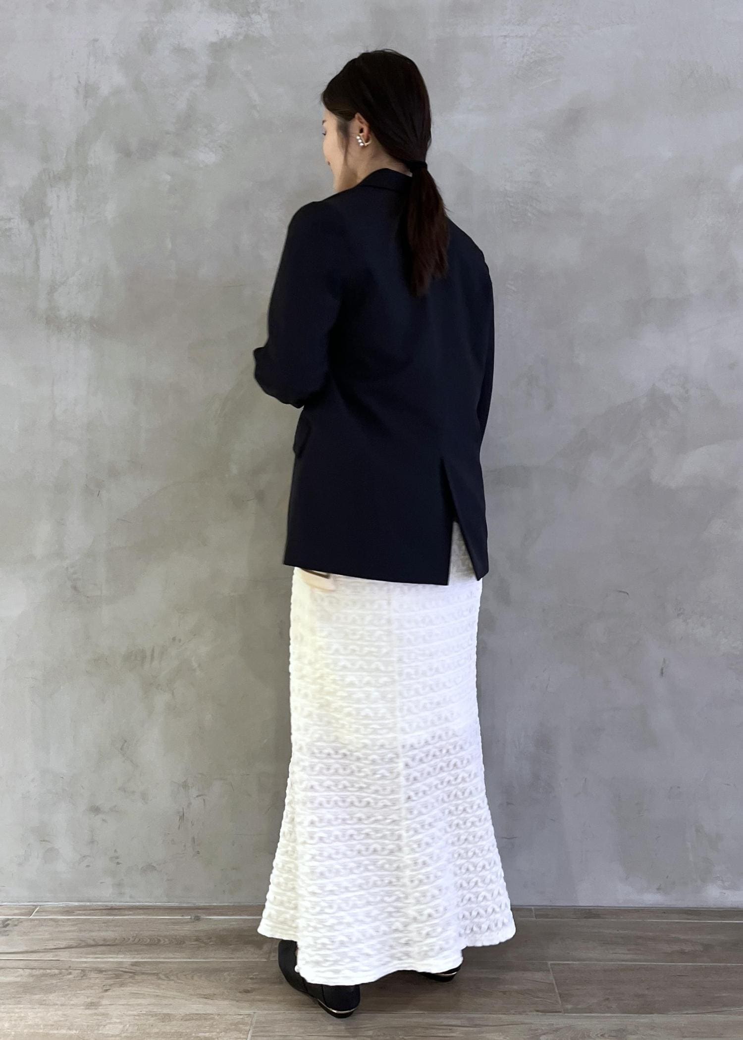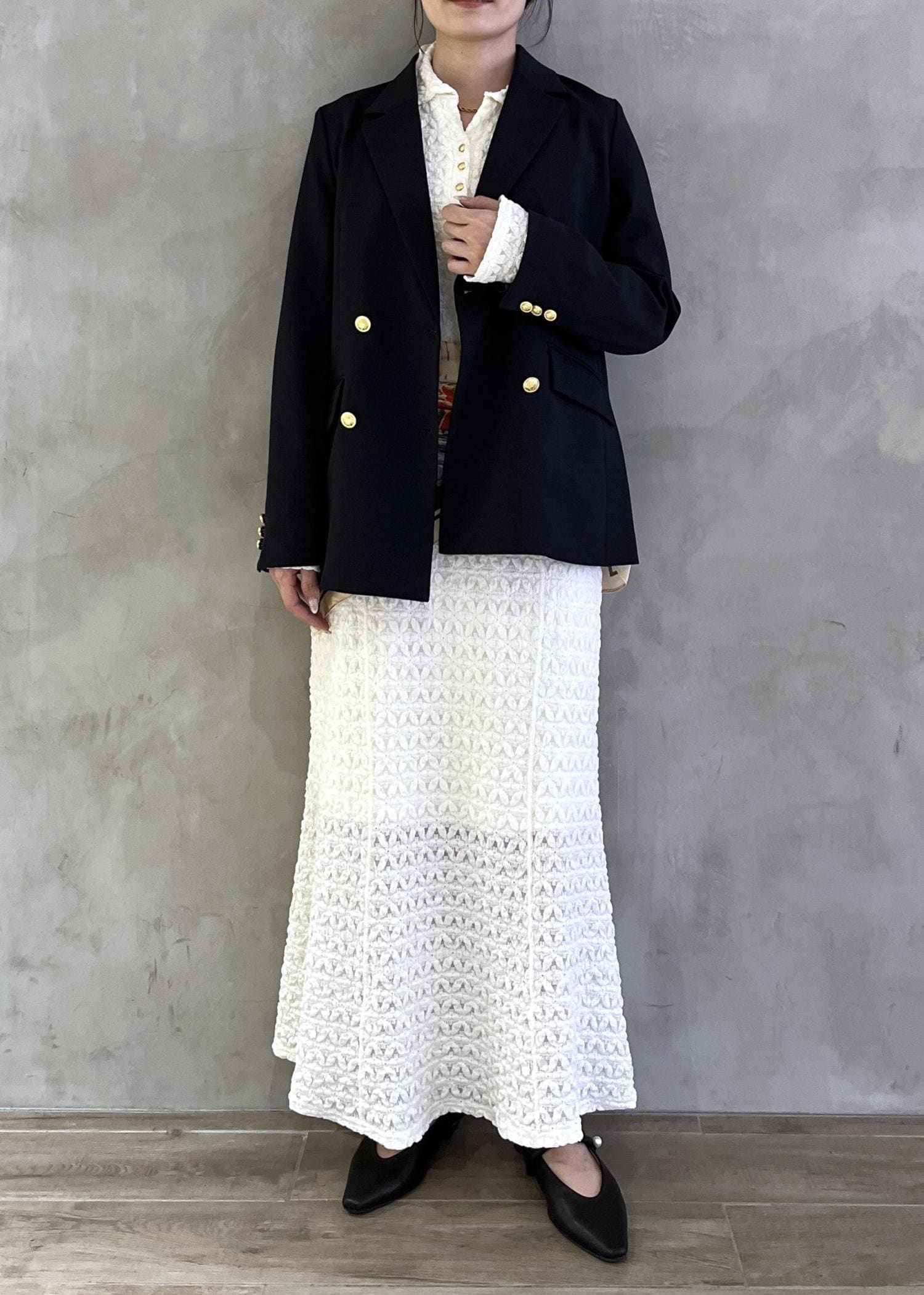 足元は敢えてフラットシューズで抜け感を出しました。
