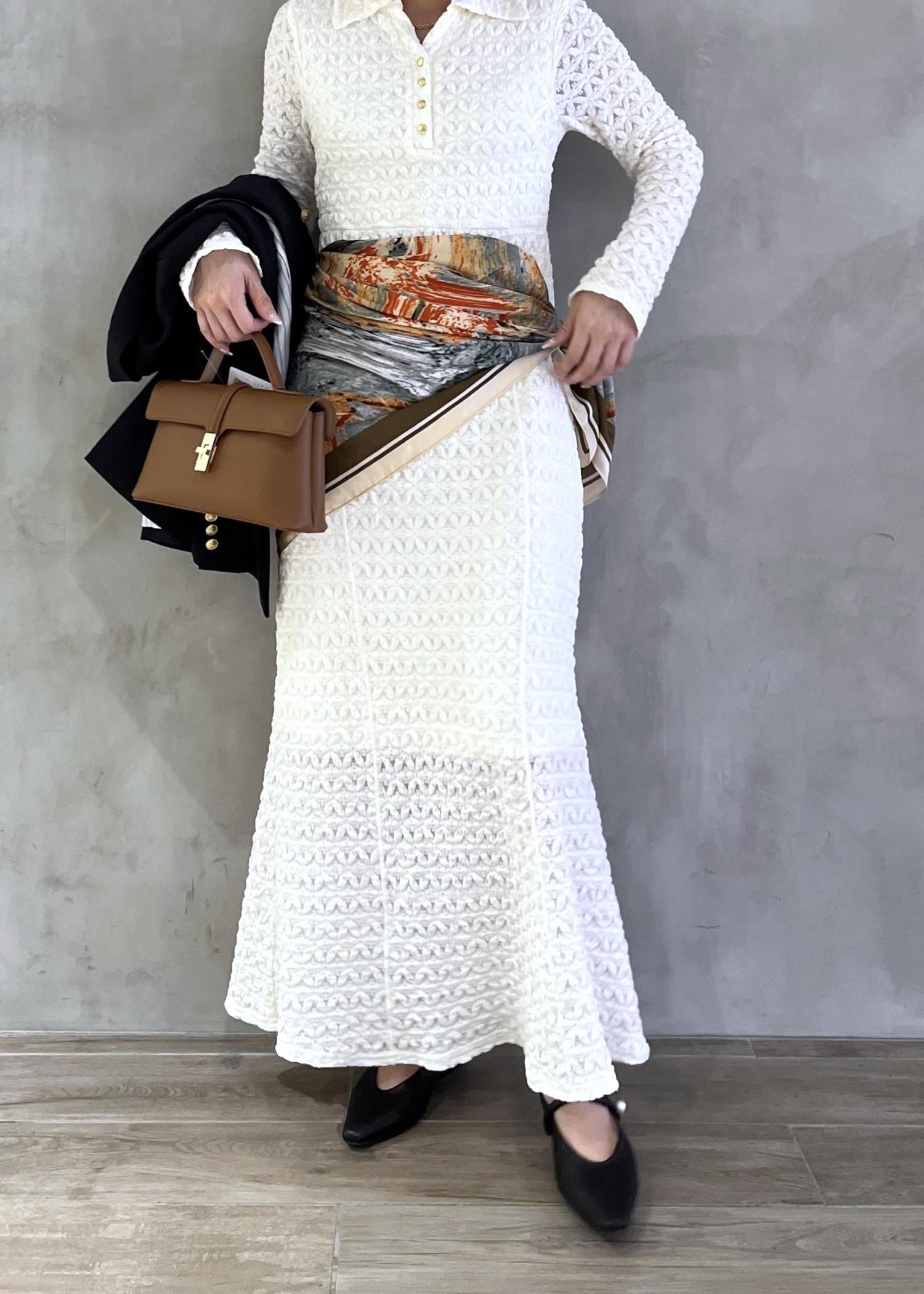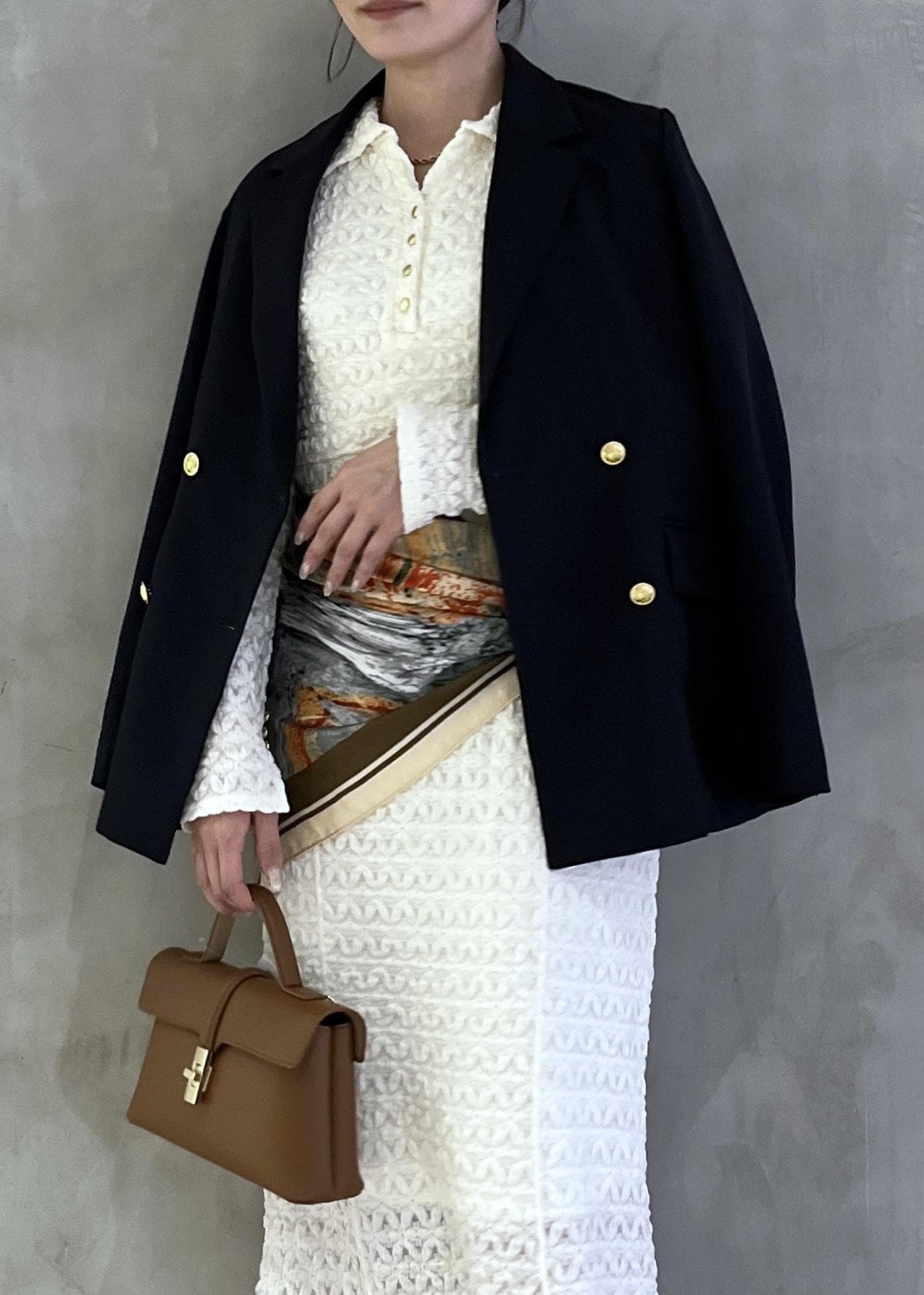 スカーフを腰巻きしてトレンド感をプラス⭐︎