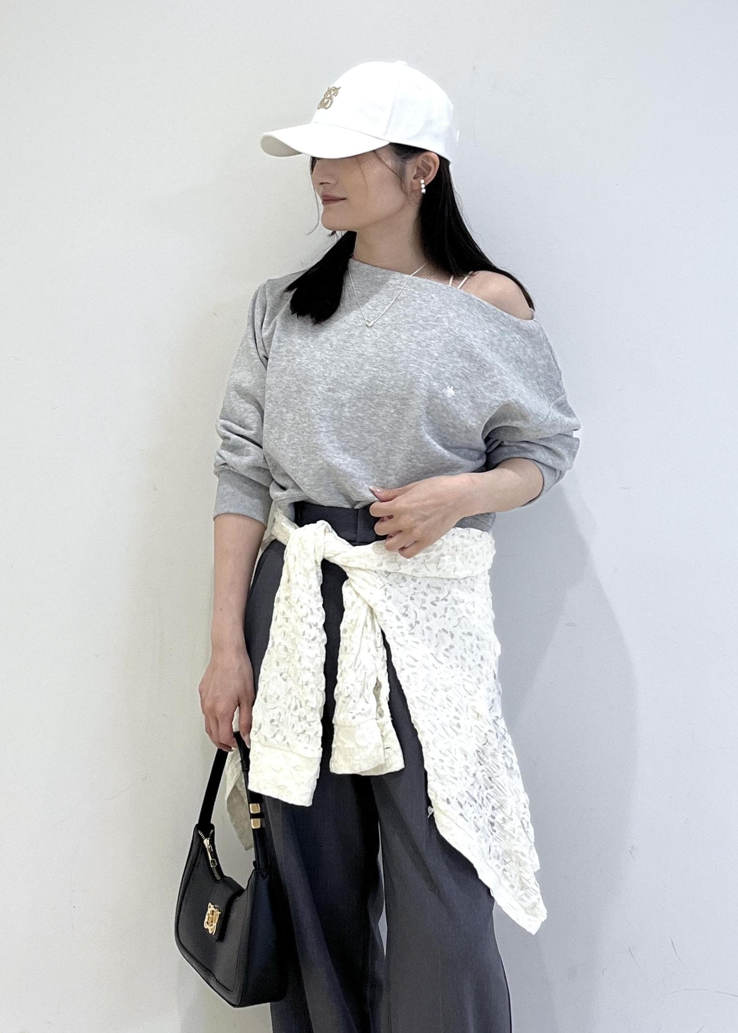 片方の肩を出してワンショルトップスとして着るのもオススメです。 -