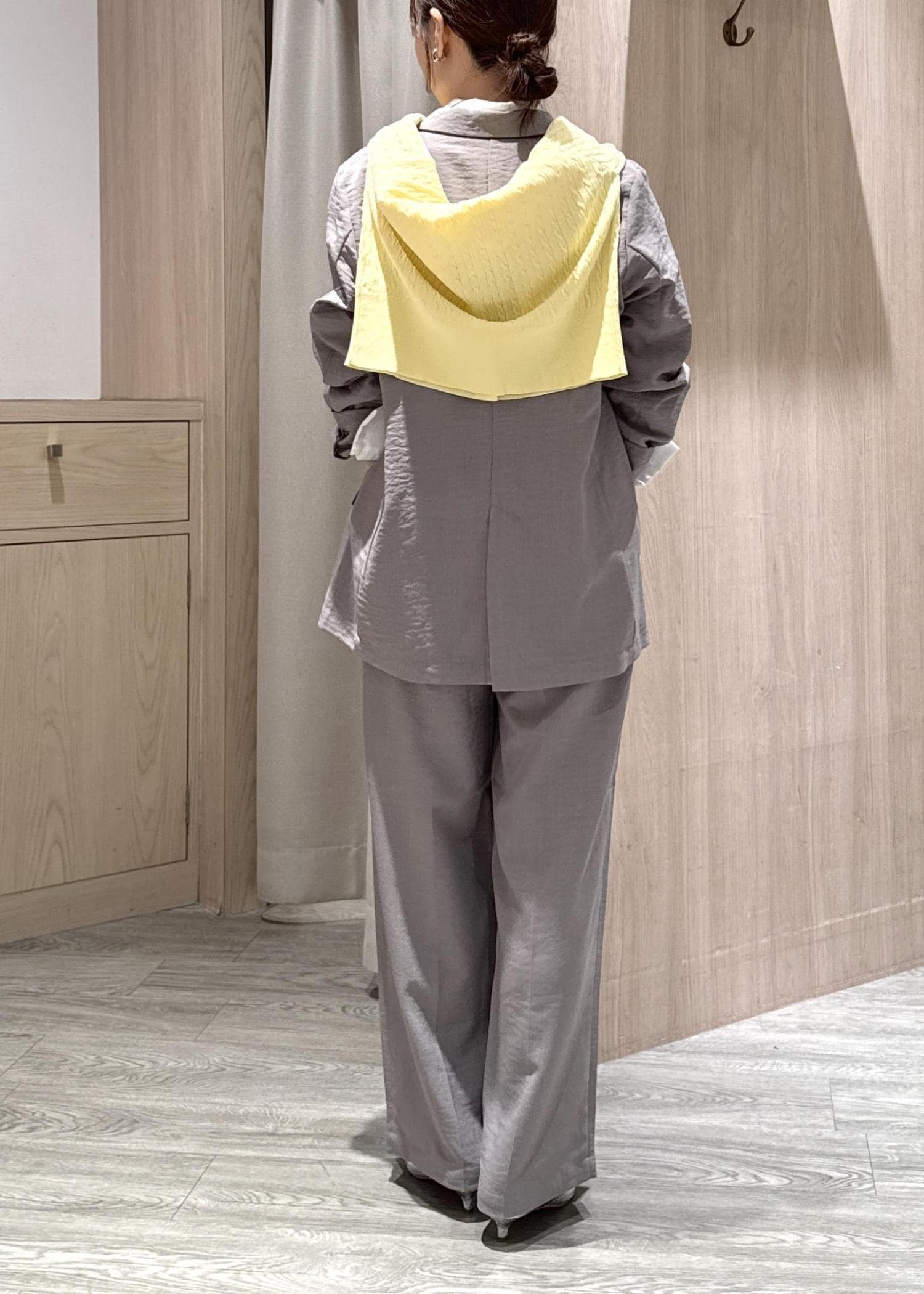 前シーズンのコンフォートパンツより少しゆとりを感じました。脚のラインも凄くキレイに見えて、キレイめにもカジュアルにも合う、神パンツです!ジャケットと同様接触冷感素材なので、夏もサラッと着用いただけます!! -
