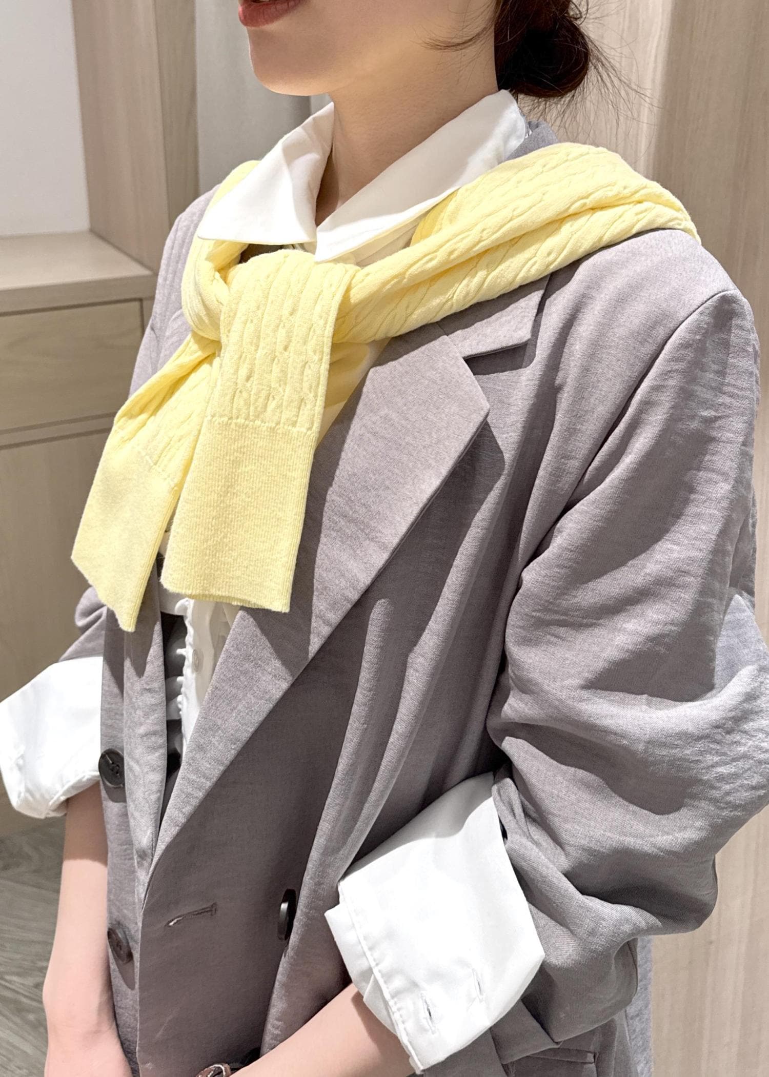 薄めのケーブルカーディガンなので、春だけでなく夏の冷房対策としても使えそう!