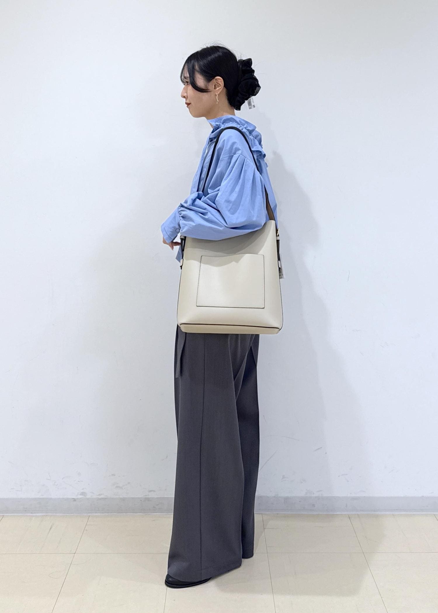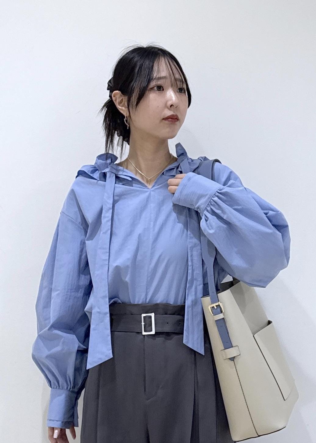 ブルーで爽やかさをプラスしたオフィスコーデです