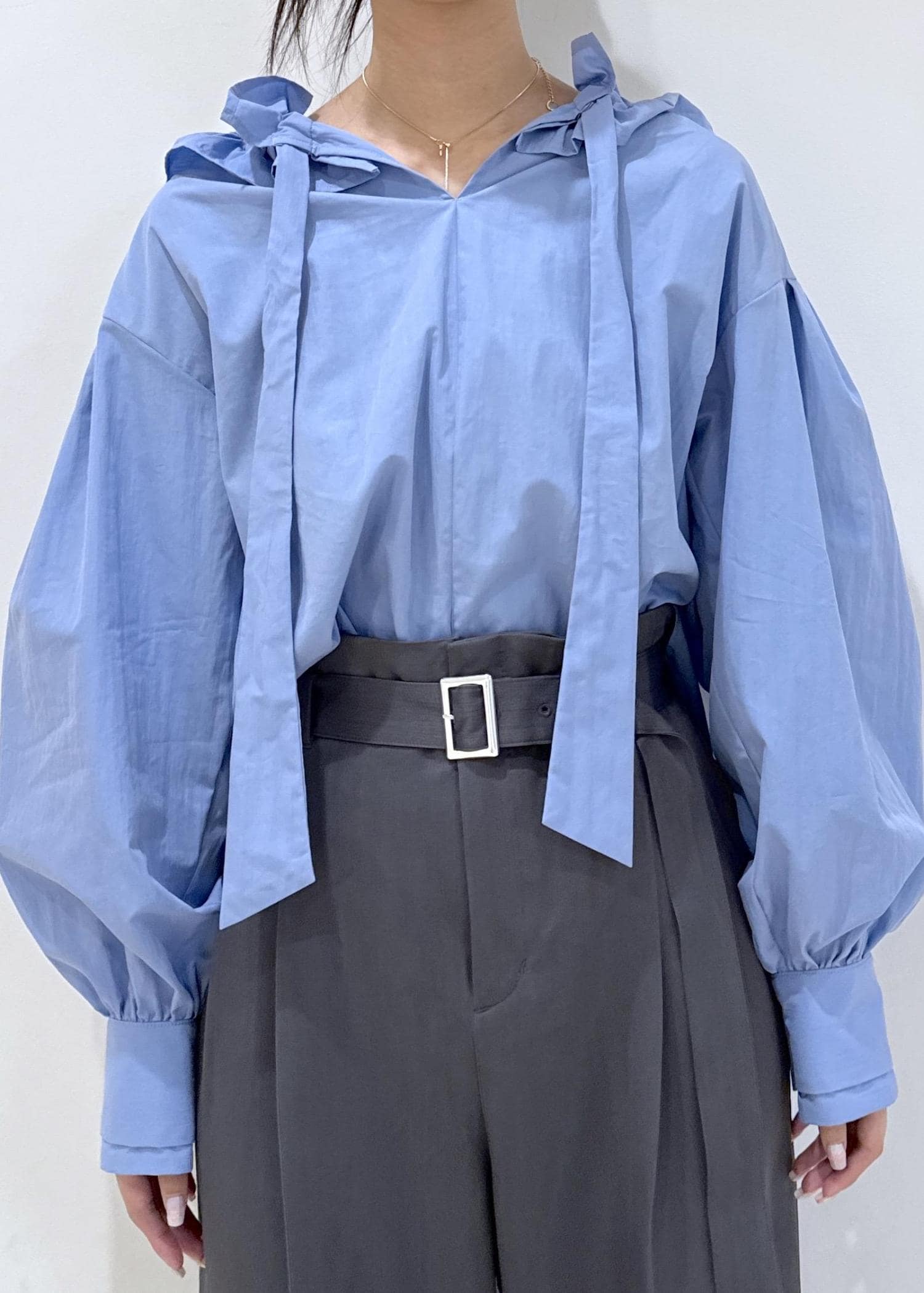 VISフリルネックブラウスサックス / F¥6,589レビュー少し固めのナイロン生地です。