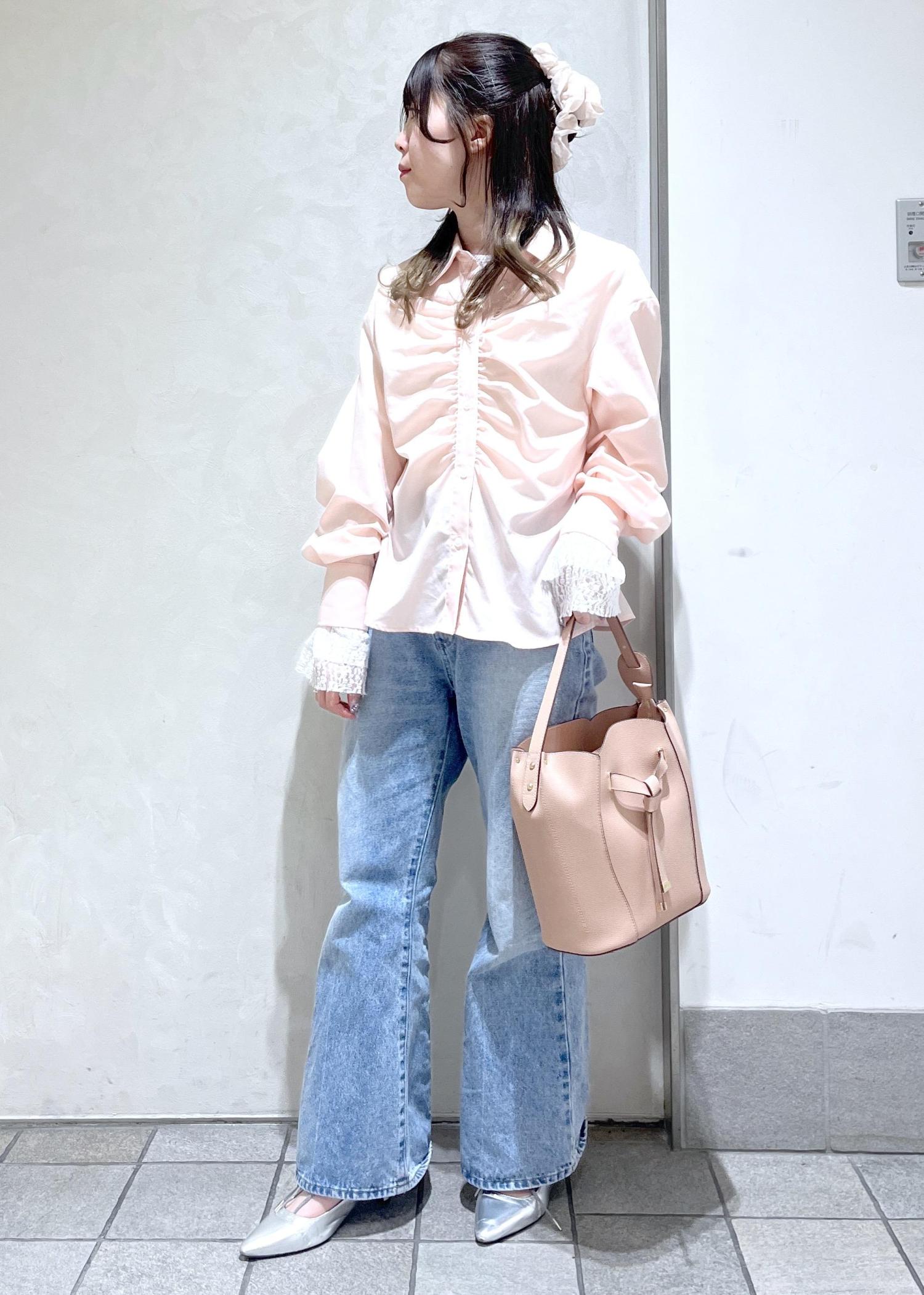 ピンク多めでもデニムと足元のシルバーのパンプスで大人っぽくなるようにしました☺︎