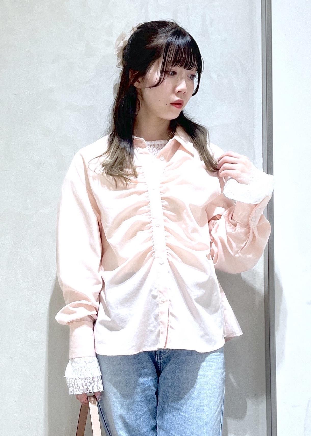 VISフロントギャザーシャツピンク系 / F¥4,391レビュー胸元のシャーリングのデザインがおしゃれなシャツで、色味もコーラルピンクで春らしい1枚です!