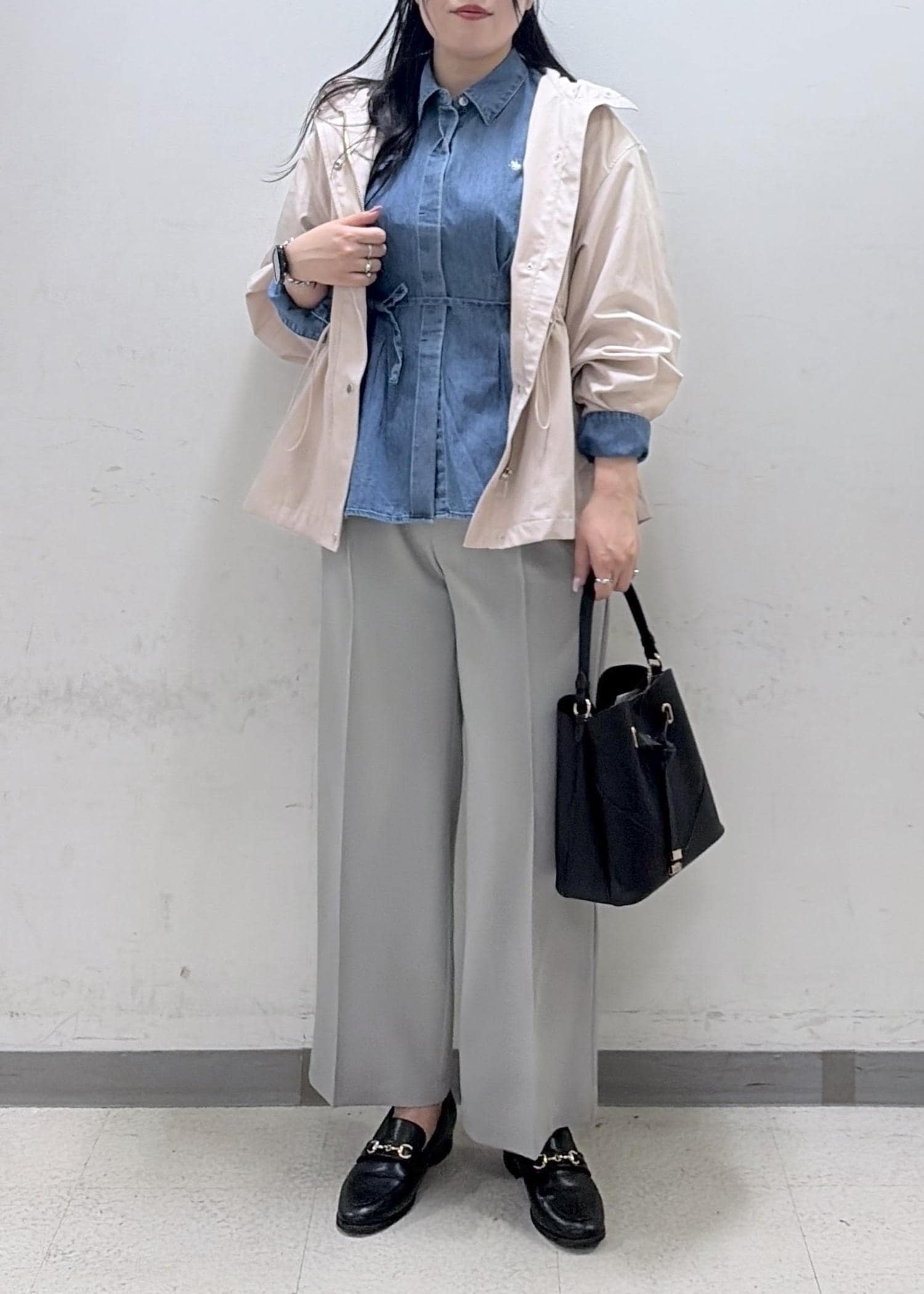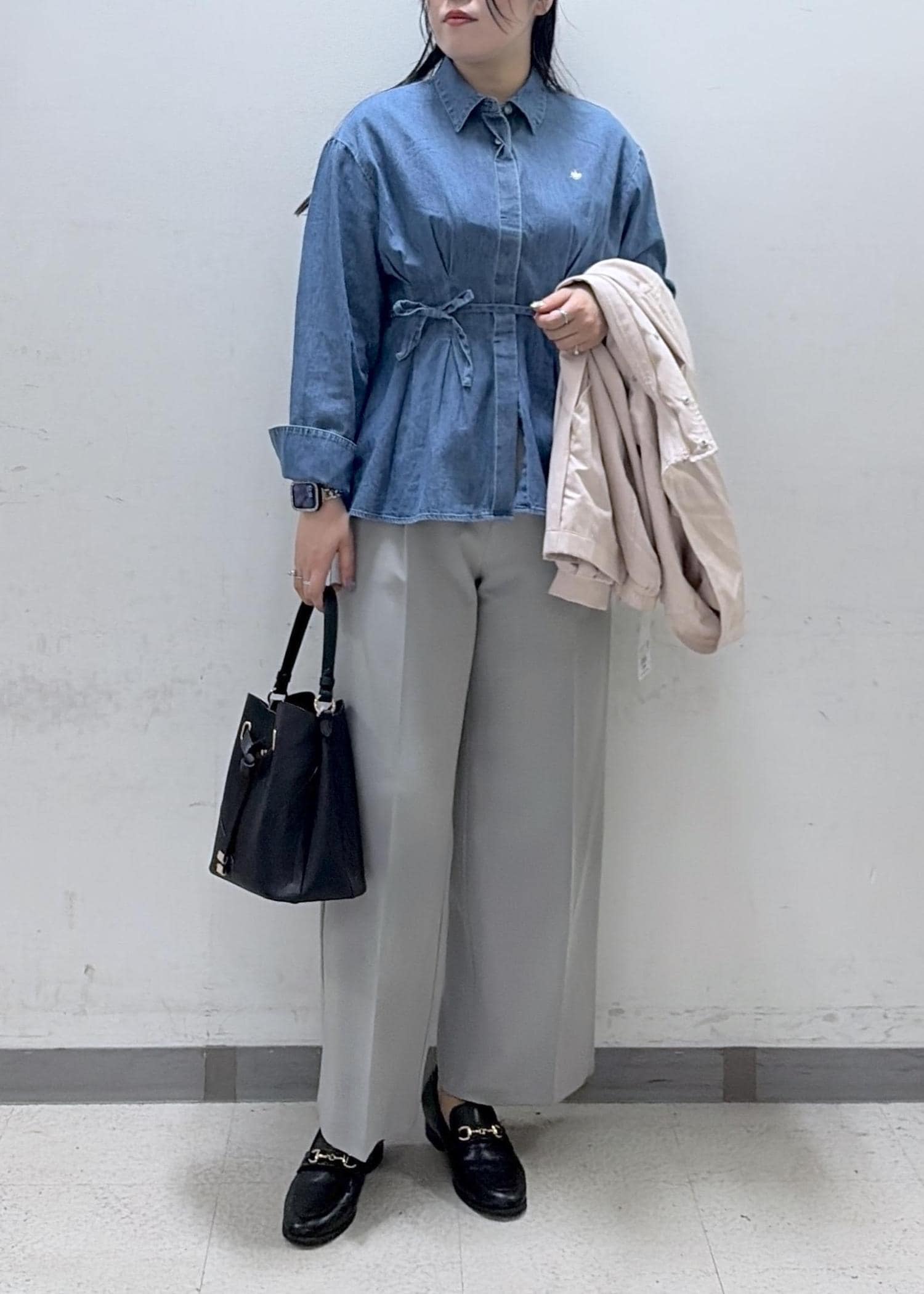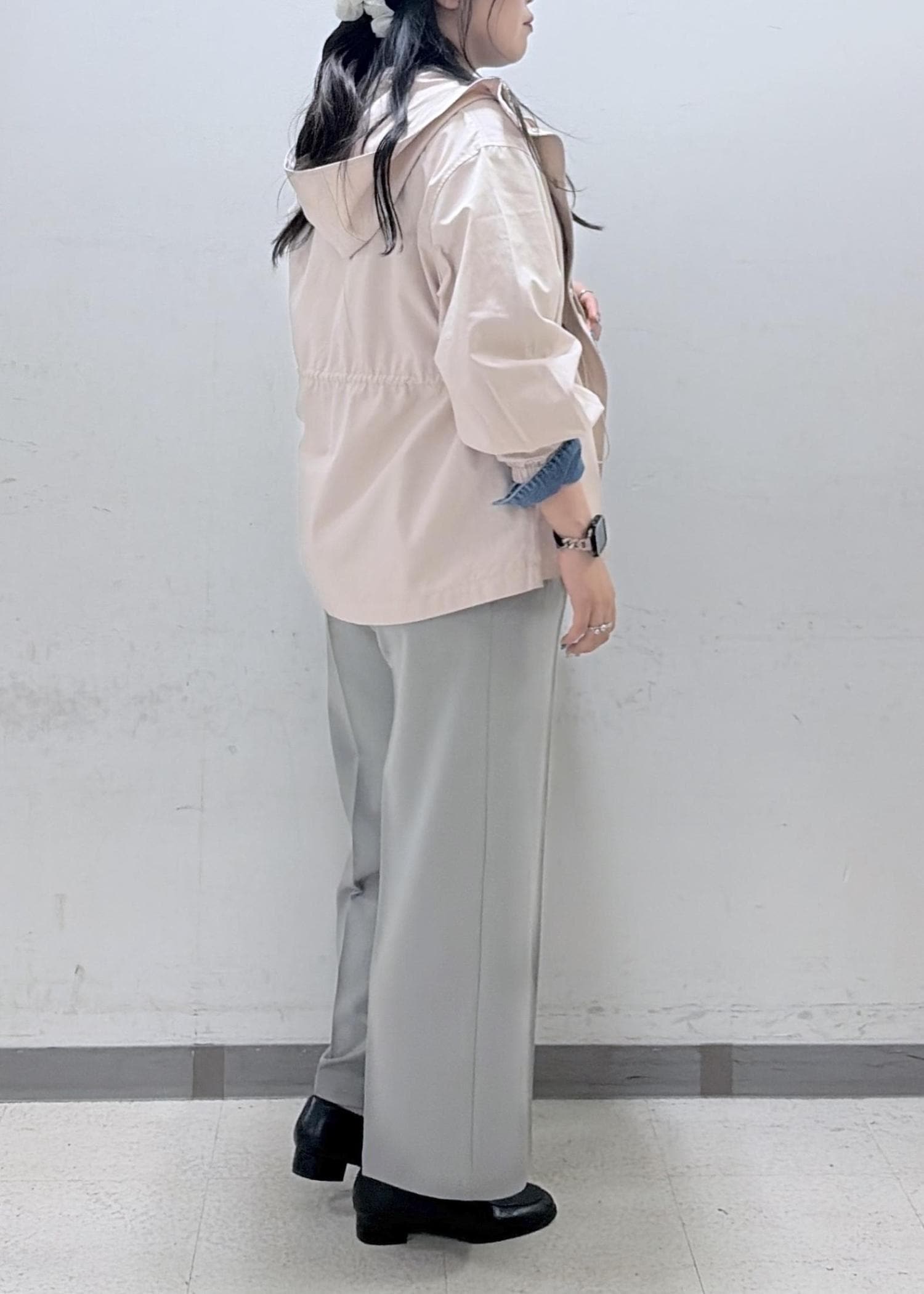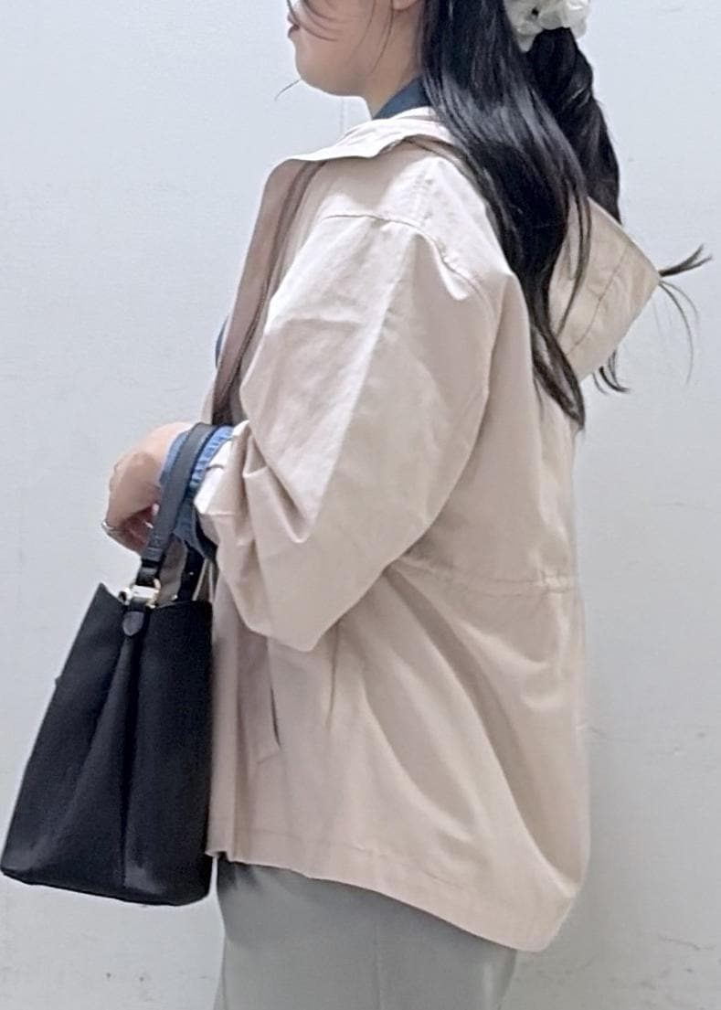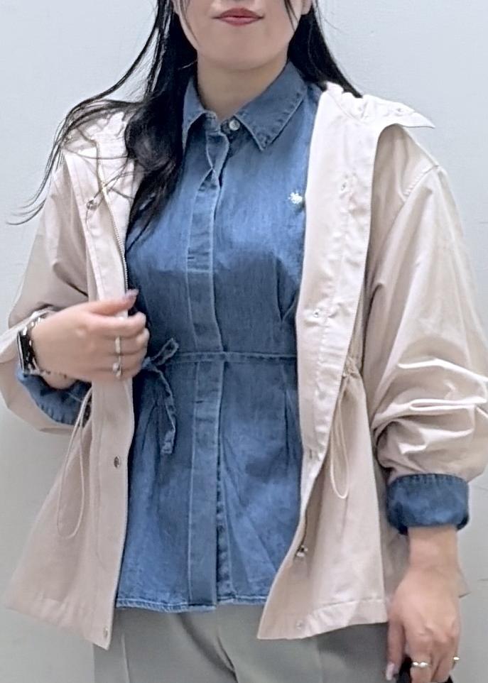 カジュアルだけでなく、綺麗めなスタイルにも合わせやすい少しハリのある素材です!