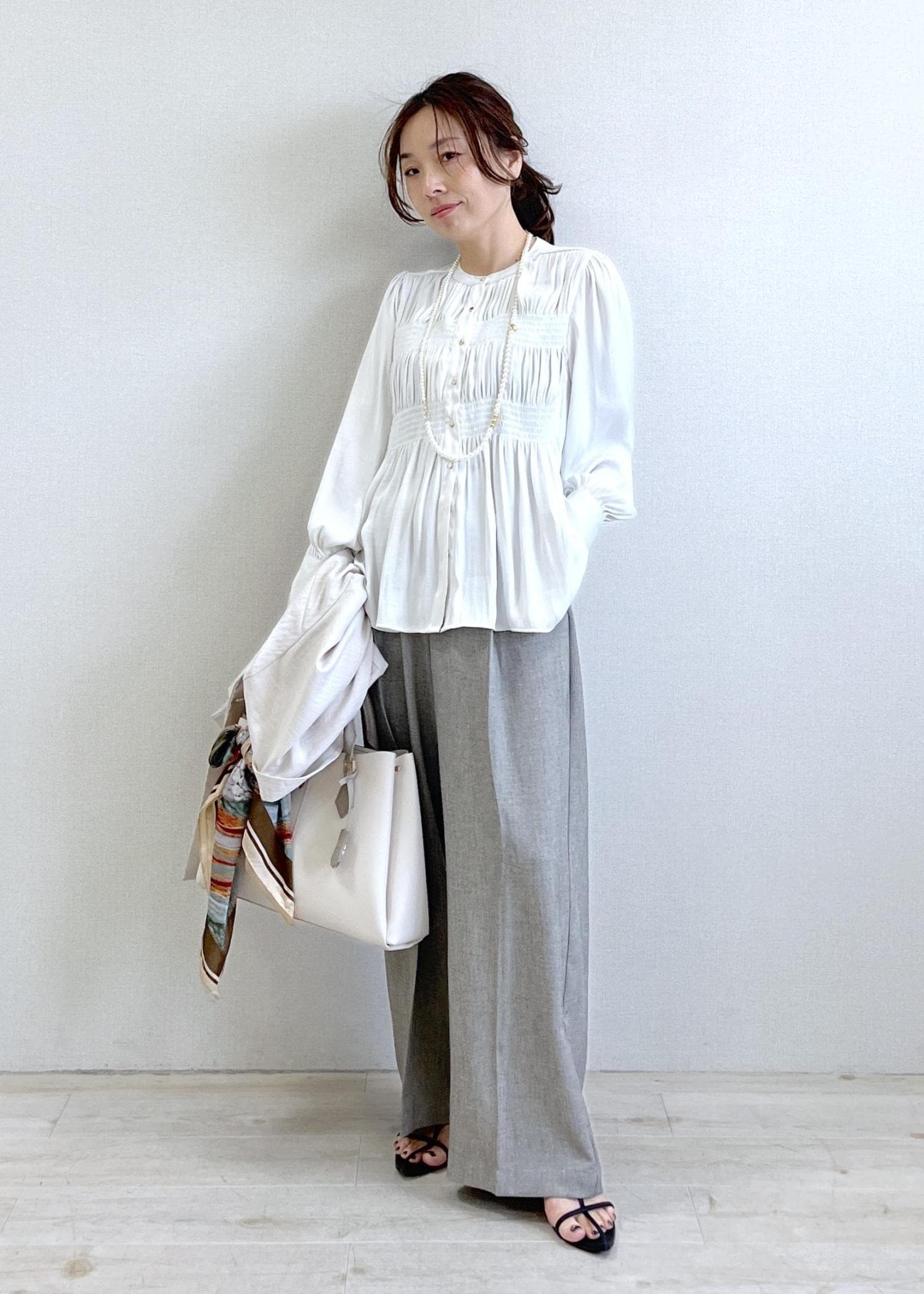 きれいめでもカジュアルでも、系統問わず合わせやすいデザインです。