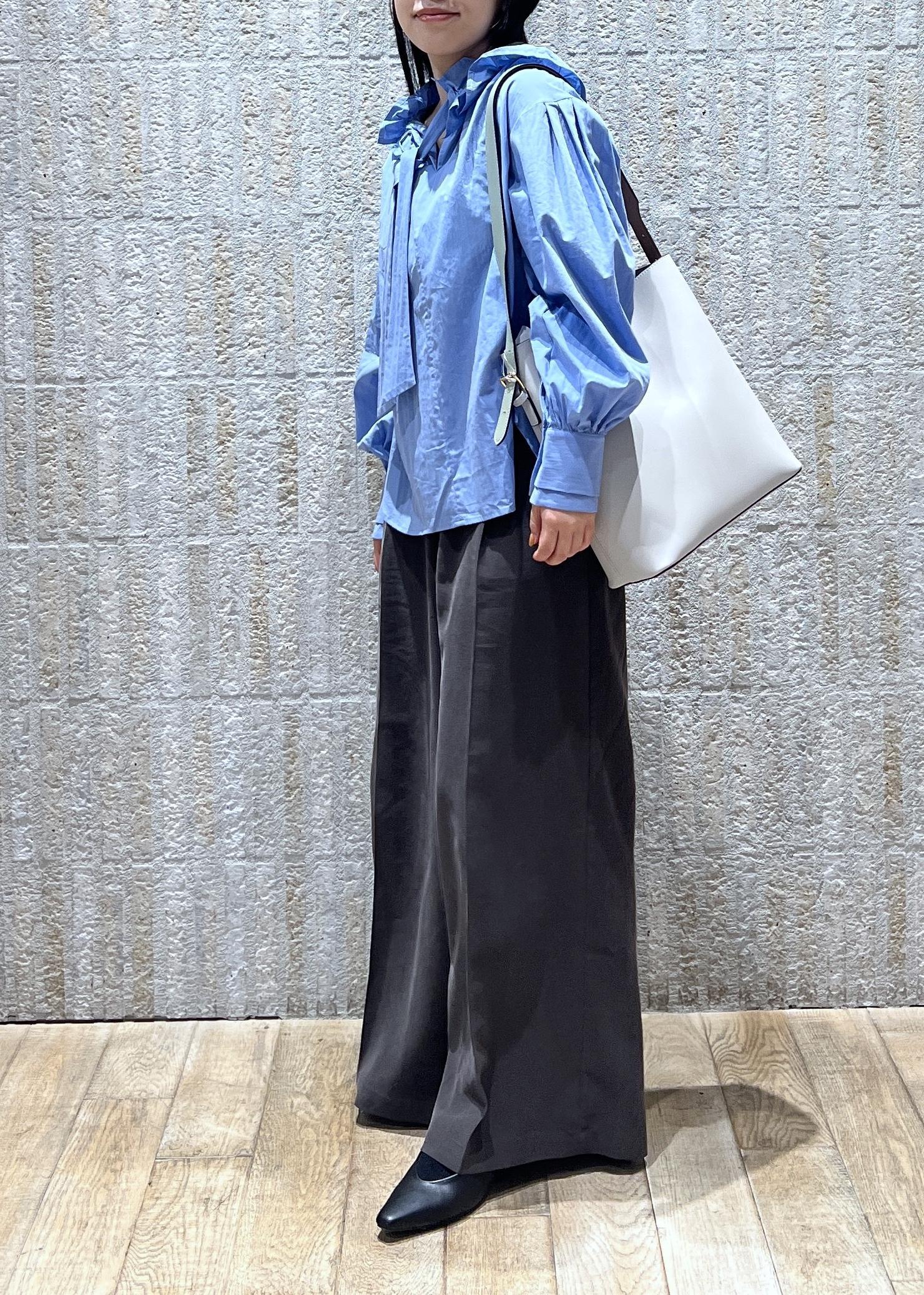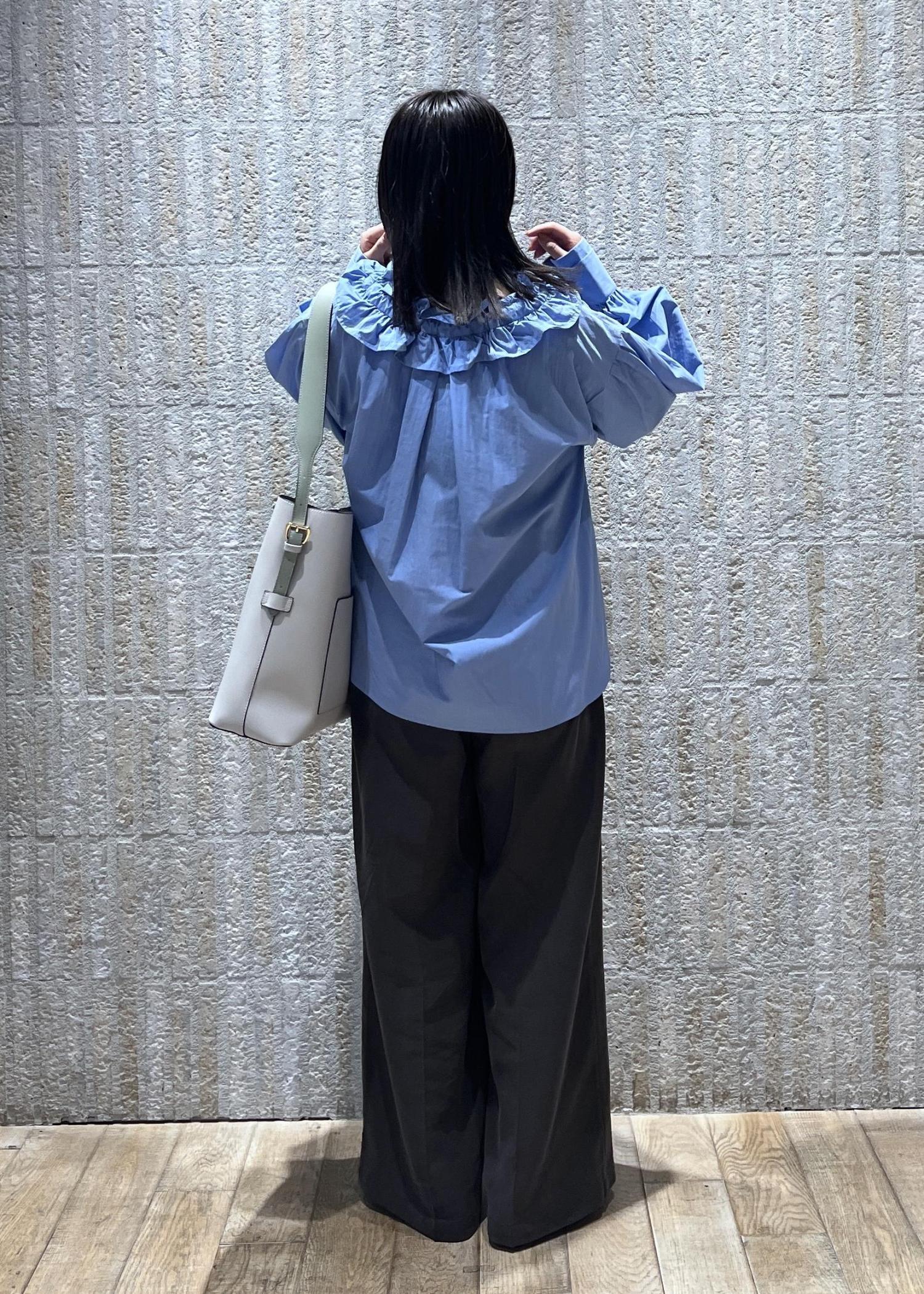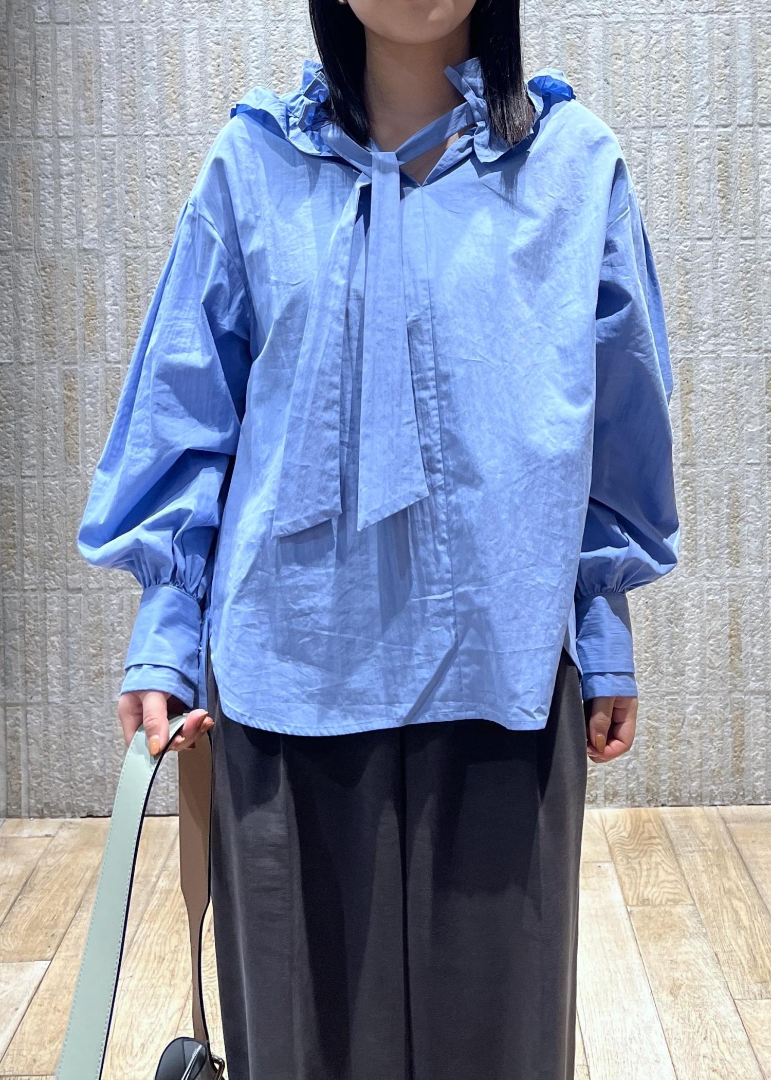 VISフリルネックブラウスサックス / F¥6,589レビュー1枚で着映えするシャツ。