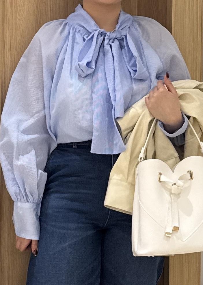 VIS前後2WAYボリュームボウタイブラウス/イージーケアサックス / F¥5,929レビュー袖の部分がシアーで抜け感のあるブラウです。