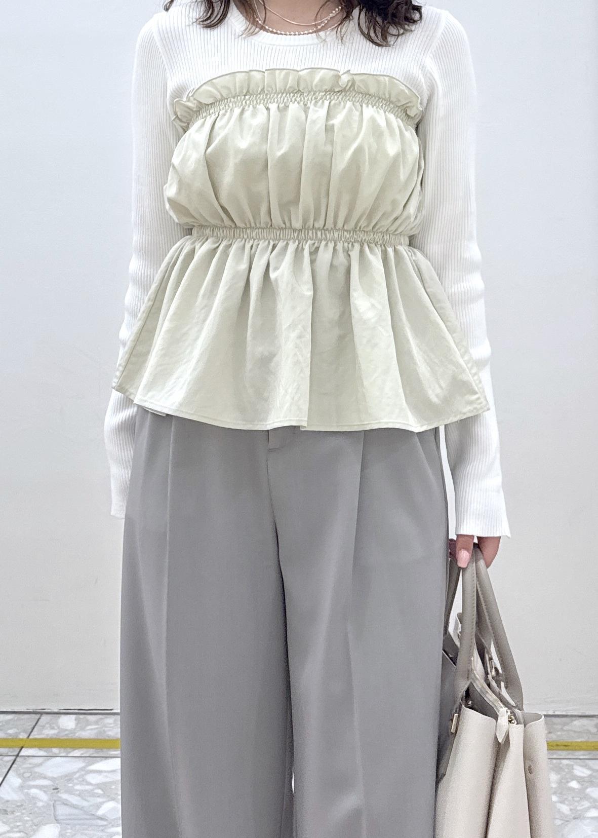 VISシャーリングビスチェドッキングニット/イージーケアキナリ / F¥5,929レビューカジュアルにも着れて1枚でも華やか見え!