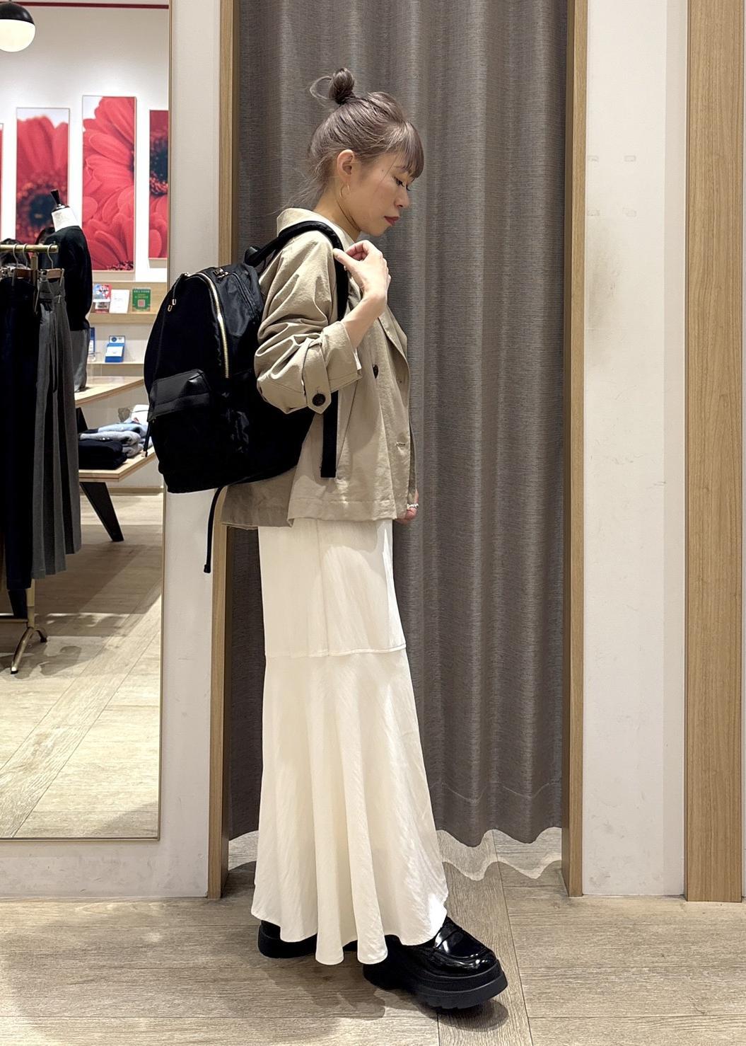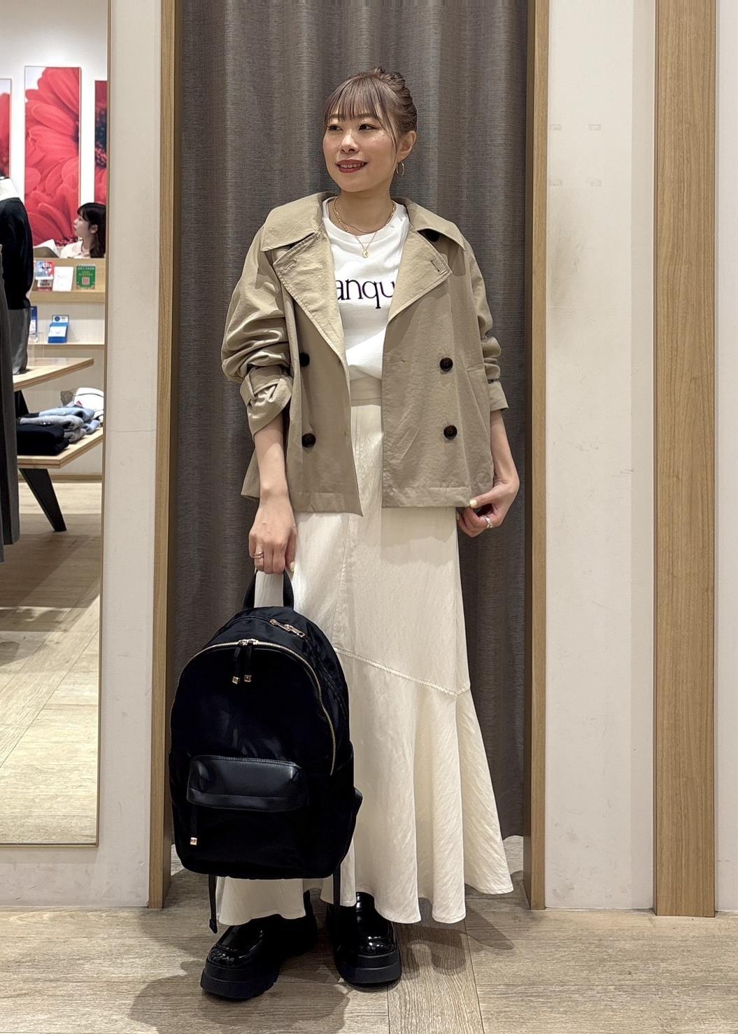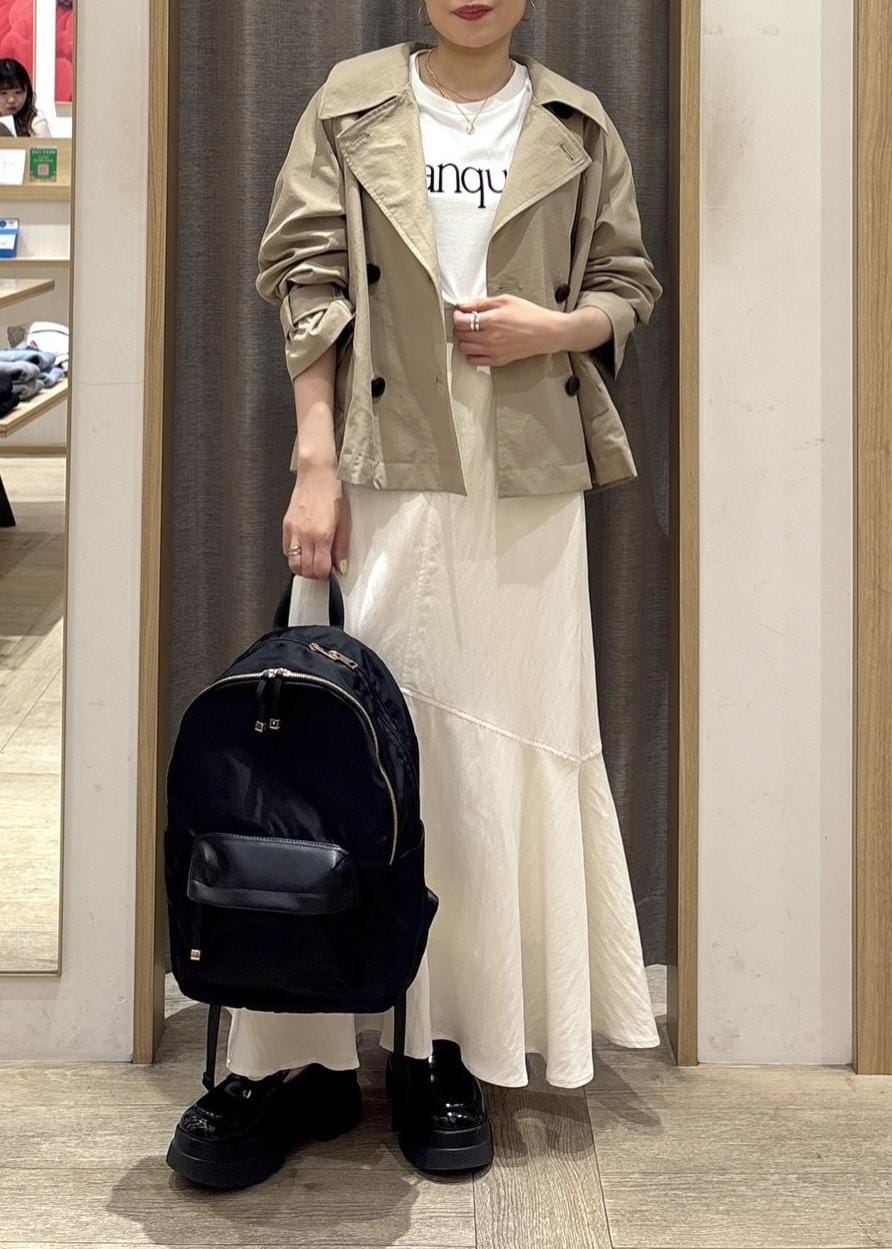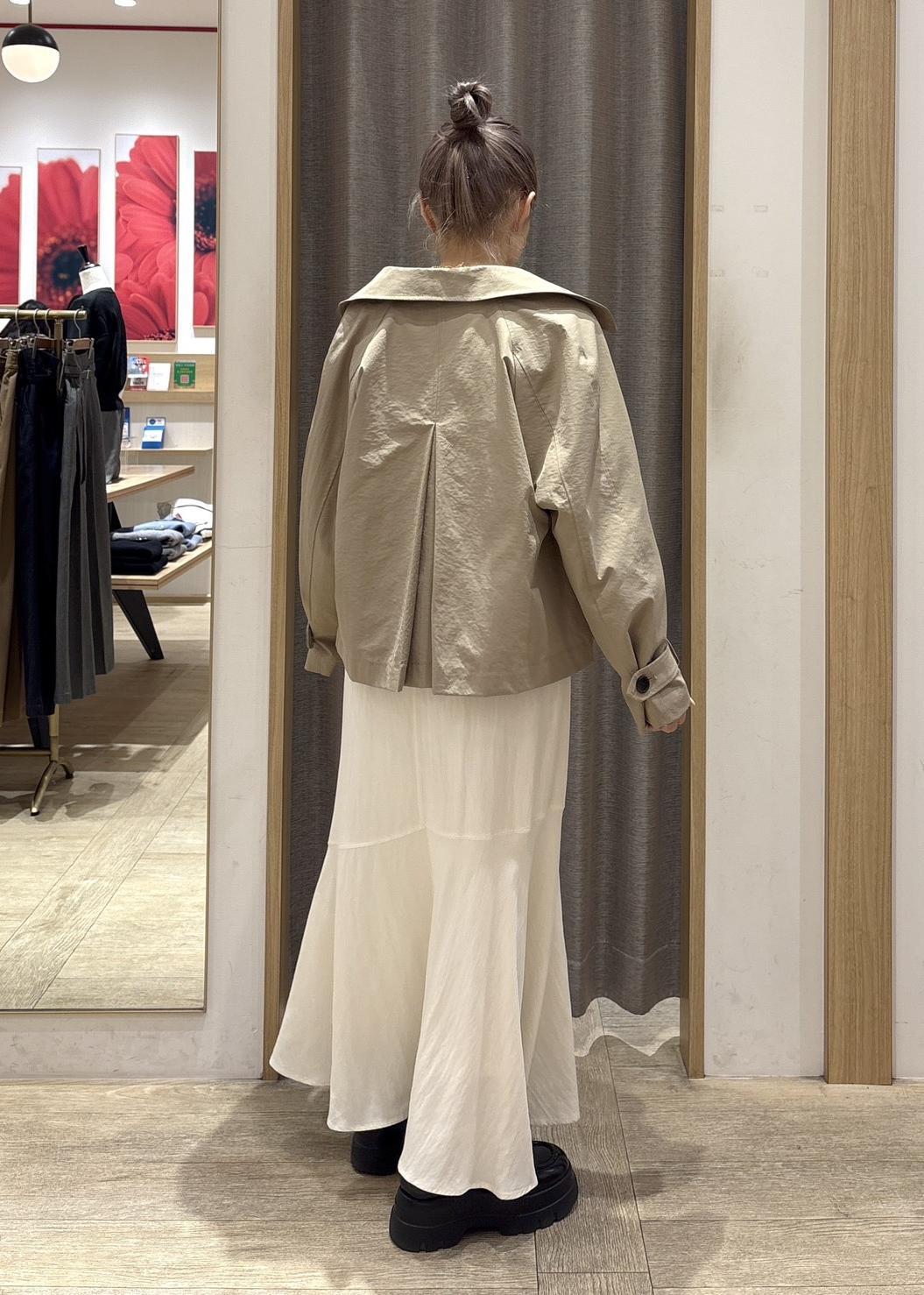 さっと羽織れるショートトレンチは、ロングスカートとの相性抜群◎