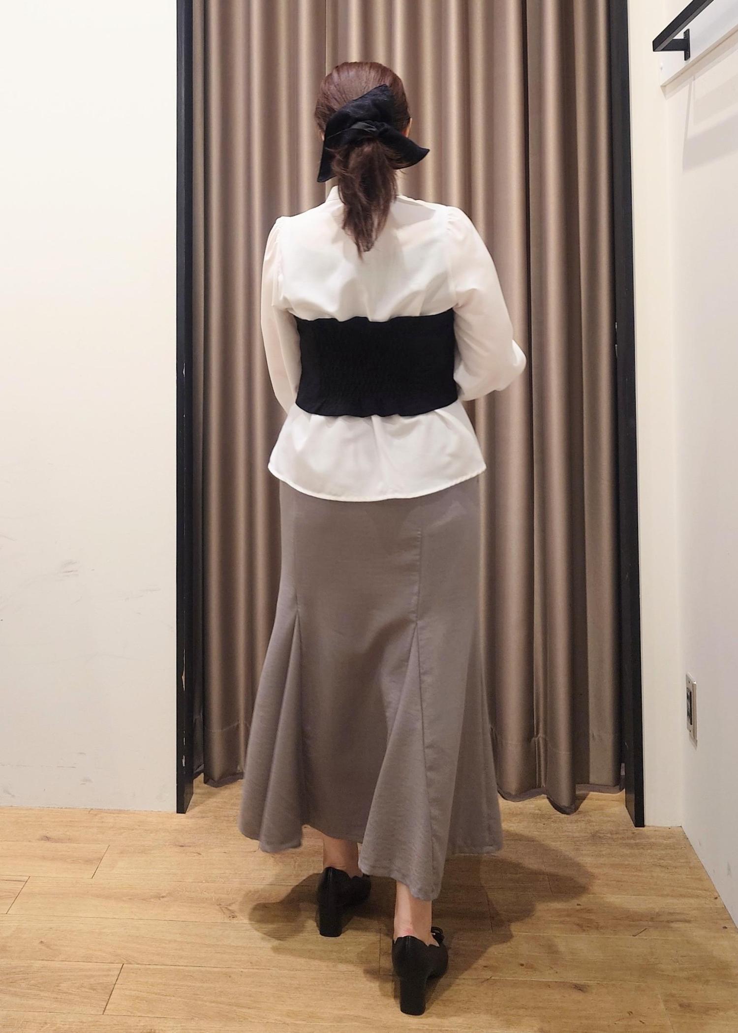 お袖がふんわりしていて柔らかい印象になるので、ベーシックカラー合わせやオールブラックでも重たくならないです。