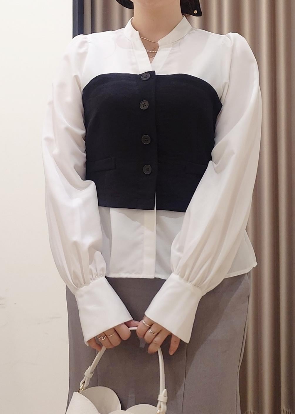VIS美easy前開きビスチェドッキングシャツ/イージーケア・接触冷感・セットアップ対応ブラック / F¥5,929レビュー裾のシャツ部分はinでもoutでも可愛い!