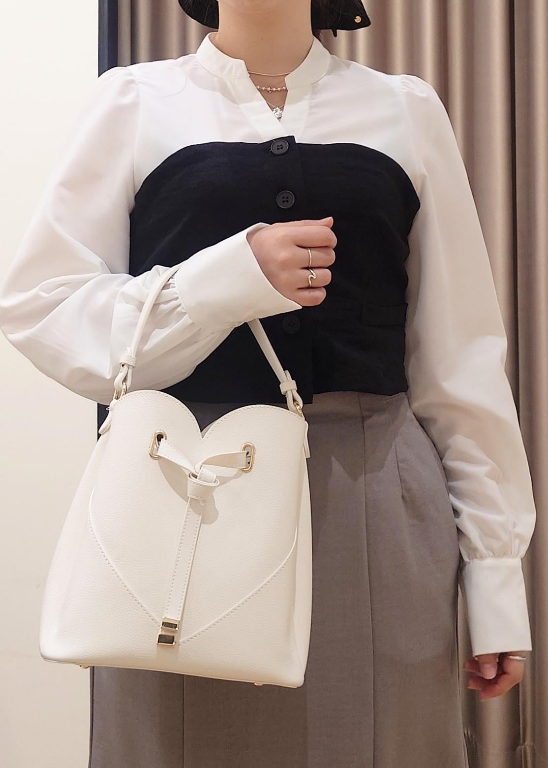 VIS【累計3万点突破】【2WAY】ハートカットバッグ/追加キナリ / F¥6,919レビュー折りたたみ傘やスマホ、二つ折り財布にポーチなど必需品が全て収まるサイズ感。